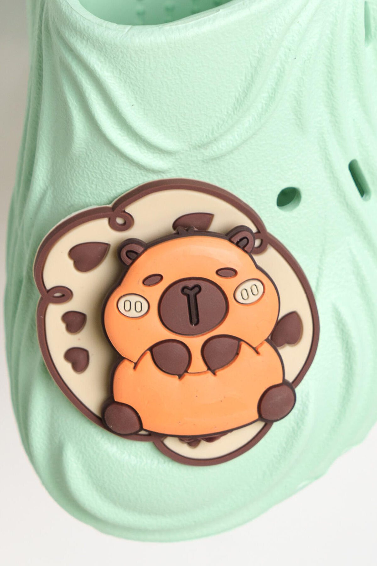 Милые сабо для девочки из облегченного и прочного ЭВА. Материал хорошо моется. Форма модели учитывает эргономику стопы. Модель имеет перекидной ремешок фиксации ноги. Модель декорирована крутящимися патчами со смешным капибара *Размер на подошве может отличаться от этикетки. Сверяйтесь с информацией на этикетке.