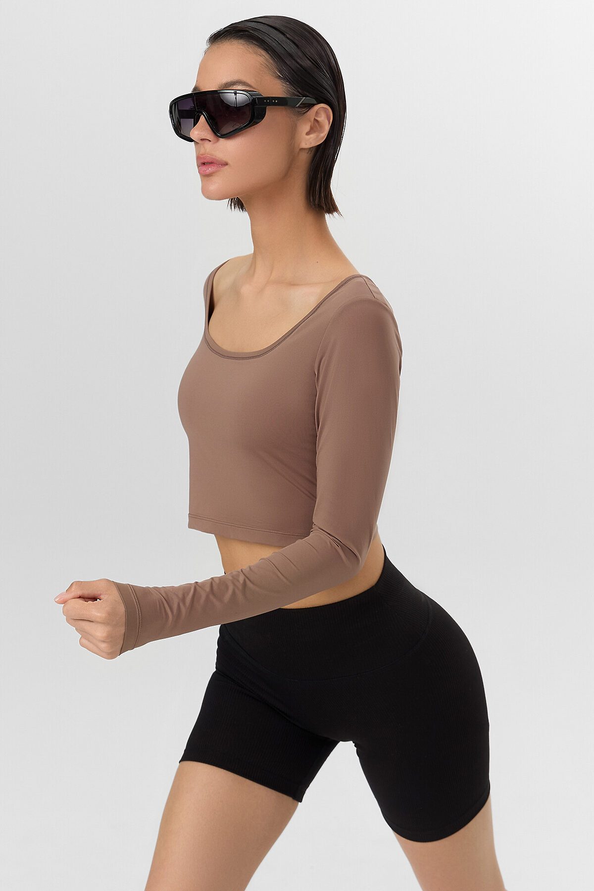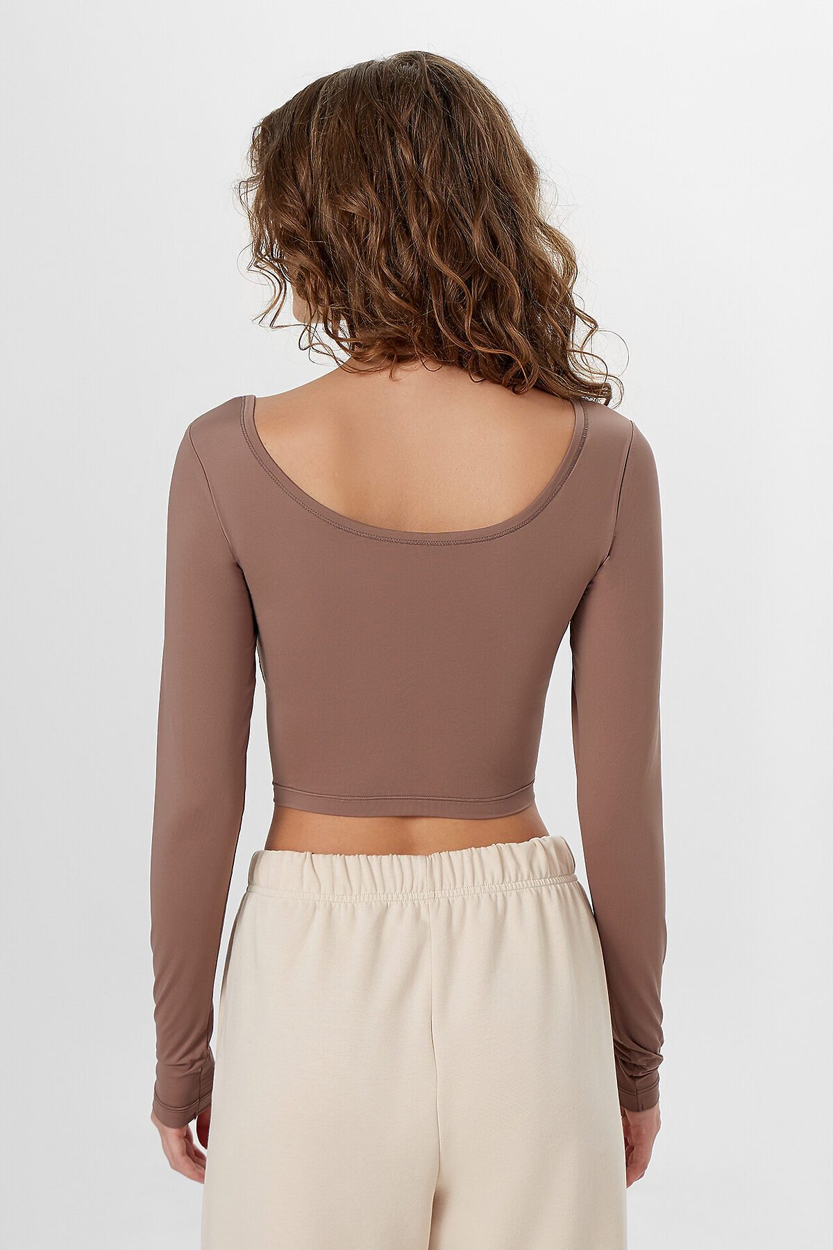 Укороченный крой с аккуратной горловиной, оформленной бейкой из основного полотна, придает этому джемперу для занятий спортом стильный современный вид. Длинные рукава и продуманная подкладка обеспечивают комфорт при интенсивных тренировках, а эластичная тесьма по нижнему срезу гарантирует надежную фиксацию.
