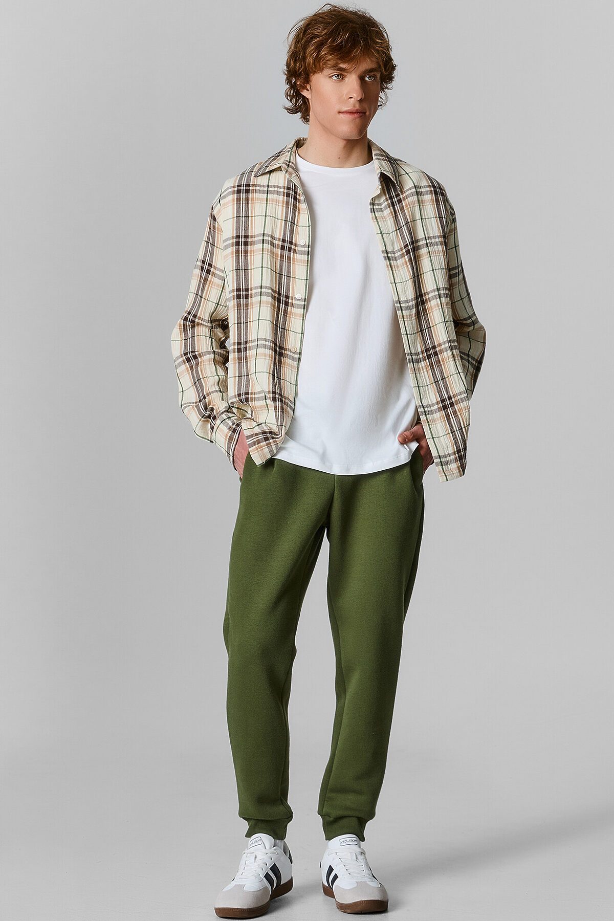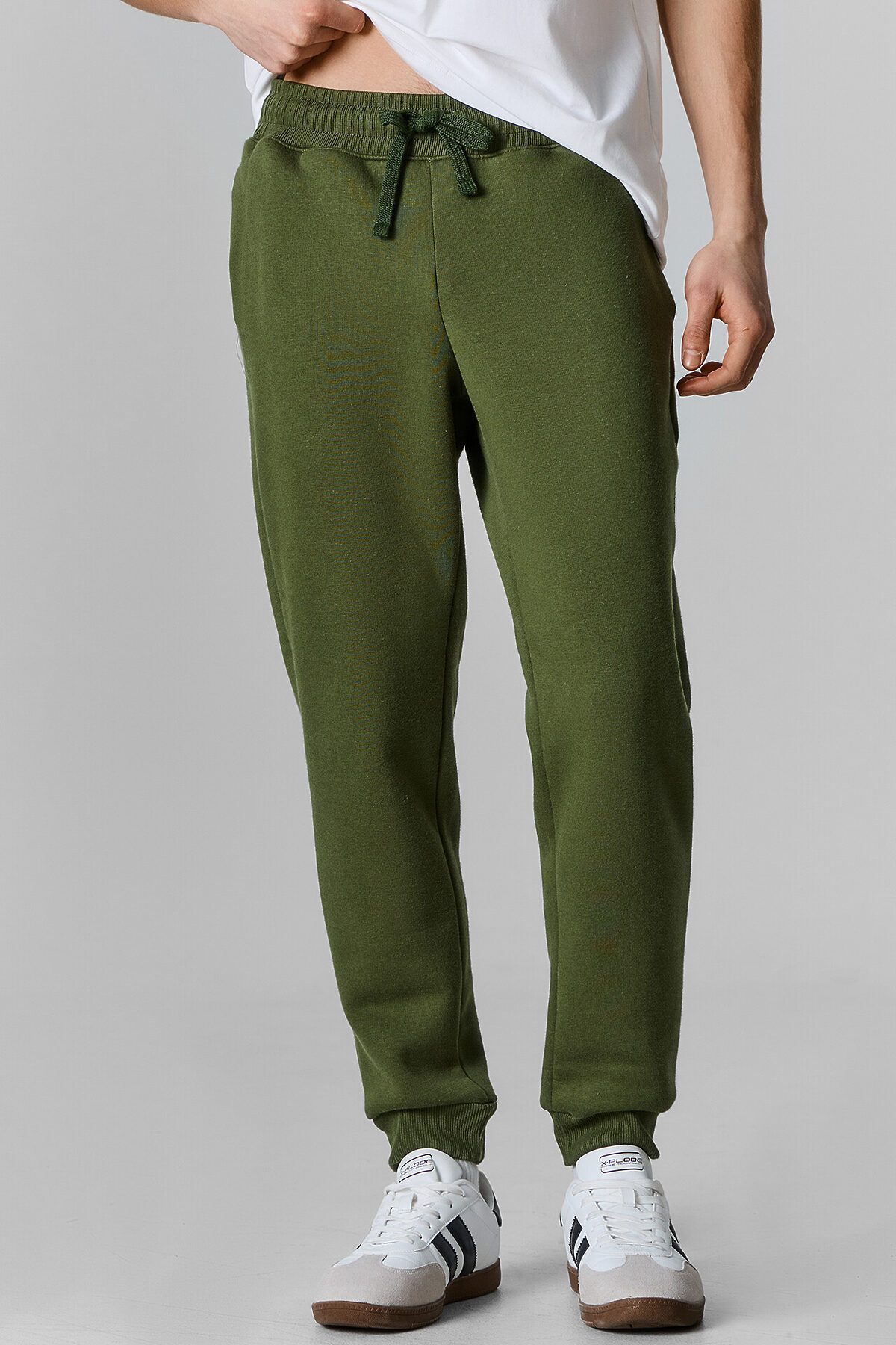Стильные брюки из трикотажного футера с теплым подчесом. Силуэт зауженный, штанины с манжетами. Есть удобные боковые карманы. В поясе – эластичная тесьма и шнурок-затяжка. Просто, комфортно, актуально!