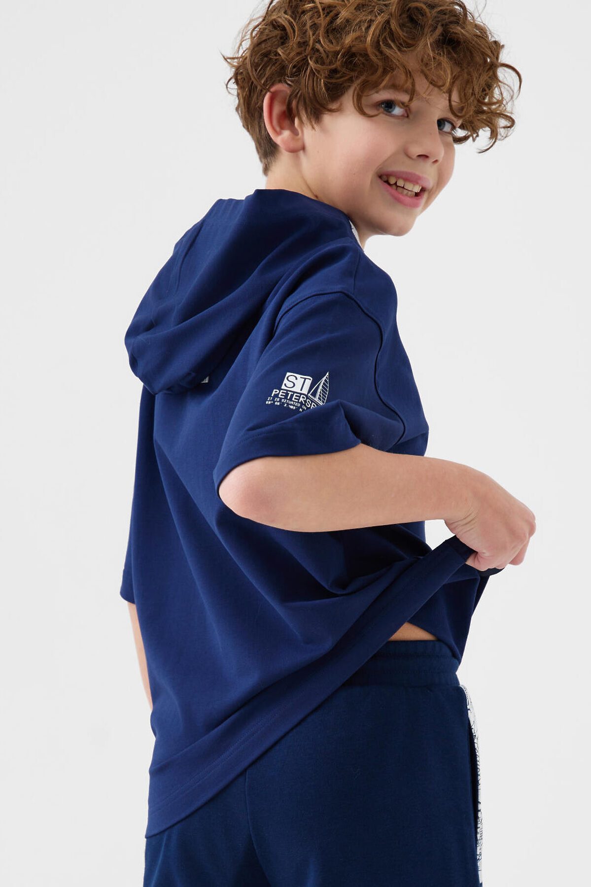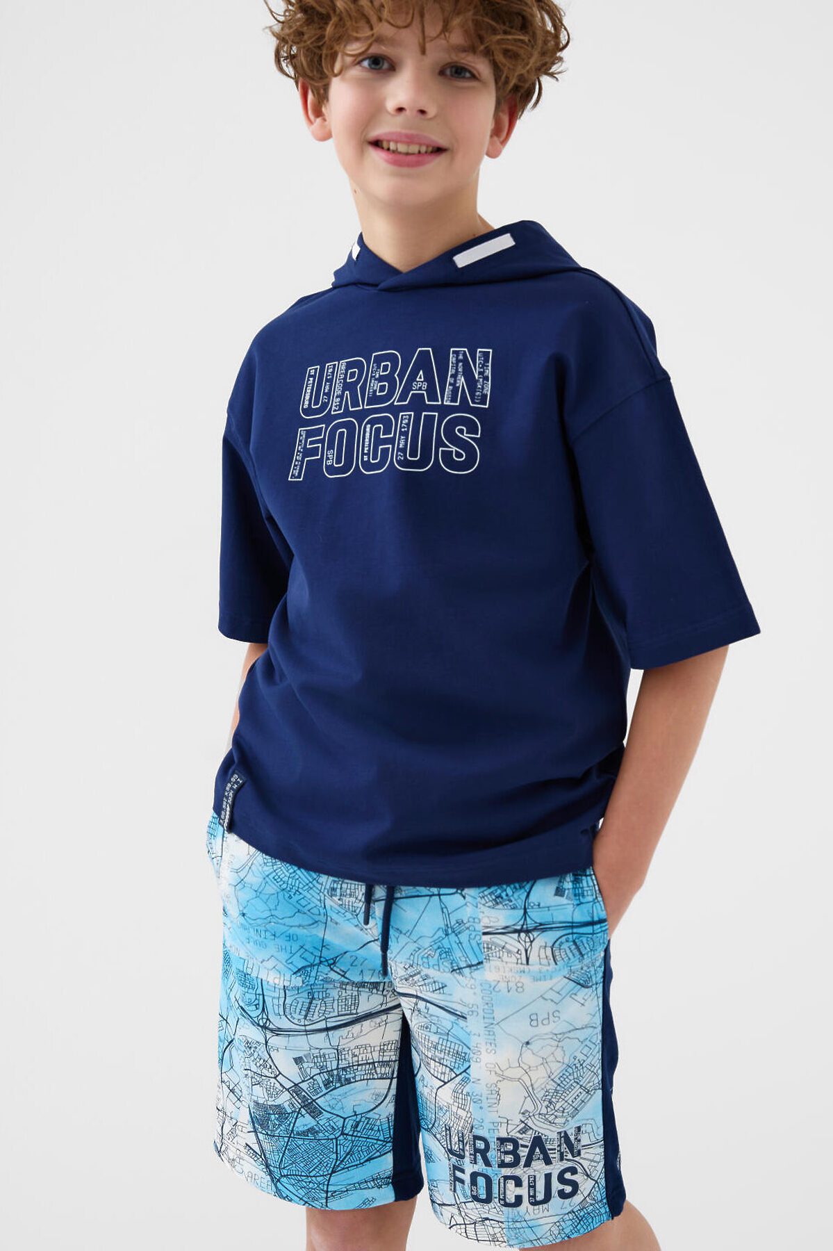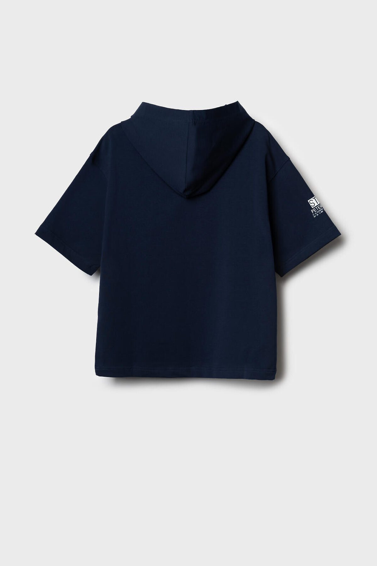 Футболка оверсайз с капюшоном для мальчика подростка. Модель выполнена из эластичного хлопкового трикотажа футер. Спереди расположен крупный принт. По спинке и низу - декоративные нашивки.