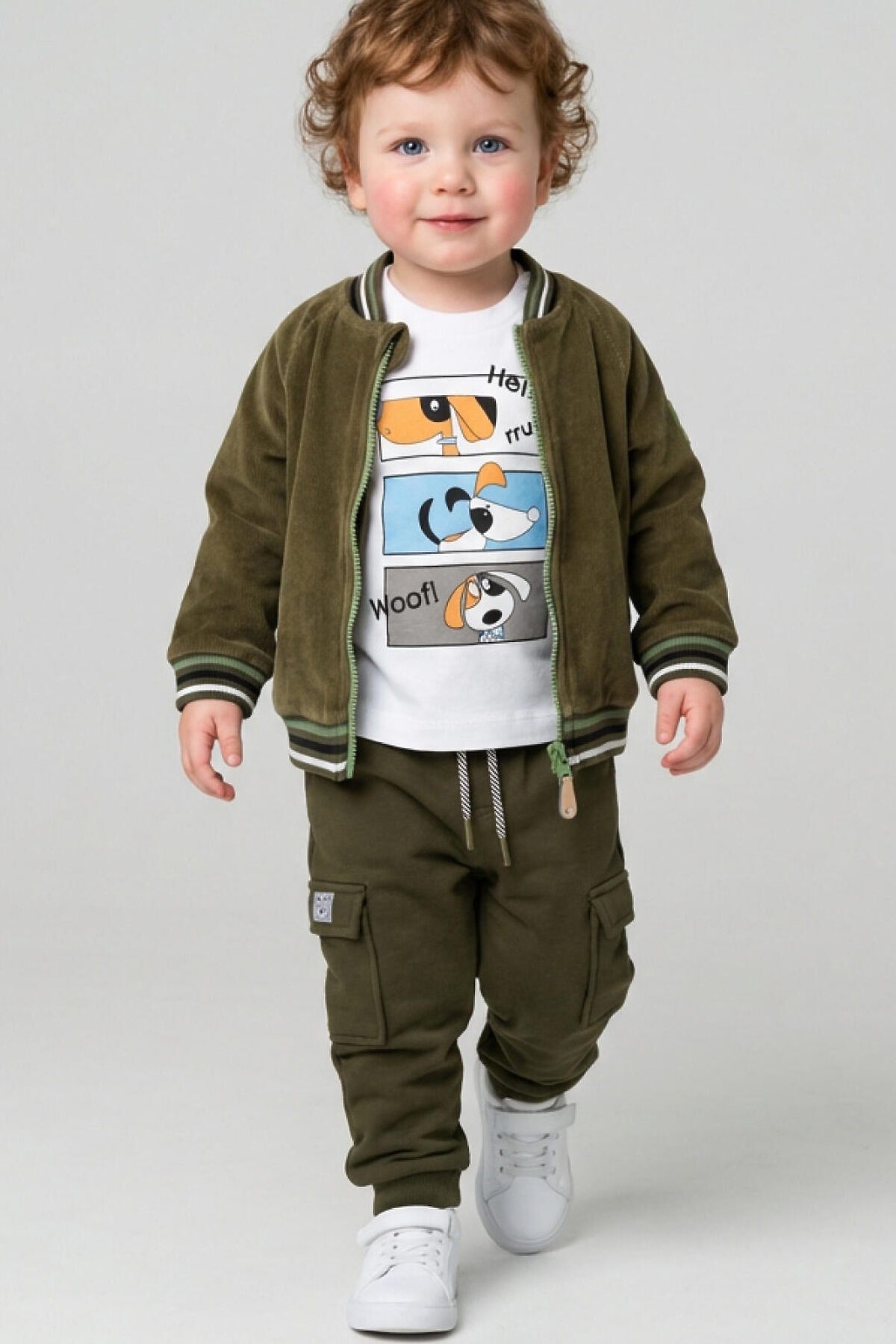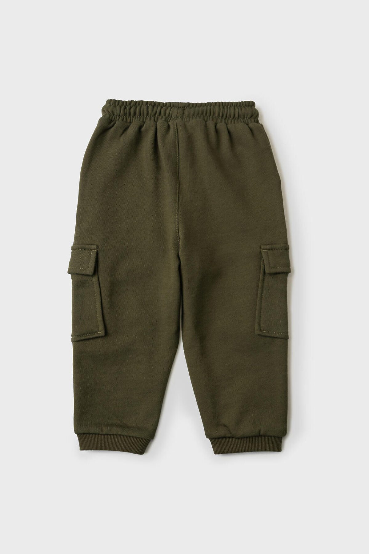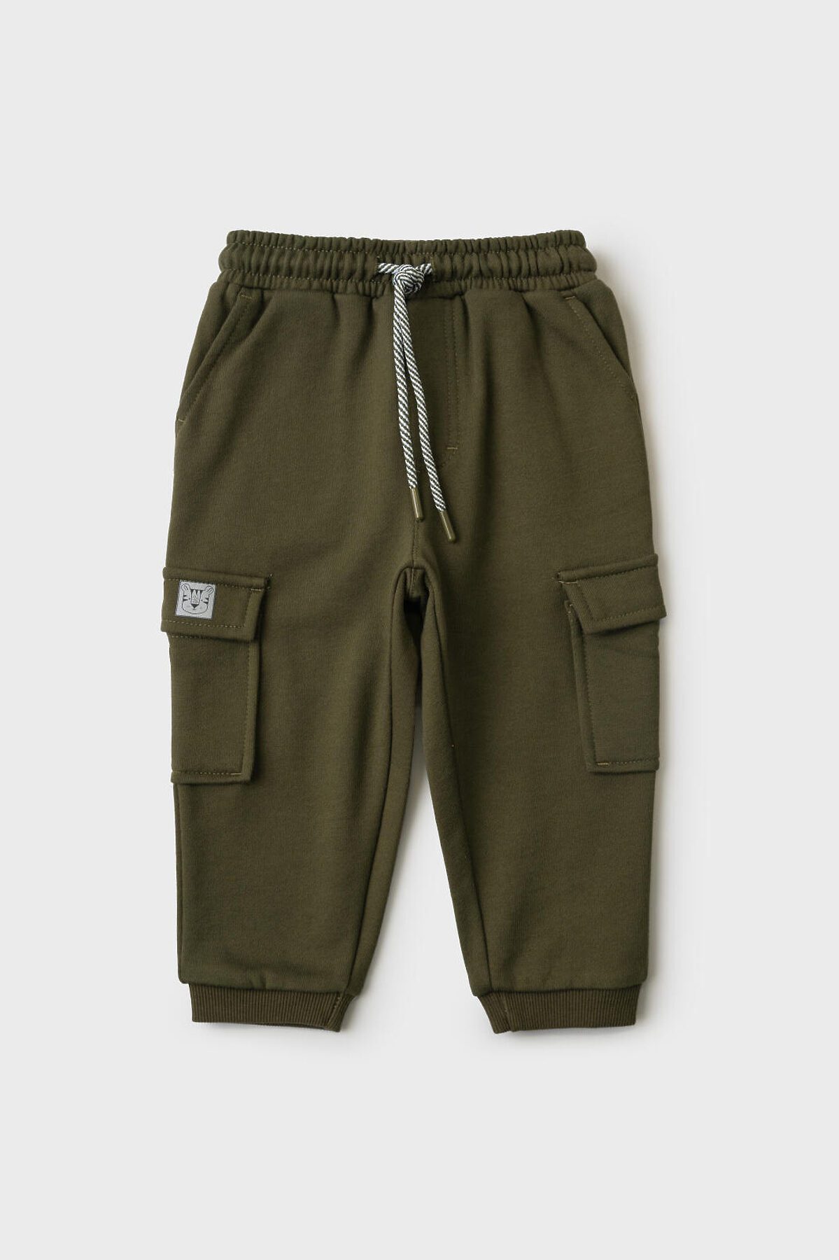 Брюки-джоггеры детские для мальчика. Выполнены из хлопкового трикотажа футер без начеса. Модель прямого кроя со средней посадкой на талии. Пояс выполнен на резинке, дополнительно регулируется шнурком. По бокам — удобные карманы и накладные карманы-карго. В нижней части брючин предусмотрены эластичные трикотажные манжеты для лучшей фиксации.