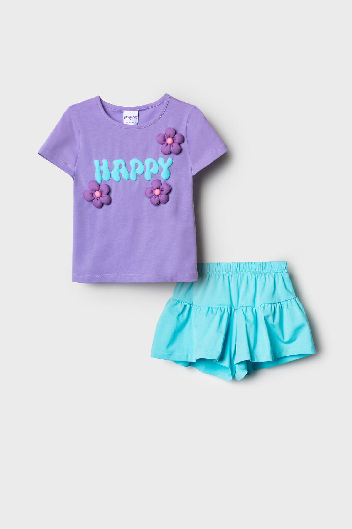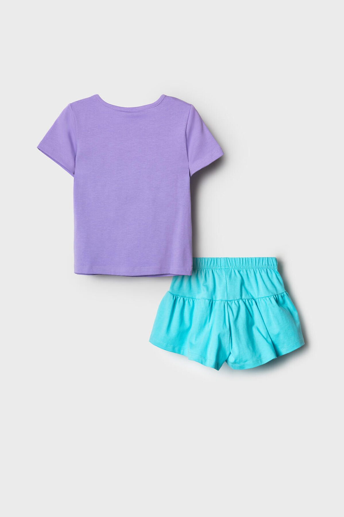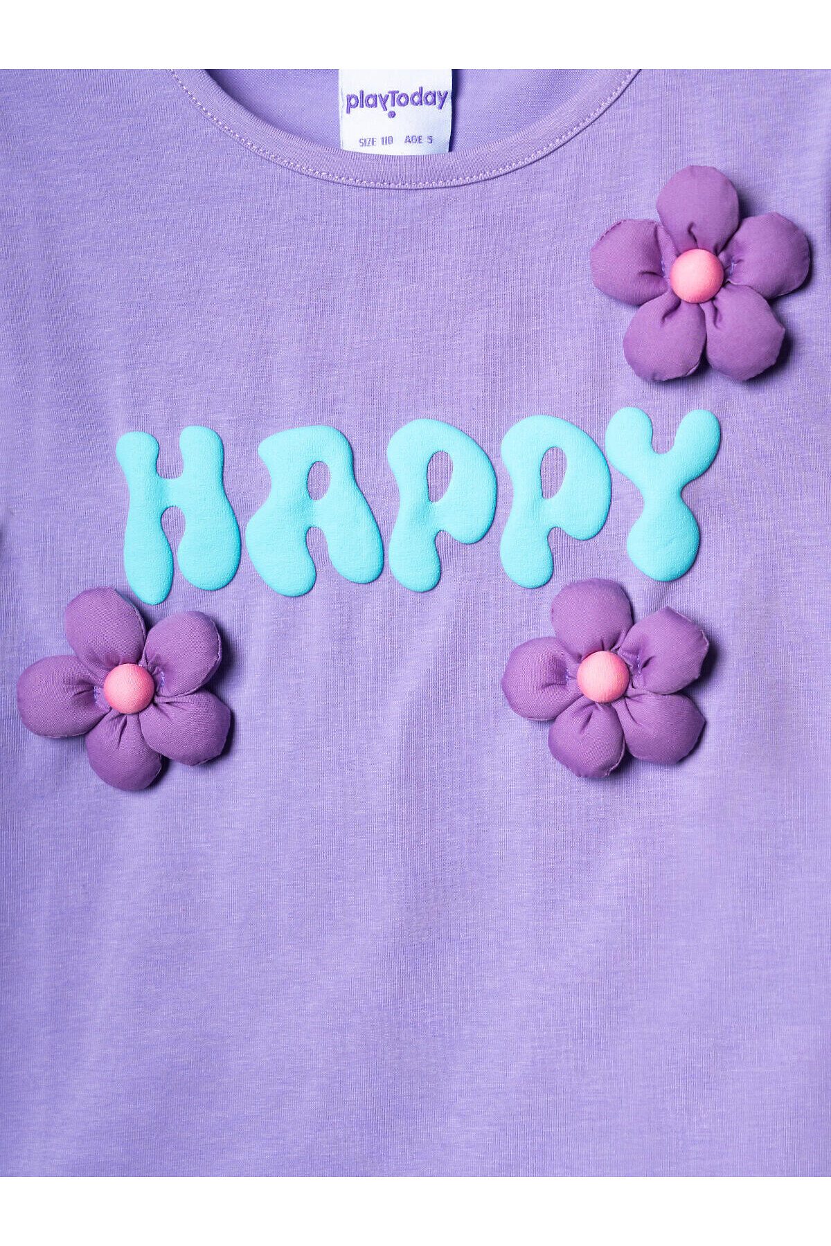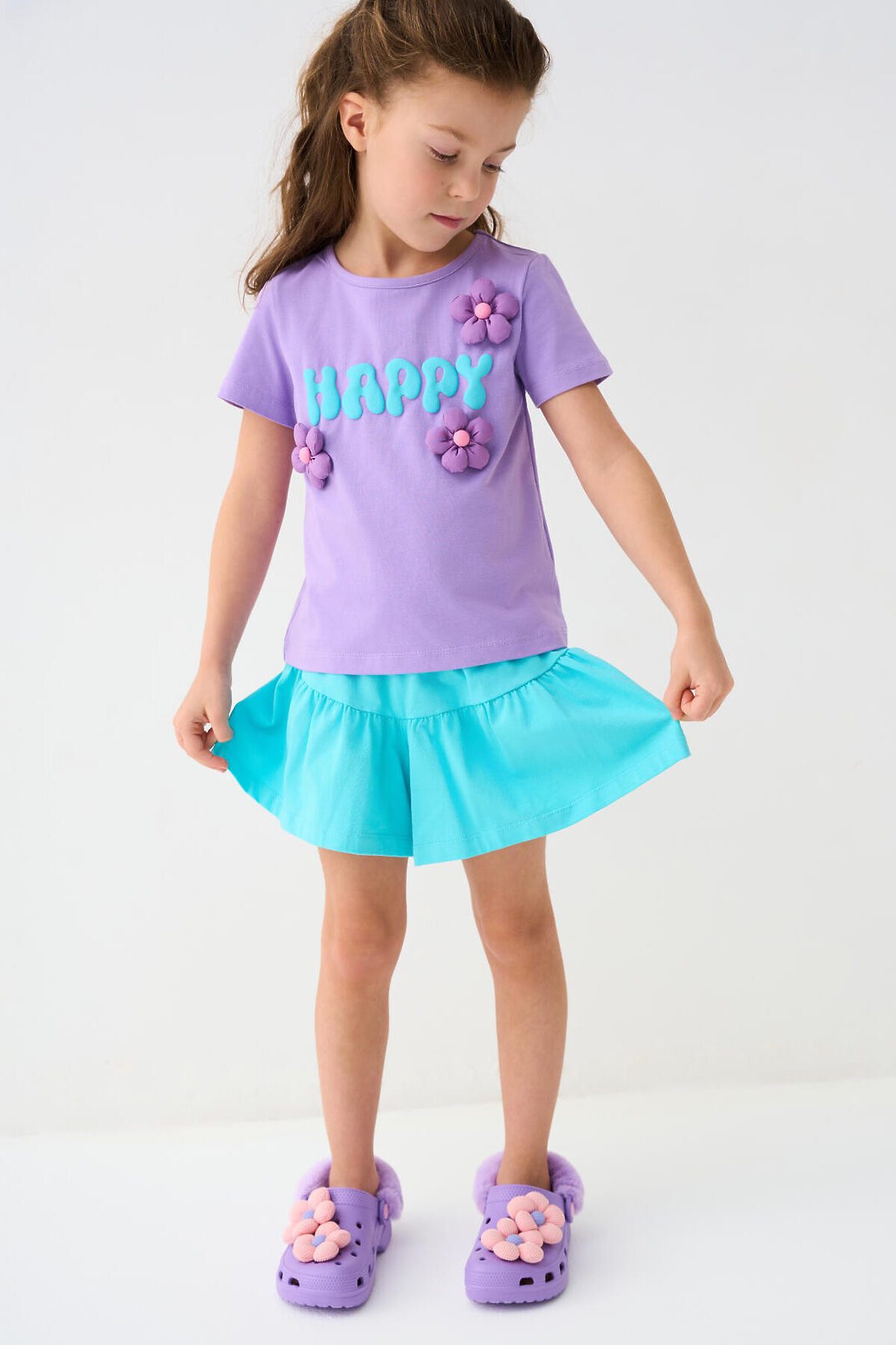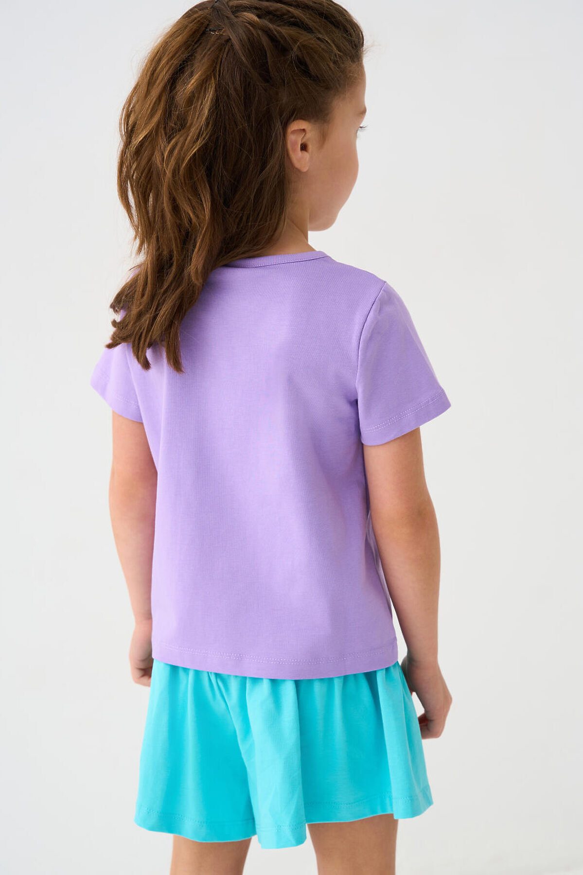 Комплект трикотажный для девочек: фуфайка (футболка), шорты PLAYTODAY, сиреневый,бирюзовый