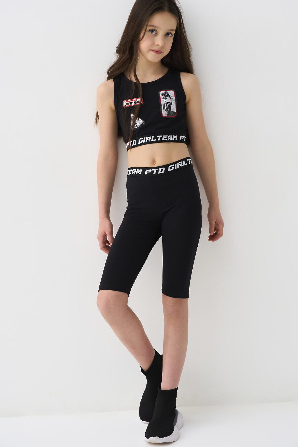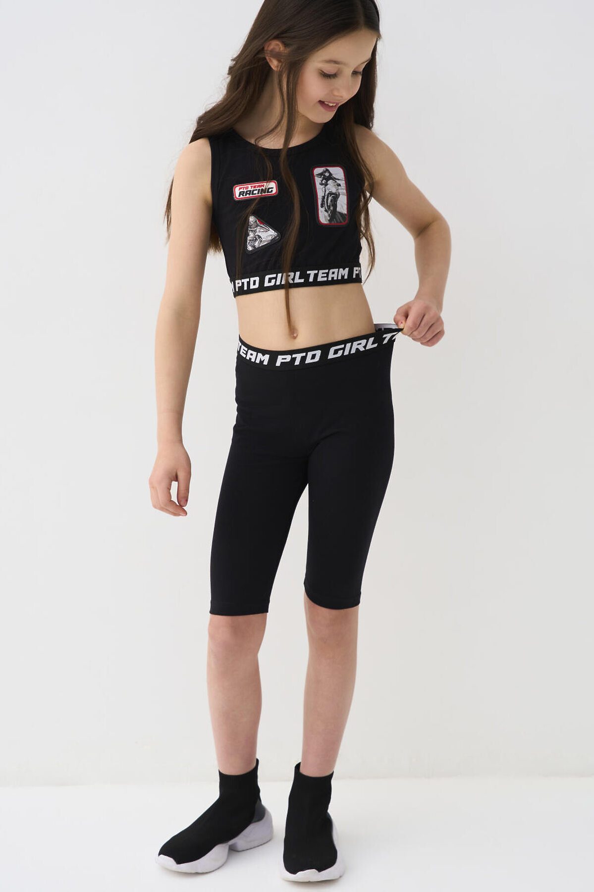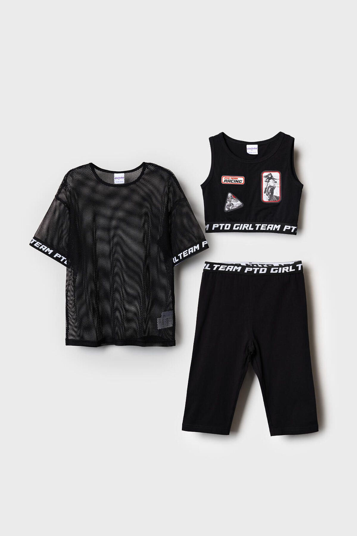 Комплект трикотажный для девочек: брюки (легинсы укороченные), топ, фуфайка (футболка) PLAYTODAY, черный