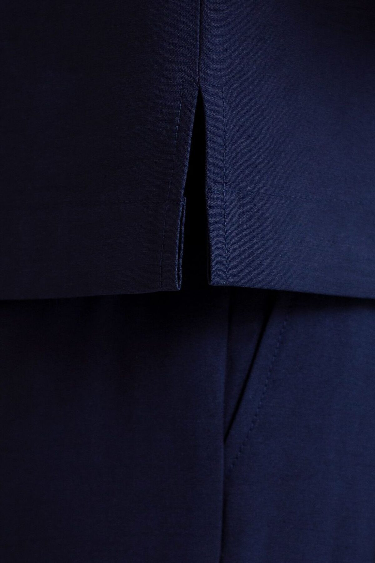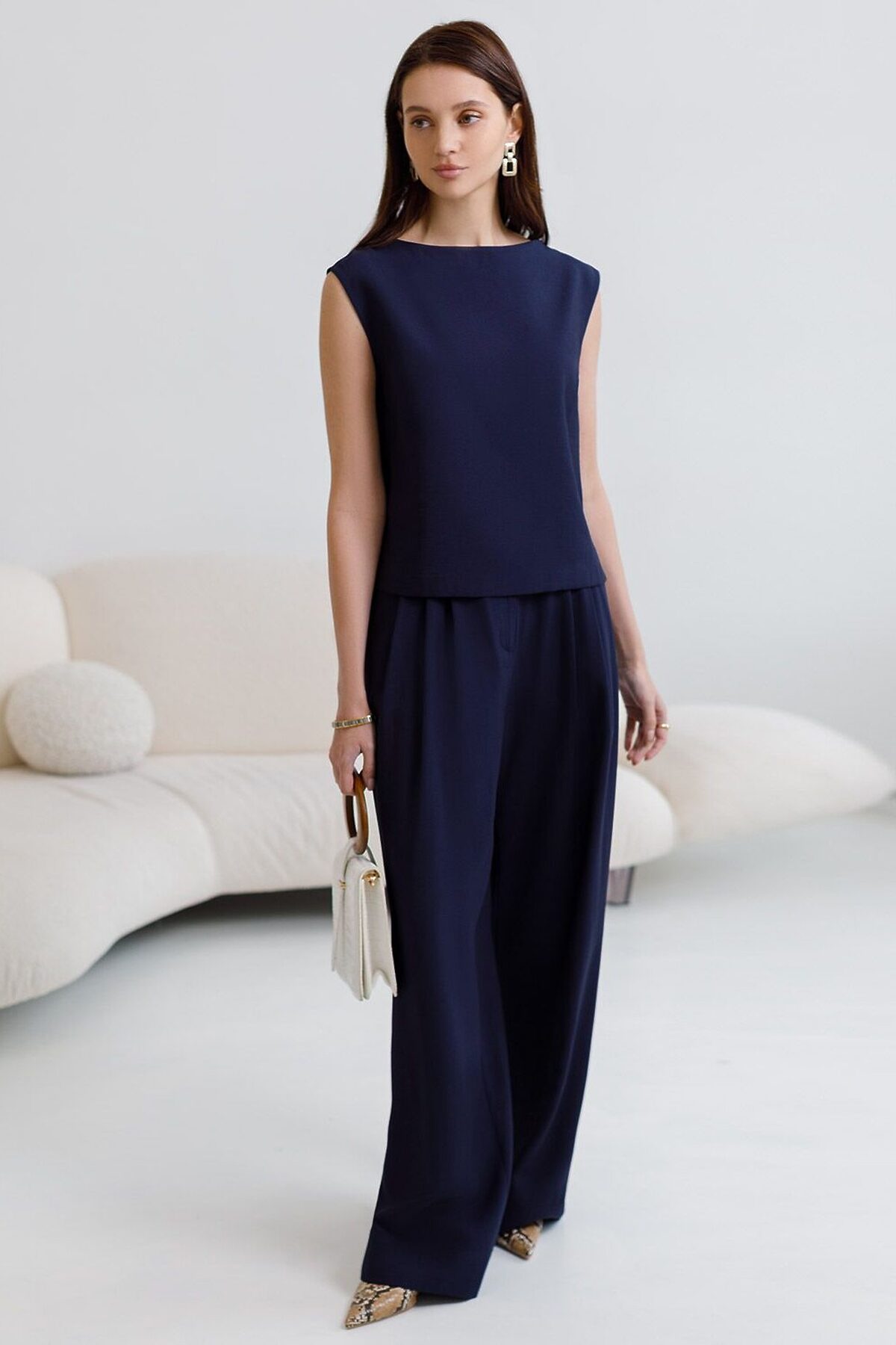 Изысканный топ темно-синего цвета с элегантным вырезом-лодочкой. Лиоцелл это более дорогой и экологичный вариант вискозы, очень прочный и шелковистый. Ткань отличается от регулярной коллекции из лиоцелла - она содержит еще больше лиоцелла (92%), благодаря чему имеет более нежную шелковистую фактуру. Вырез лодочка придает топу утонченность, а небольшие разрезы по бокам добавляют легкости. Простой прямой крой в сочетании с интересными деталями создает стильную и в то же время комфортную вещь. Топ средней длины подойдет для любительниц базовой одежды, которые хотят деликатно повысить градус своего стиля. Этот лаконичный топ будет идеальным выбором для теплого времени года или многослойных ансамблей. Рекомендуем сочетать с артикулами: D26.208, D24.313