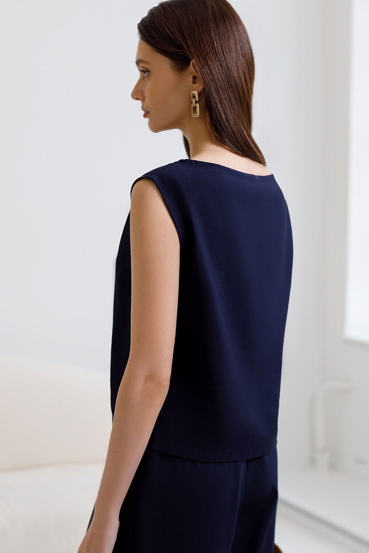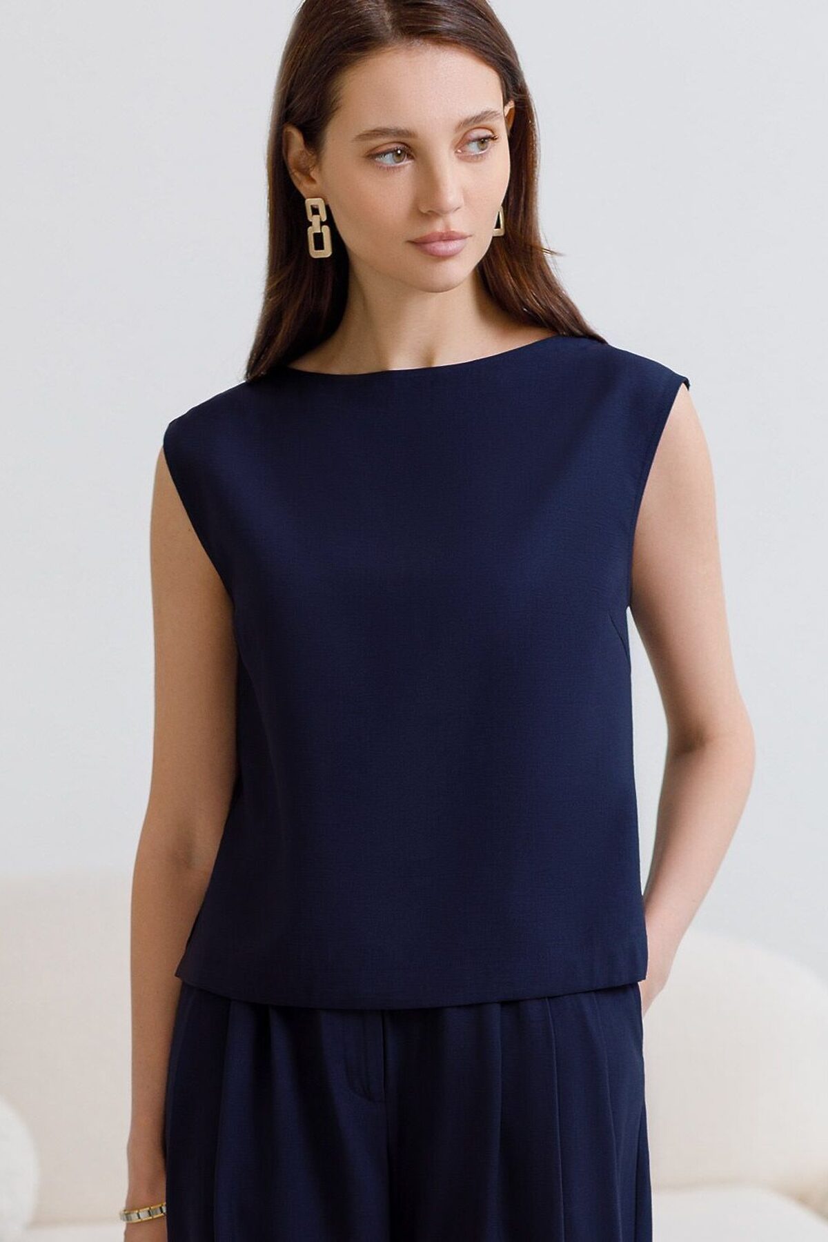 Топ c вырезом лодочка из плотного лиоцелла VILATTE, темно-синий