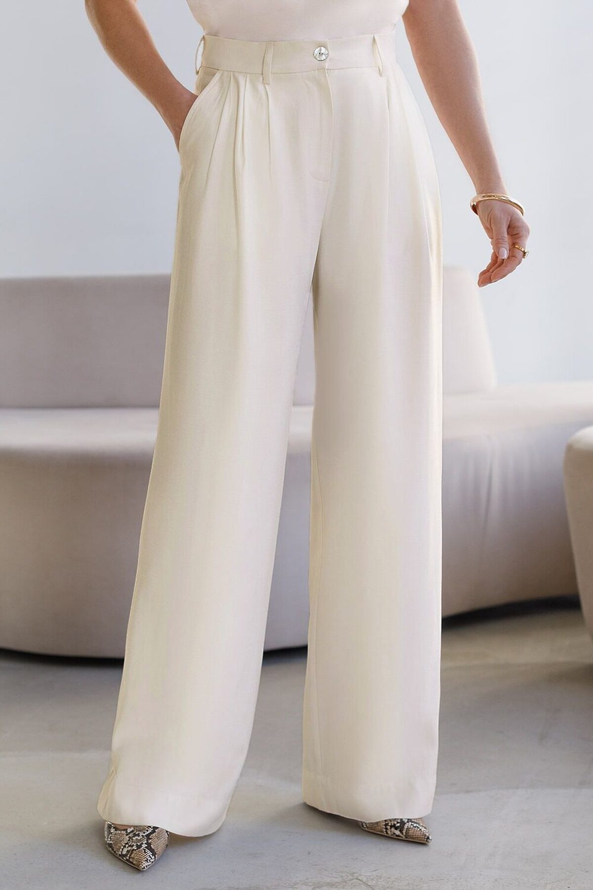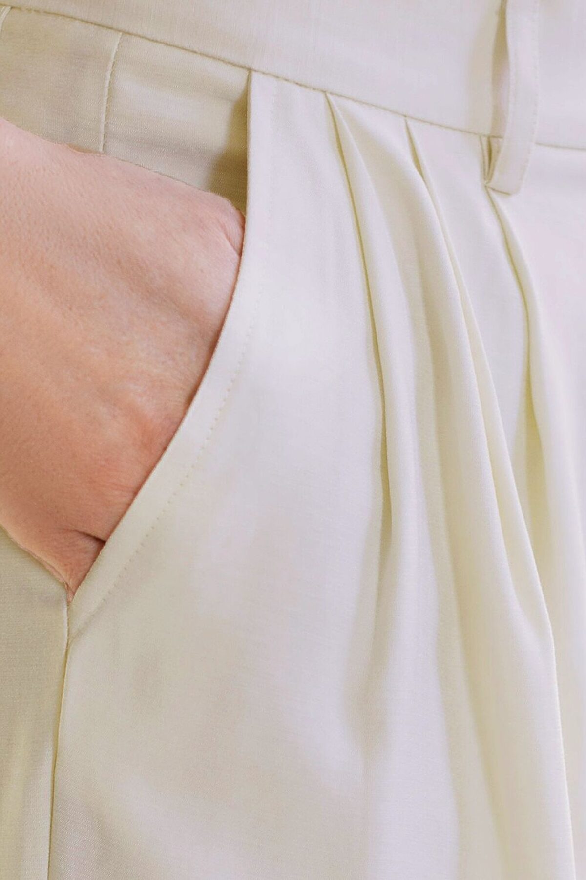 Брюки палаццо с защипами из плотного лиоцелла VILATTE, натуральный белый