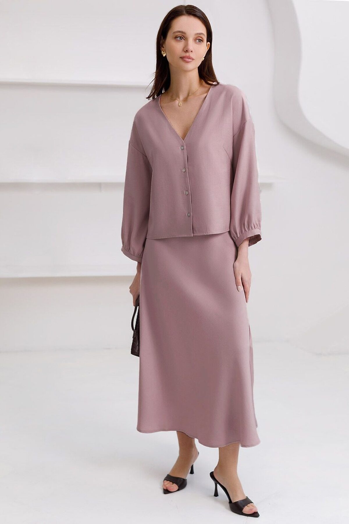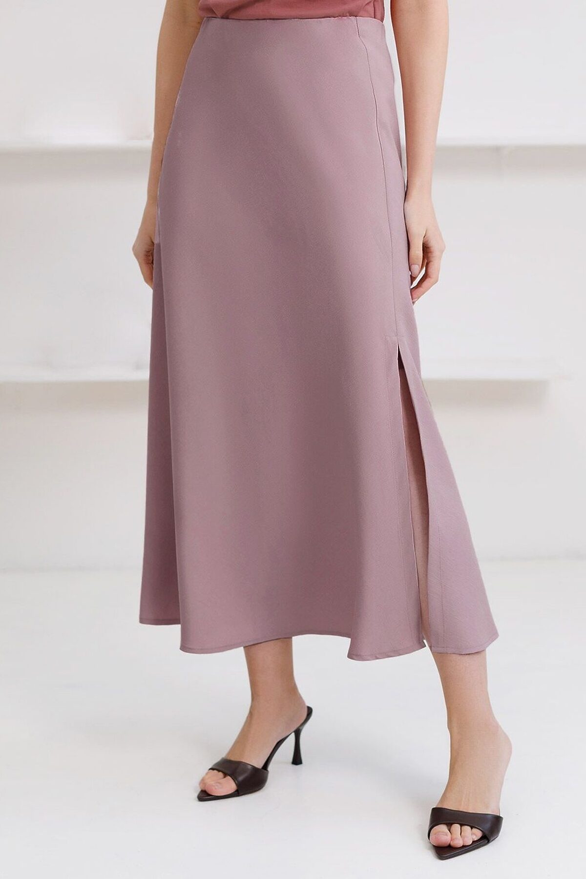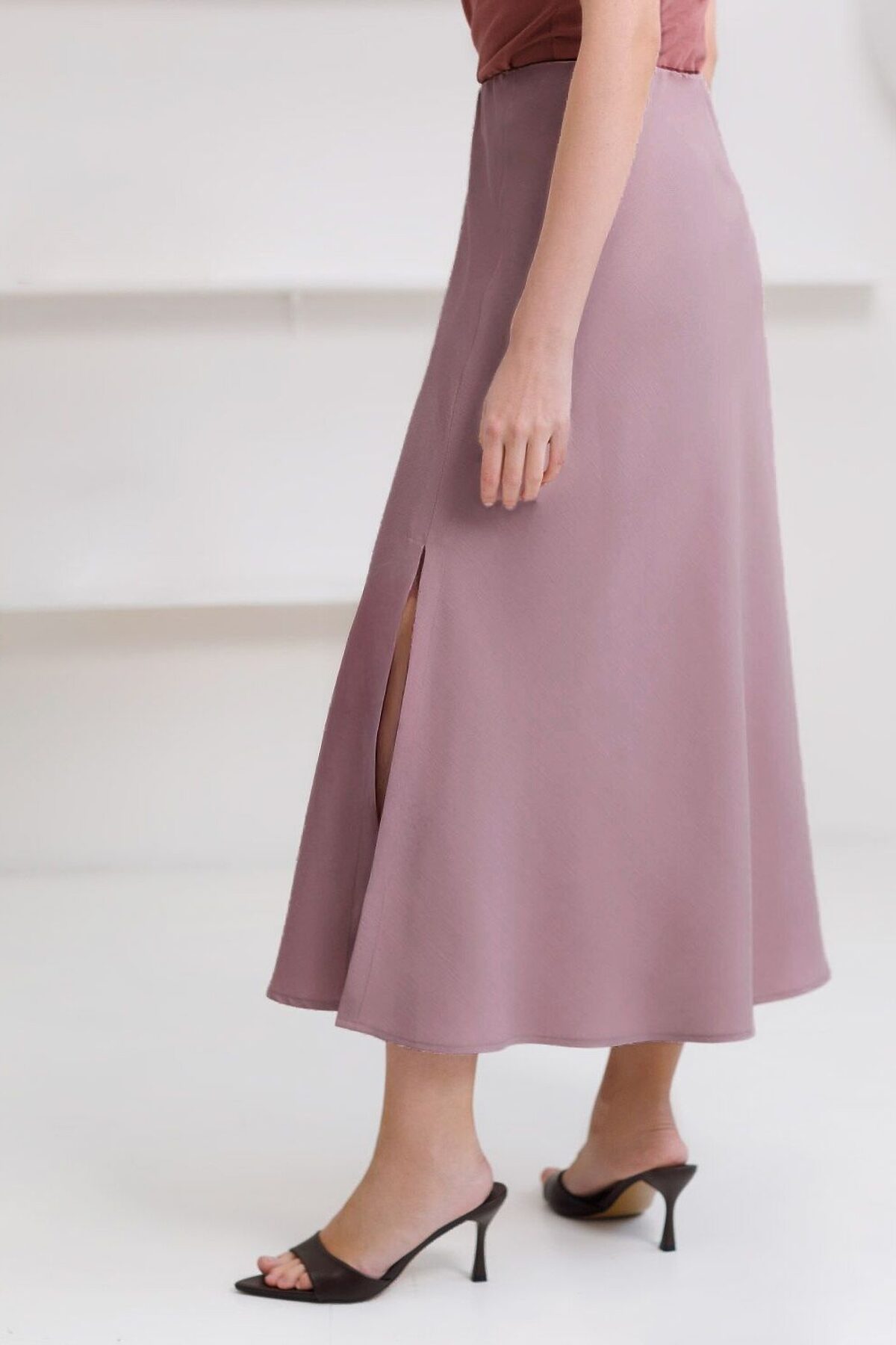 Юбка миди с разрезом скроенная по косой из плотного лиоцелла VILATTE, зефирно-розовый