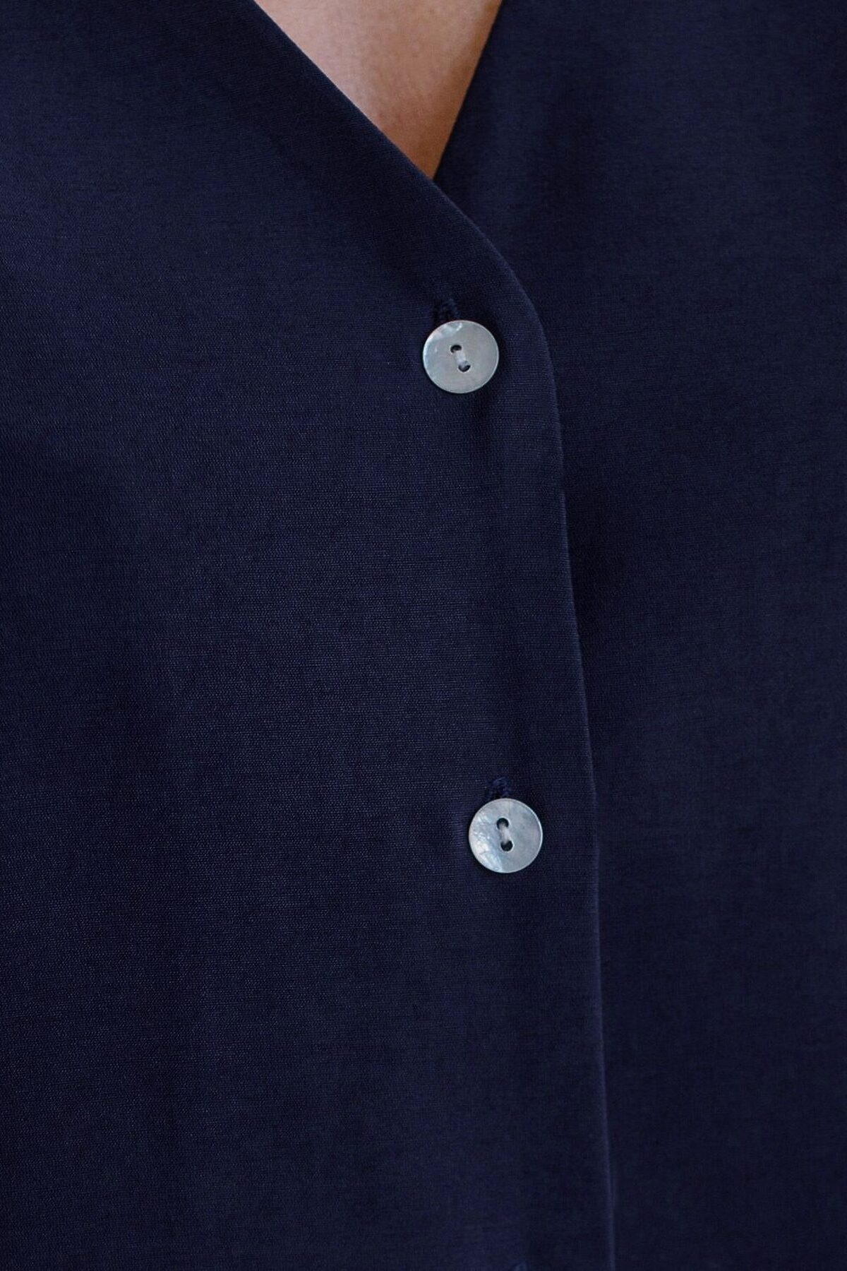 Укороченная блузка с V вырезом из плотного лиоцелла VILATTE, темно-синий
