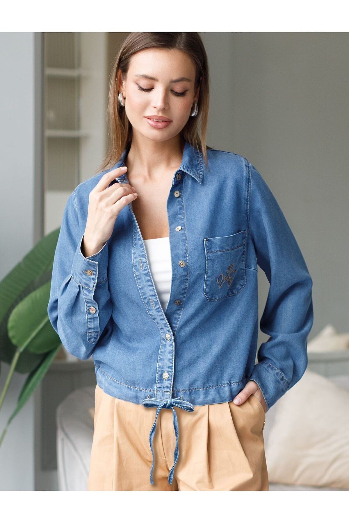 Укороченная стильная блузка светло-синего цвета с кулиской по низу выполнена из мягкого джинсового лиоцелла плотностью 7,8 OZ, который отлично держит форму и обеспечивает комфортную посадку на любую фигуру. Кулиска сформирует красивый силуэт, позволяя легко регулировать длину по желанию и подчеркнет достоинства фигуры, не стесняя движений. Короткая джинсовая рубашка на пуговицах с отложным воротником придаст образу стильный и современный вид. Практичная деталь — карман на груди с аккуратной вышивкой в виде логотипа бренда - украшает изделие. Ткань сочетает прочность и мягкость лиоцелла с вискозой, что делает её невероятно комфортной, дышащей, устойчивой к сминанию и идеально подходящей для чувствительной кожи. Благодаря нежным тактильным ощущениям, будто шелк, от которого ощущается приятная прохлада, рубашка отлично подходит для создания легких летних образов или стильных ансамблей на каждый день засчет своей универсальности. Длинный рукав гарантирует свободу движений и удобство на весь день. Джинсовую блузку можно сочетать в стиле кэжуал, а также создавать монохромные образы или добавлять яркие акценты с помощью аксессуаров. Эта джинсовая рубашка на пуговицах станет базовым элементом гардероба для тех, кто ценит сочетание моды и удобства. Рекомендуем сочетать с артикулами: D54.257, D56.127, D54.239