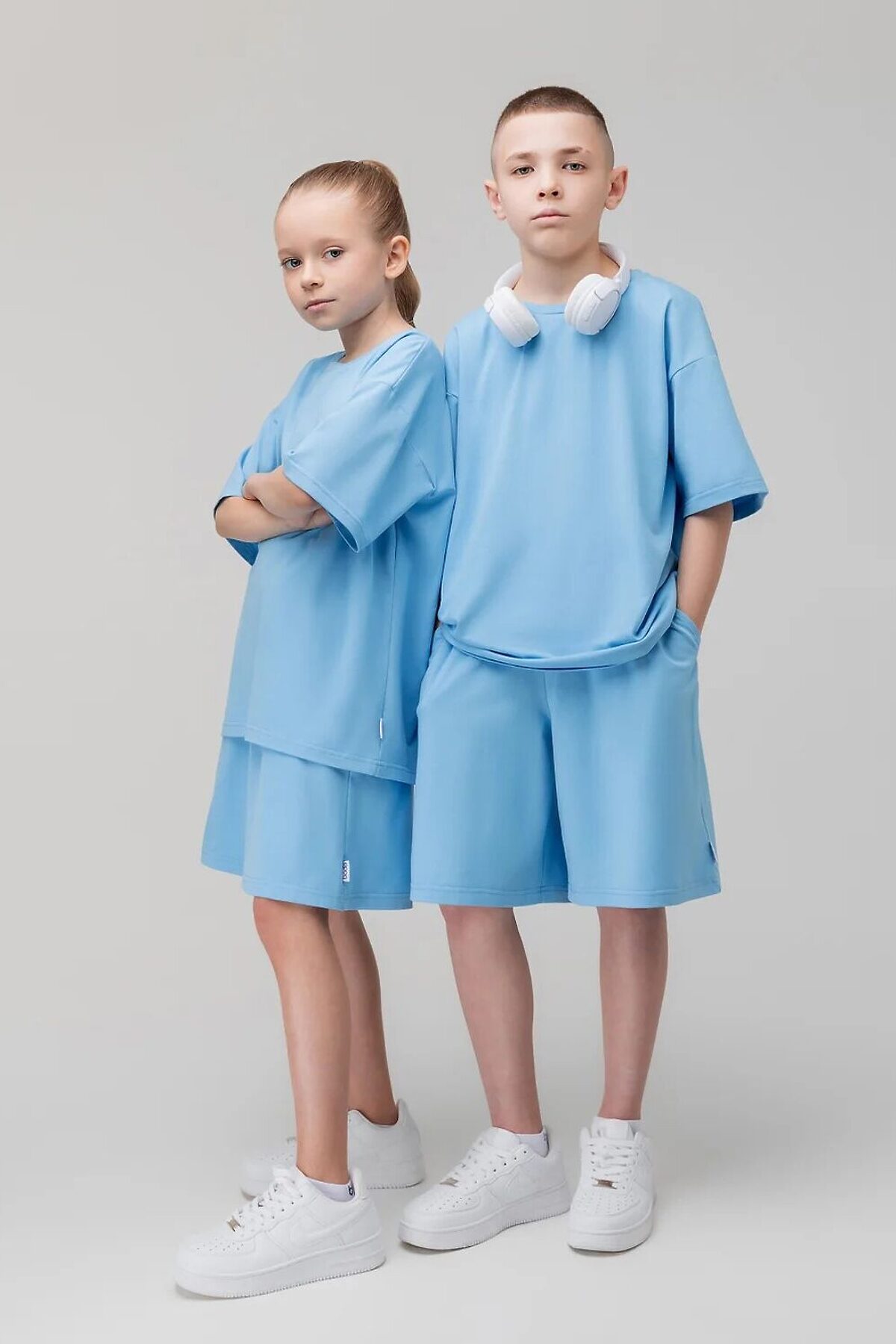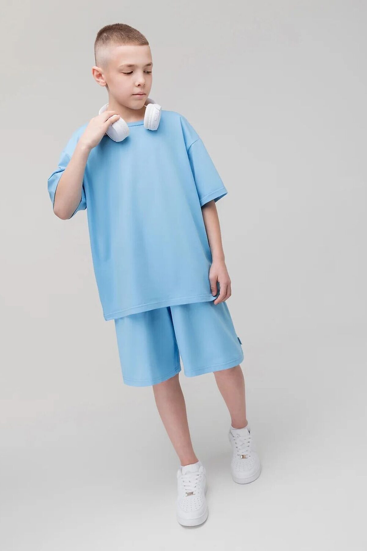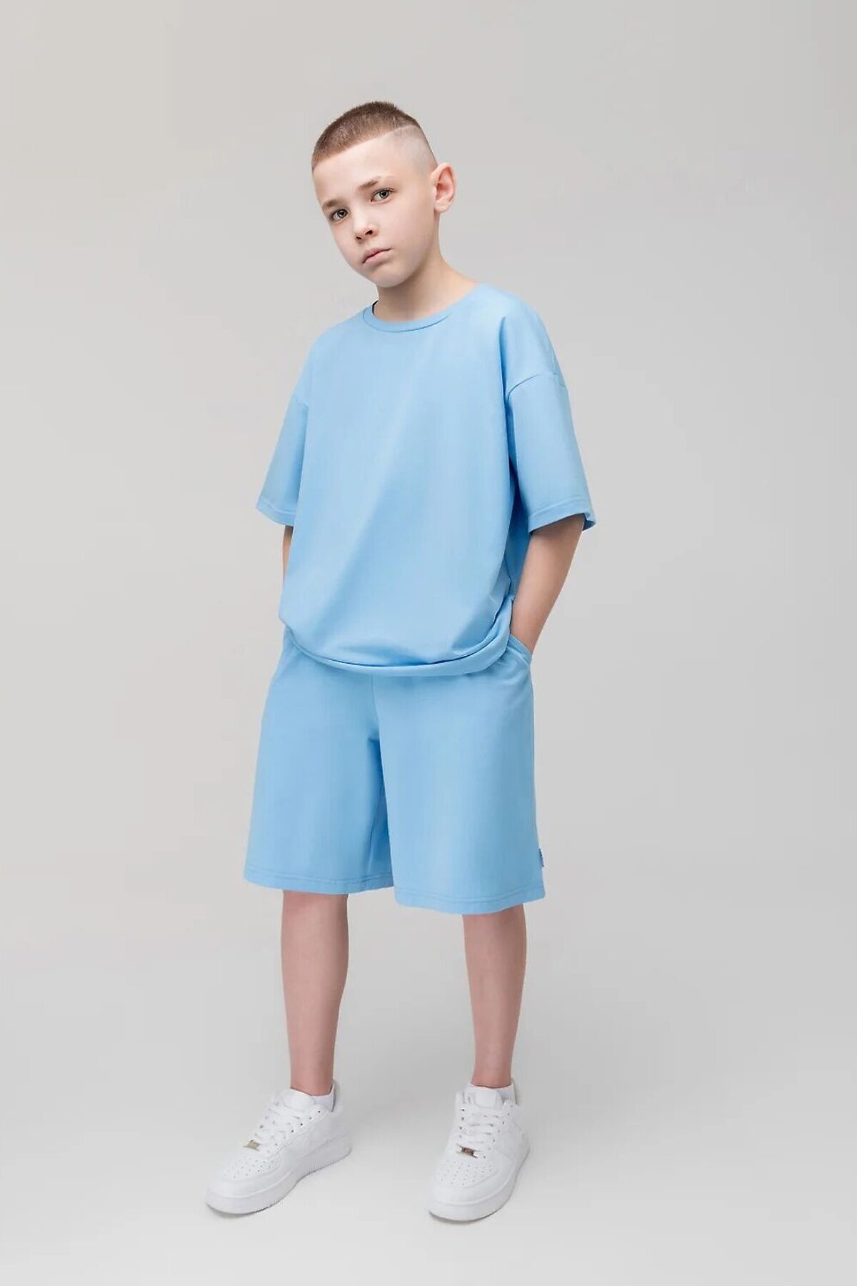 Костюм для подростков. Шорты, детали: свободный покрой, пояс - эластичная резинка, карманы с отрезным бочком. Футболка, детали: короткие рукава, свободный покрой, округлый вырез горловины. Состав:кулирная гладь 92% хлопок 8% лайкра