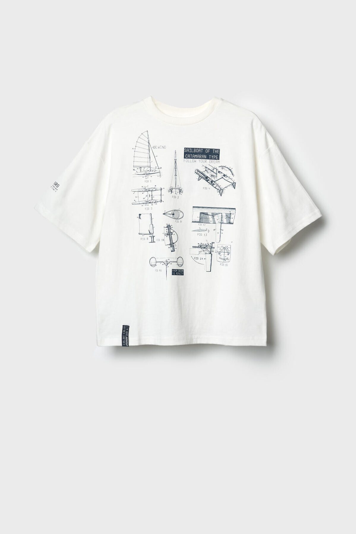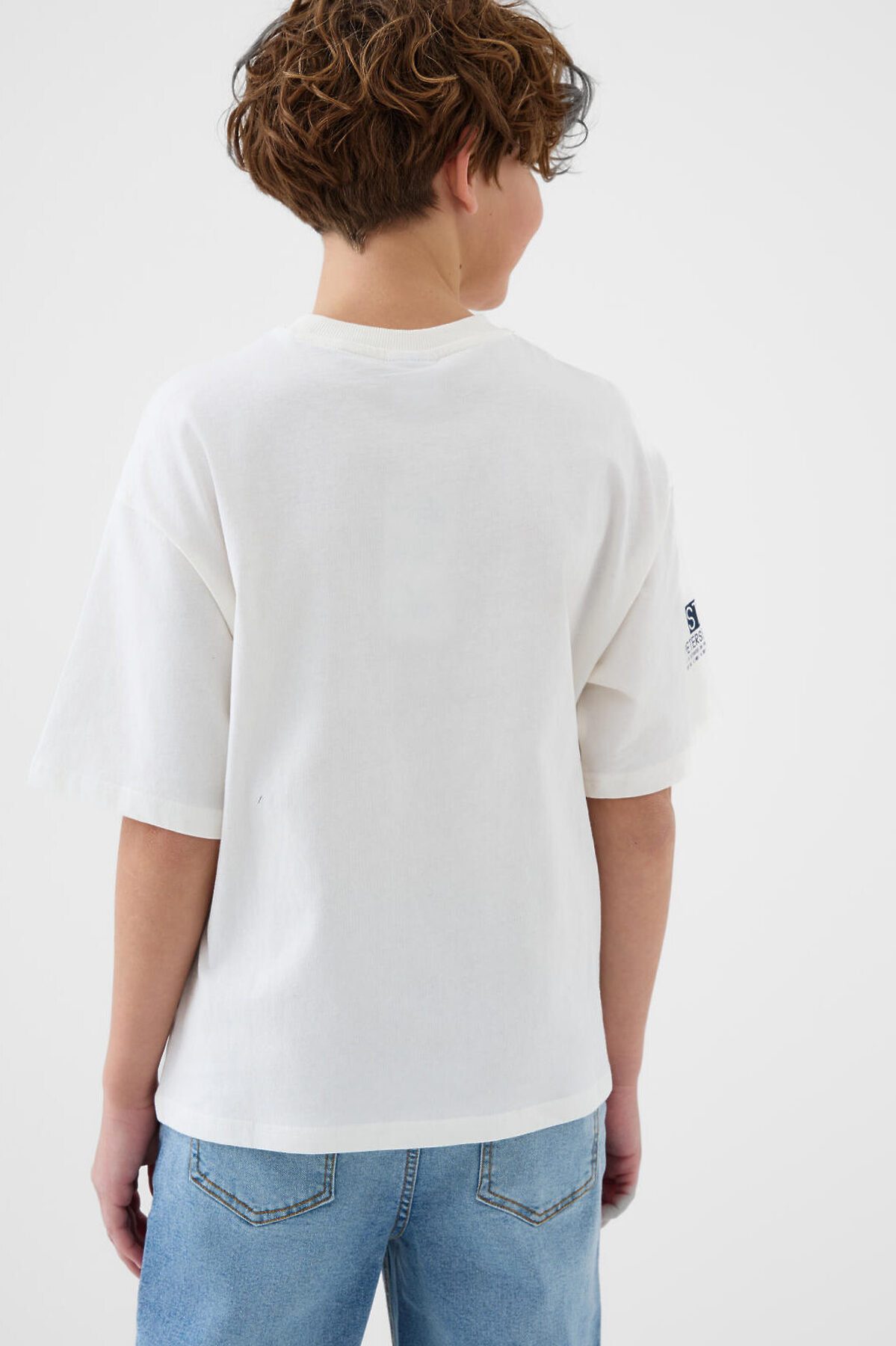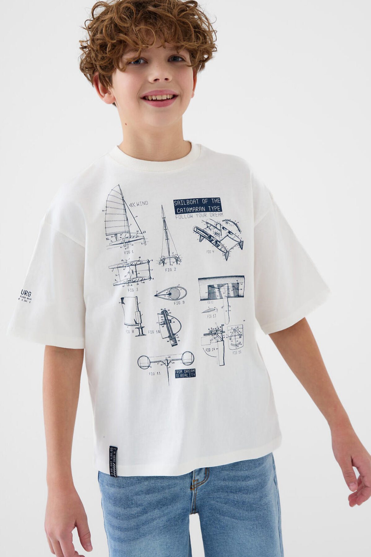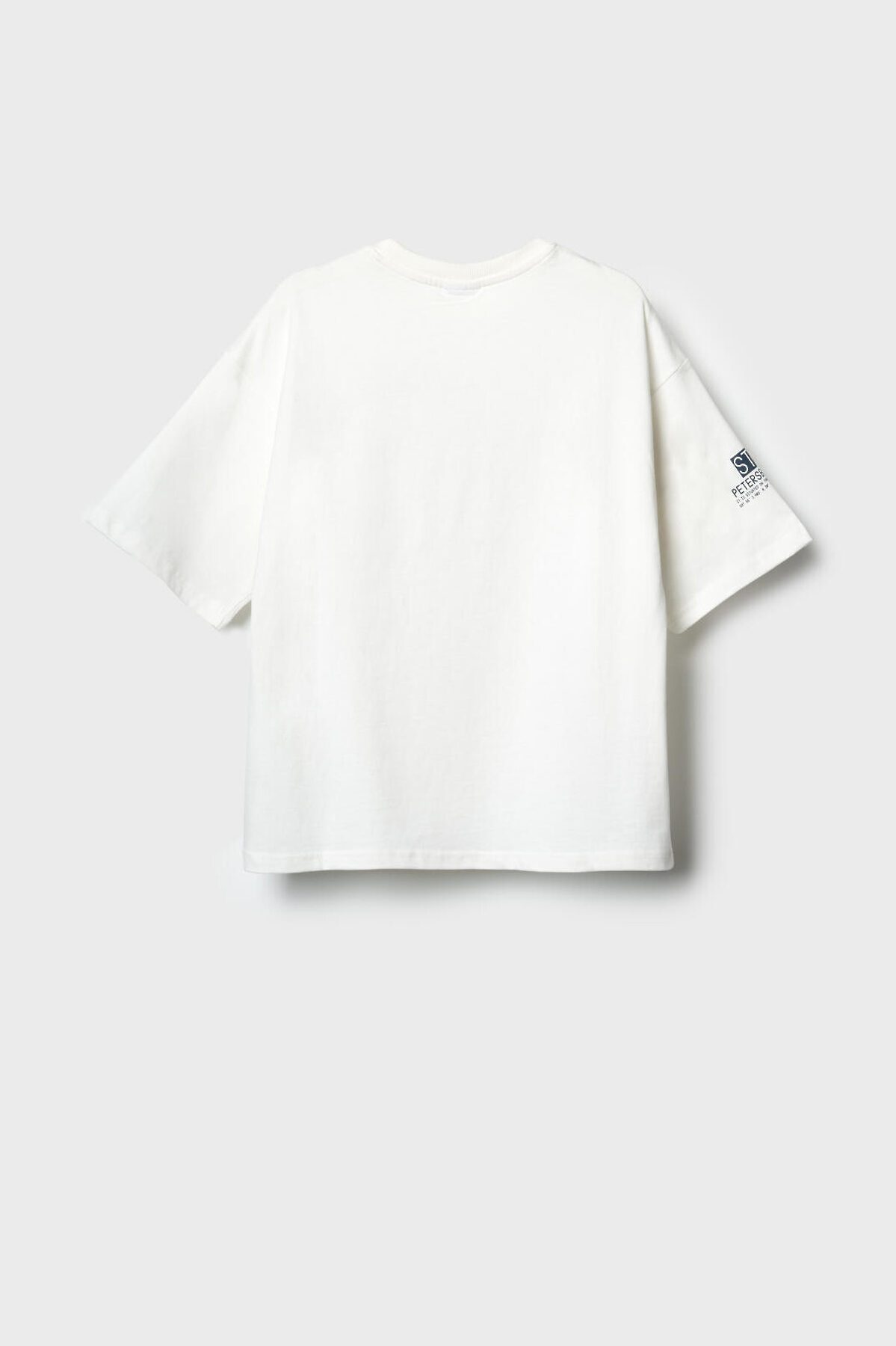 Футболка оверсайз для мальчика подростка. Модель выполнена из эластичного хлопкового трикотажа джерси. Спереди расположен крупный принт, вдохновленный Санкт-Петербургом. Горловина круглая, обработана эластичным рибом. По низу - небольшая нашивка.