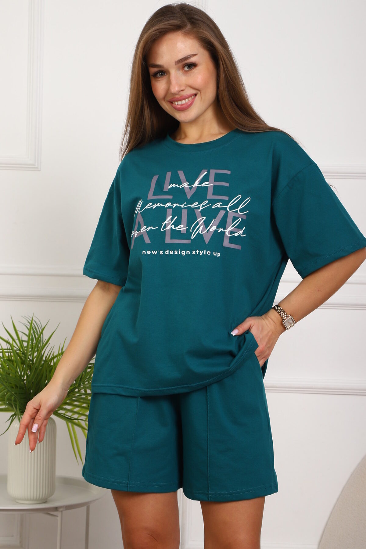 Костюм с шортами 20524 НАТАЛИ, изумрудный