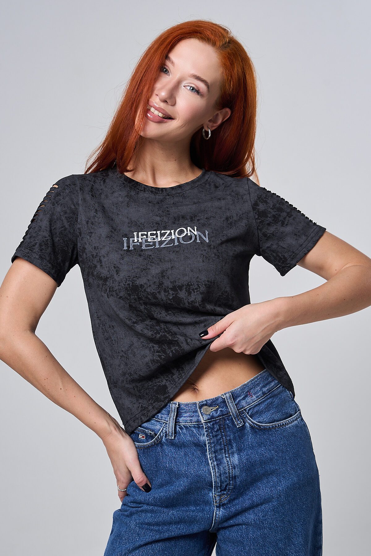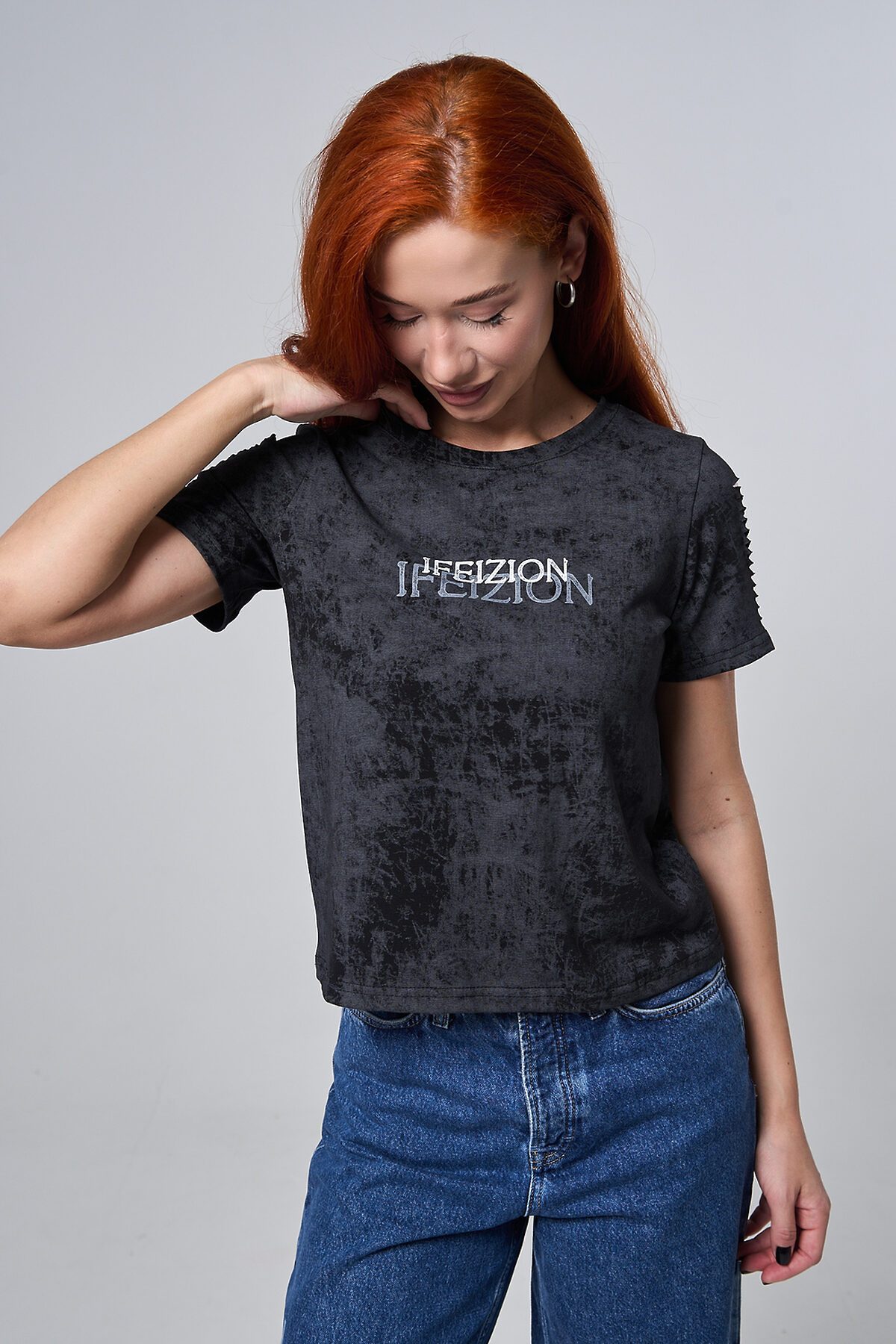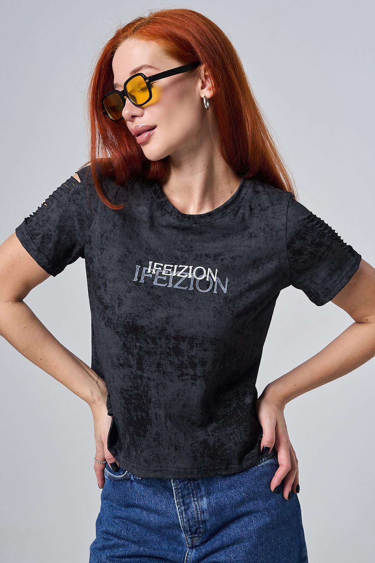 Футболка 7502 НАТАЛИ, черный винтаж+замок