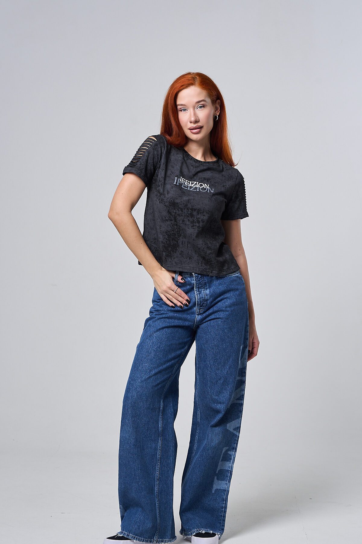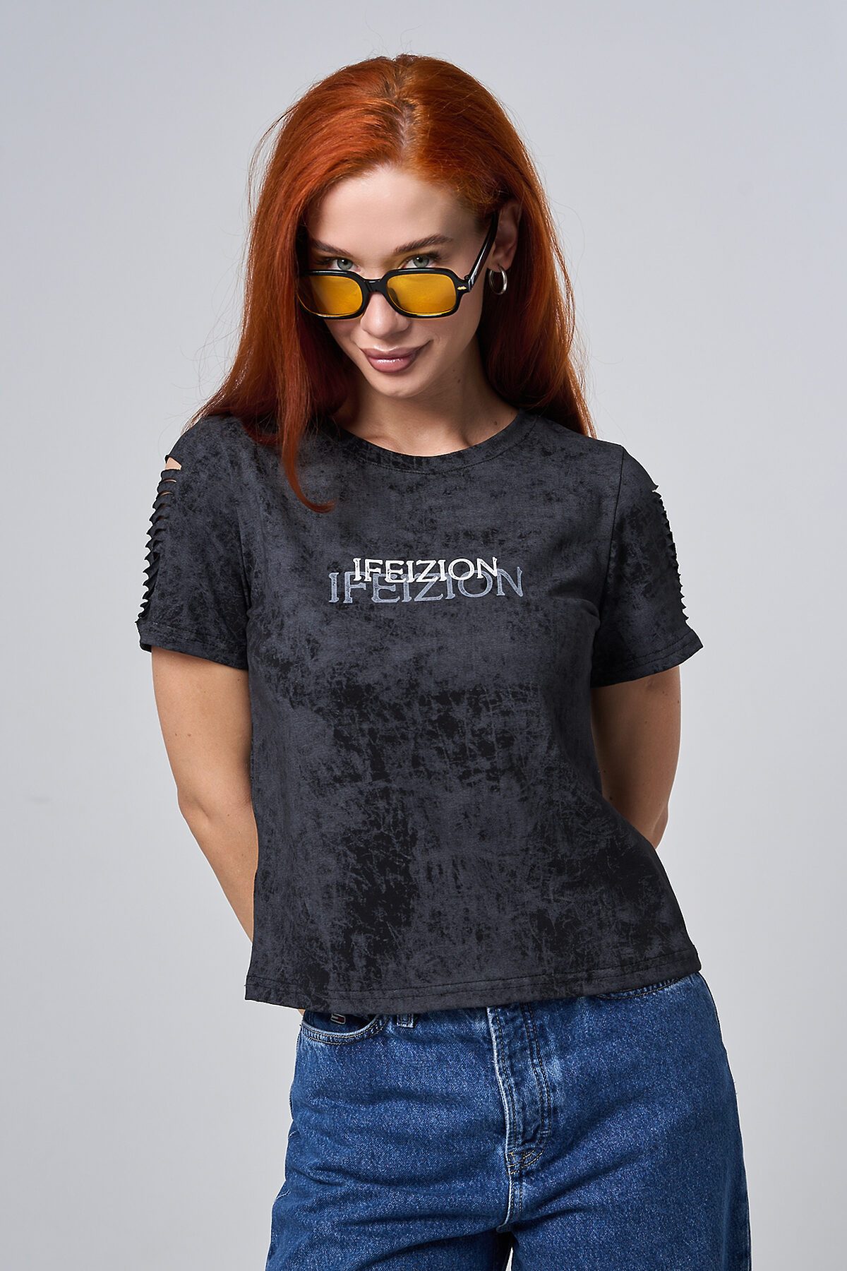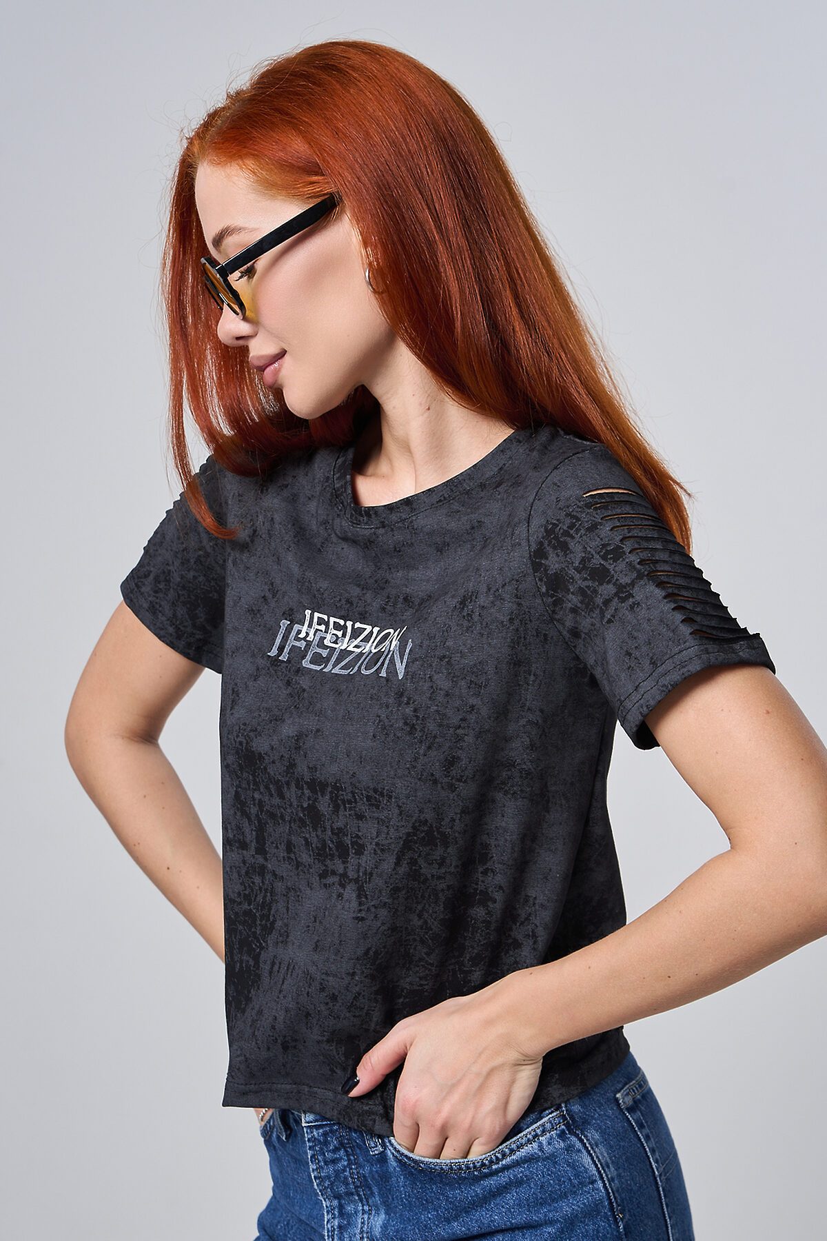 Футболка 7502 НАТАЛИ, черный винтаж+замок