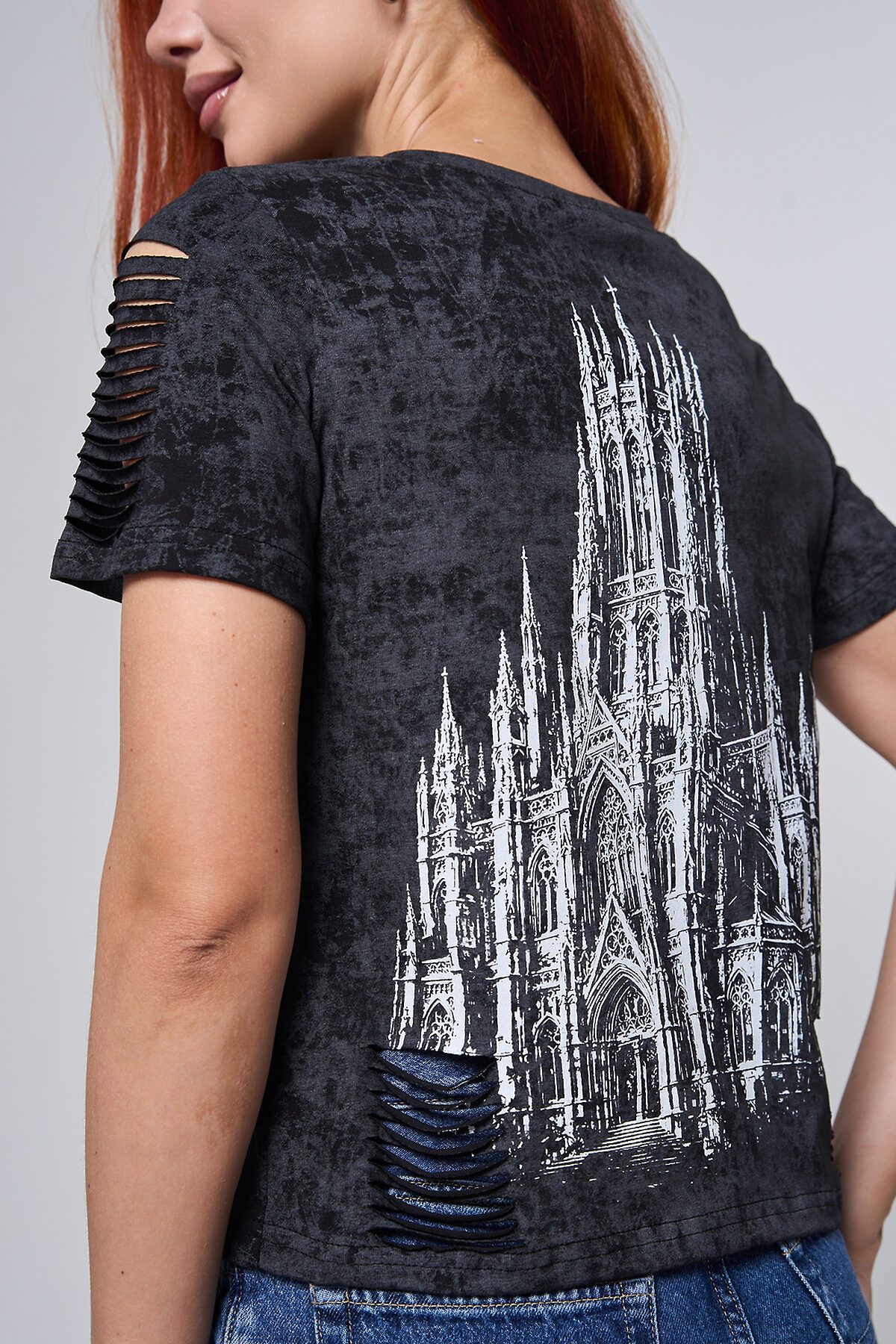 Ваш уникальный стиль начинается здесь! Черные футболки с эффектным принтом на спине это больше, чем просто одежда. ⚡ Дерзкие прорези по рукавам добавляют характер и индивидуальность вашему образу. 🦋 Бабочка, величественный собор, вдохновляющая надпись Dream Big Act Now или яркая люстра выберите тот мотив, который отражает вашу энергию и характер! 💥 Стильный винтажный эффект ткани и свободный крой идеально сочетаются с любимыми джинсами или шортами. 🖤 Созданы для тех, кто не боится выделяться и воплощать свои мечты в повседневной жизни!