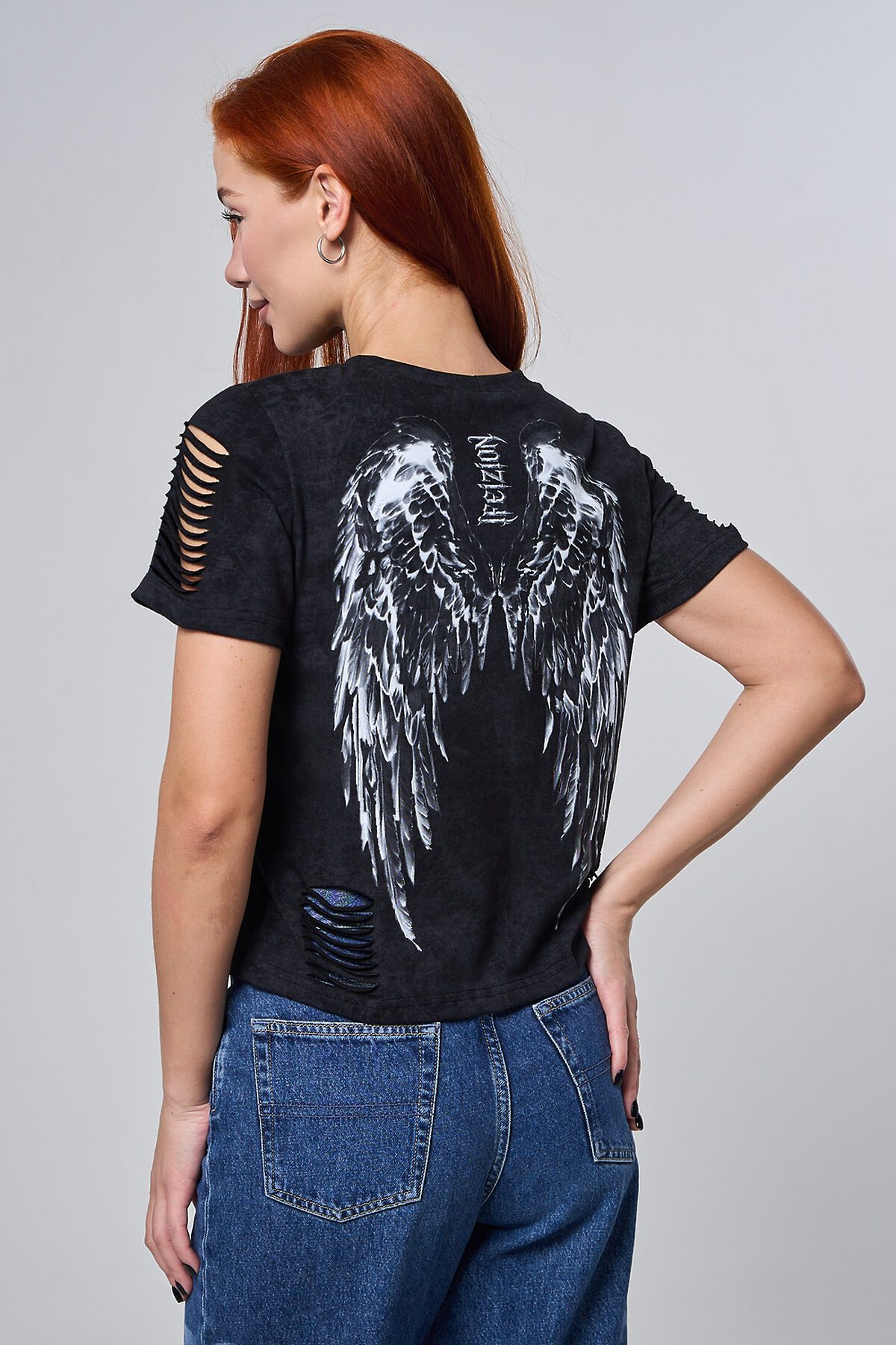 Футболка 7502 НАТАЛИ, черный винтаж+крылья