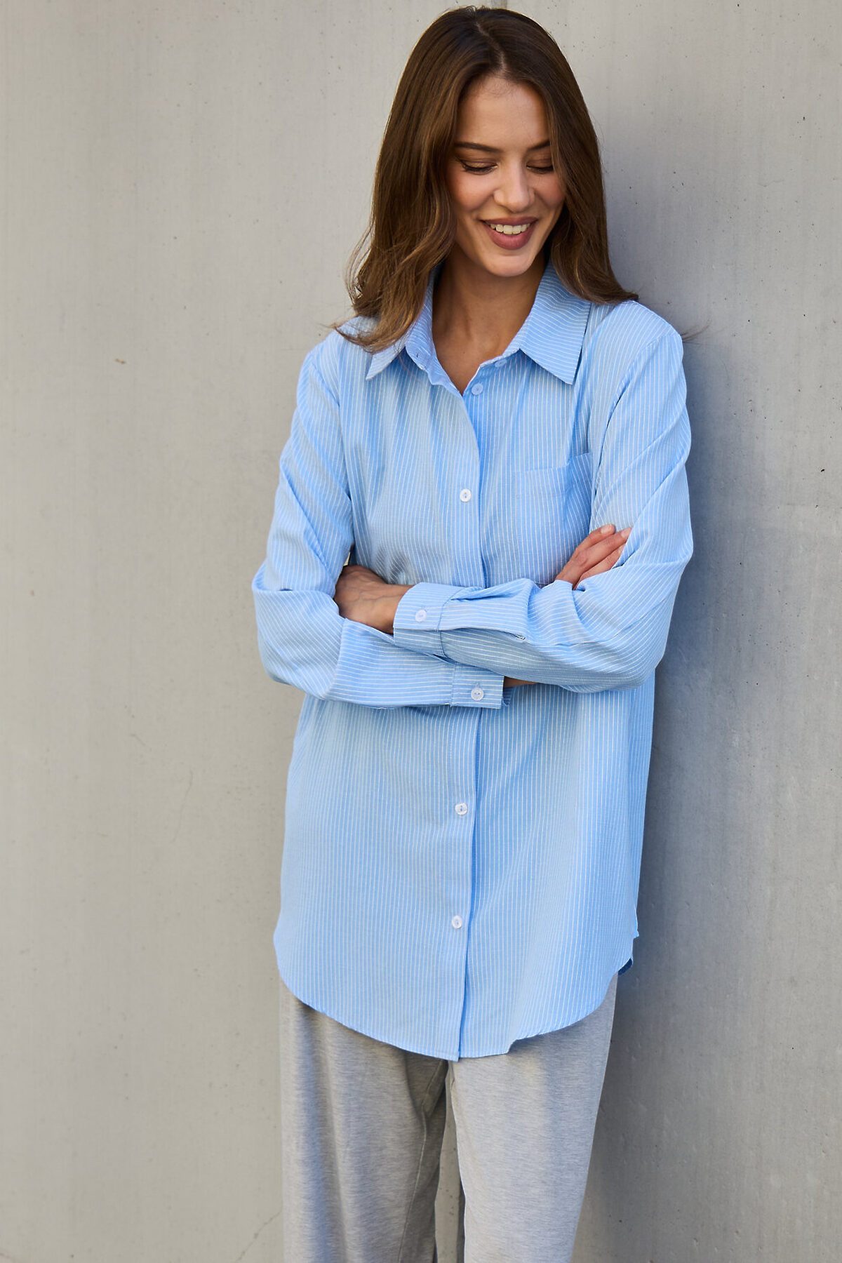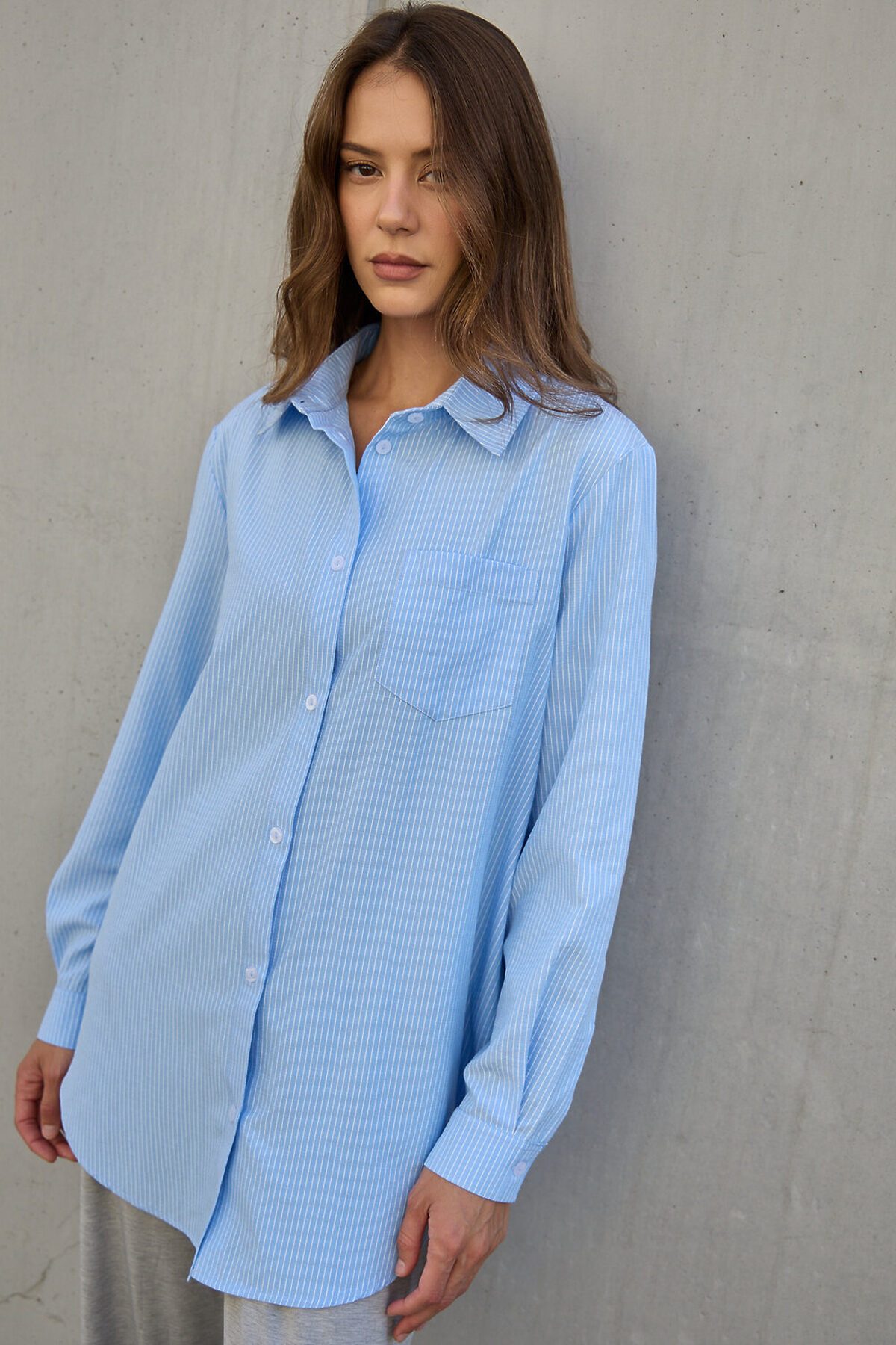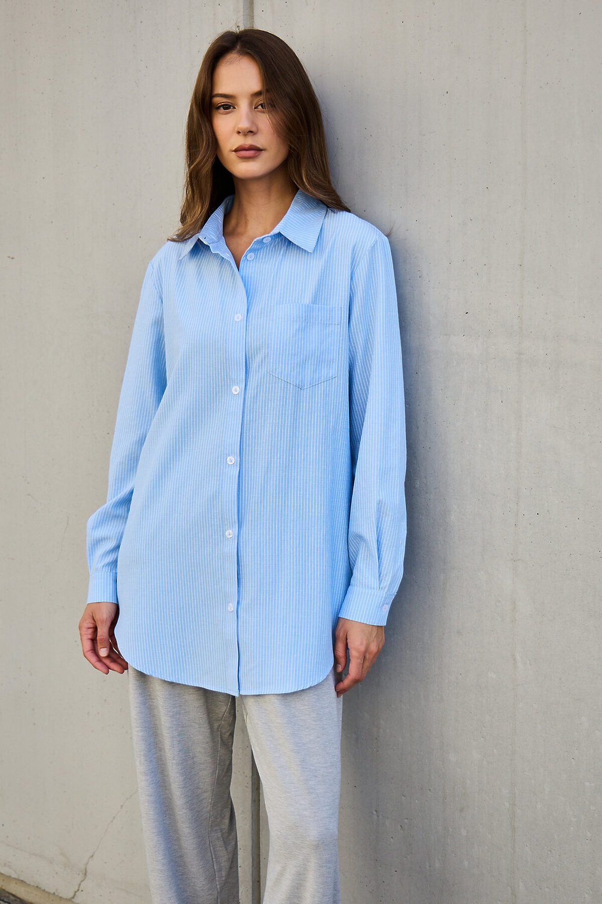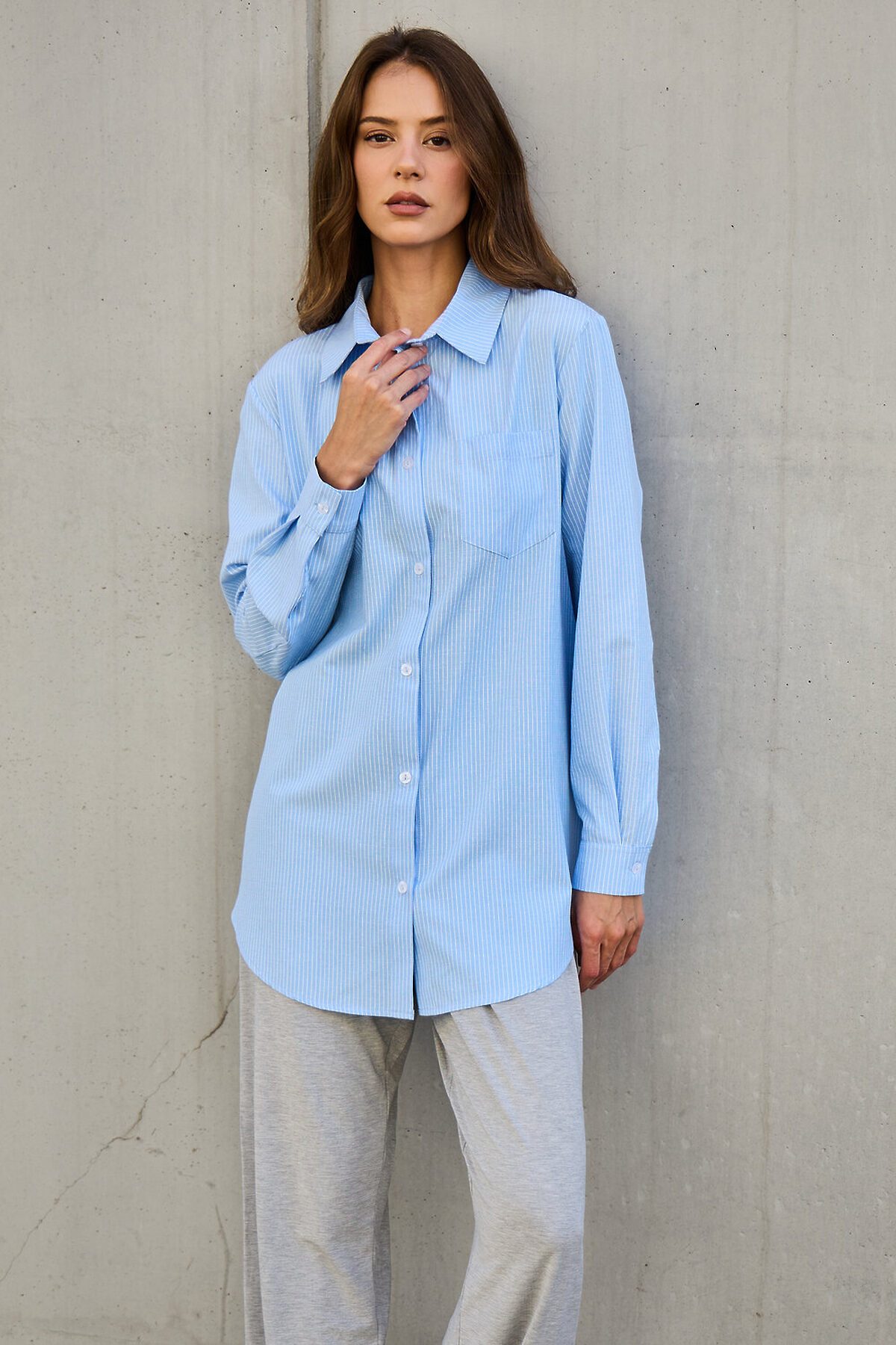 Рубашка оверсайз в полоску хлопковая НАТАЛИ, голубой