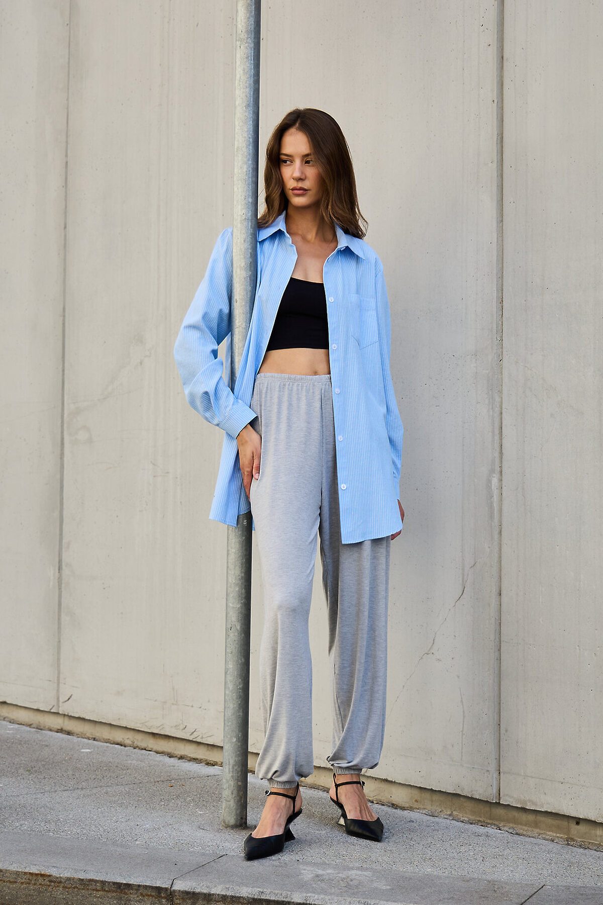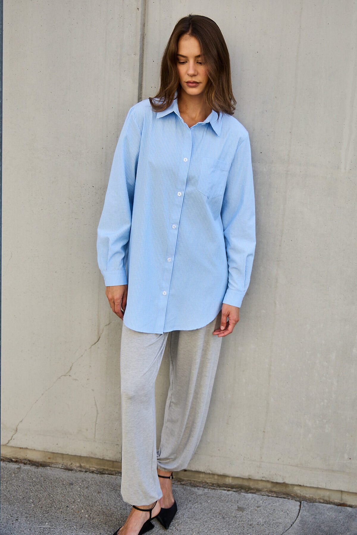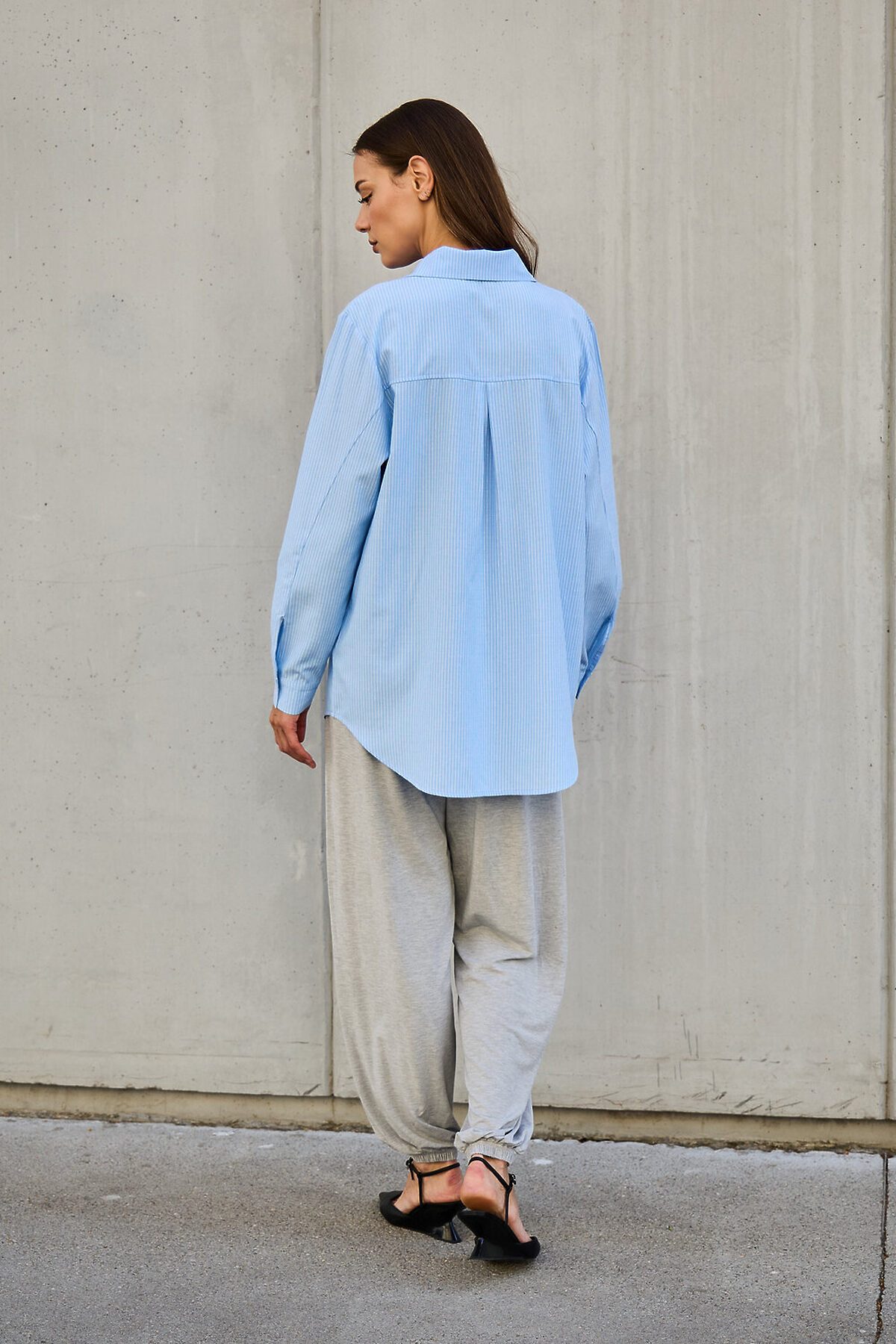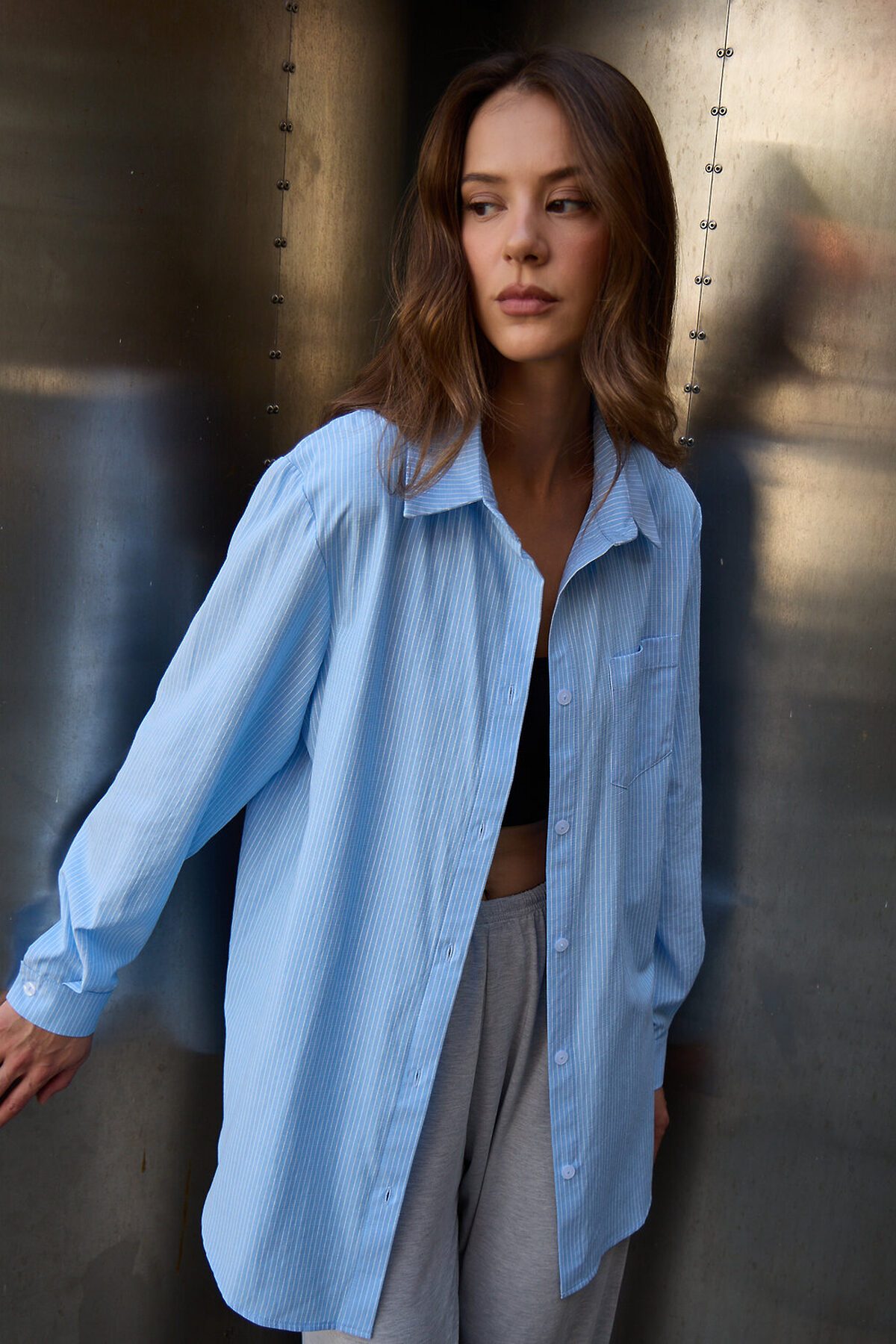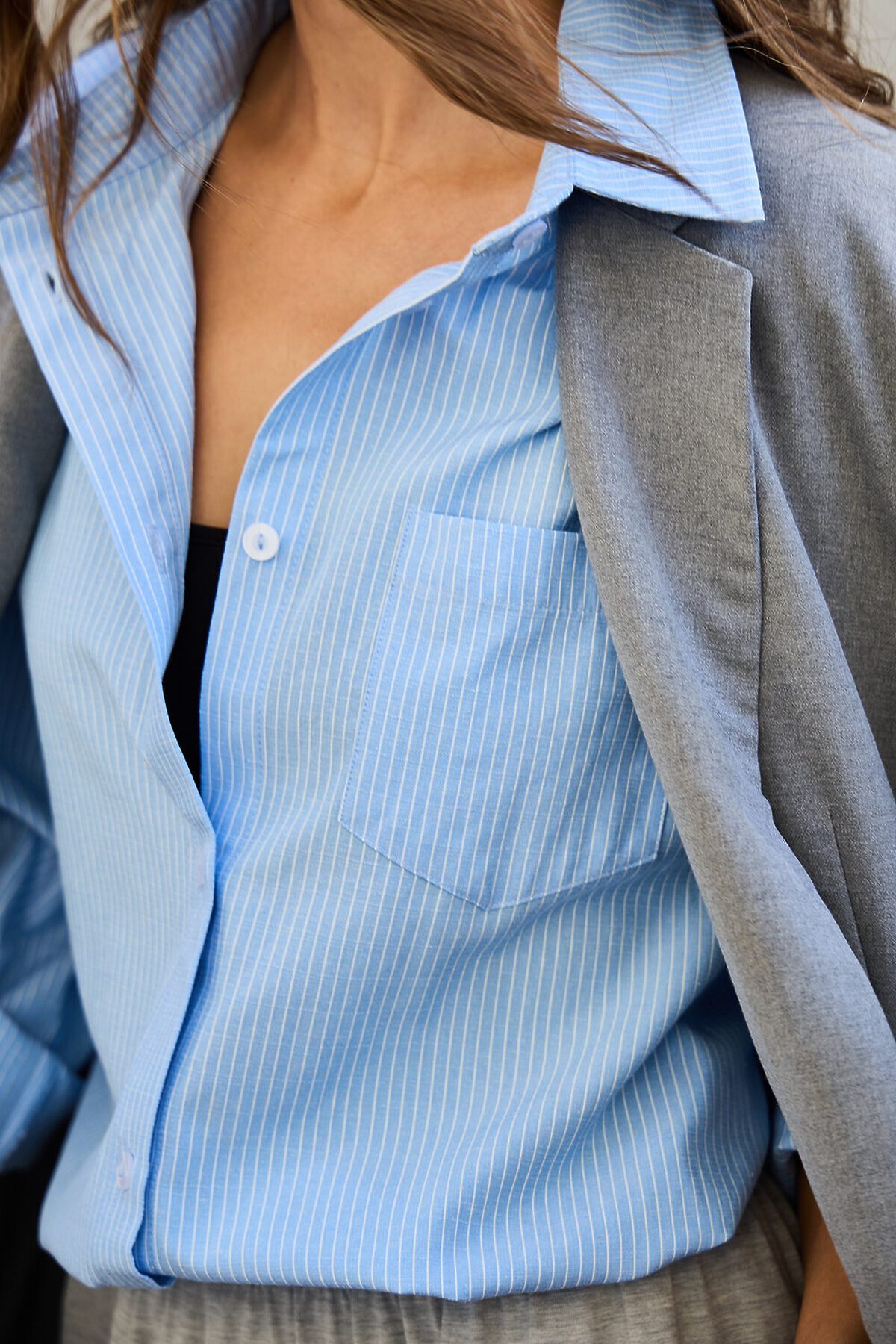 Рубашка оверсайз в полоску хлопковая НАТАЛИ, голубой