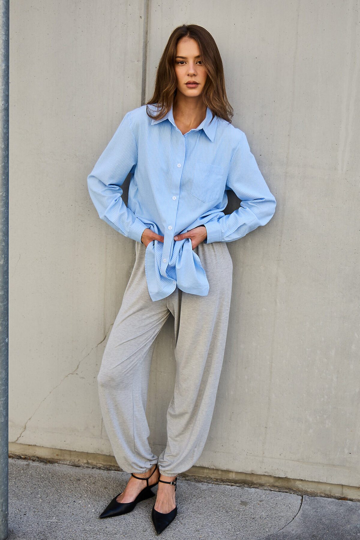 Ваш идеальный весенний образ начинается с нее: женская рубашка в полоску. Эта базовая модель из натурального хлопка настоящее воплощение комфорта и стиля. Созданная для вашего удобства: прямой рукав и классический воротник дарят ощущение легкости и свободы движений на протяжении всего дня. Безупречная универсальность: модная блузка с легкостью адаптируется к любому настроению и событию от расслабленных повседневных прогулок до строгих офисных будней. Изысканность в каждой детали: удлиненный силуэт, элегантный длинный рукав и широкий воротник придают этой полосатой рубашке особый шарм. Она станет вашим верным спутником на романтических свиданиях, обеспечит комфорт в школе и подчеркнет профессионализм в офисе. Легкость и дышащие свойства хлопка гарантируют непревзойденное ощущение свежести.