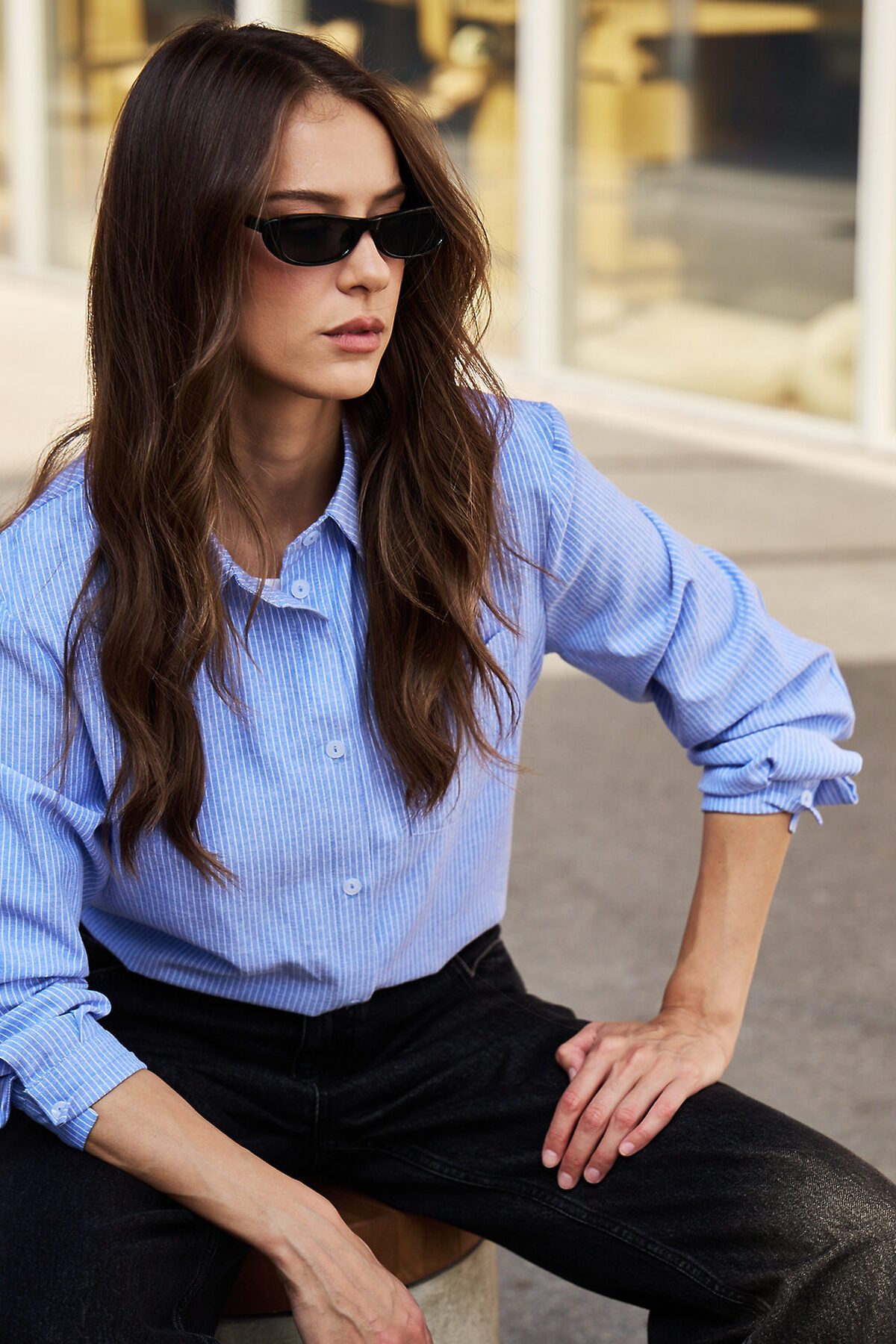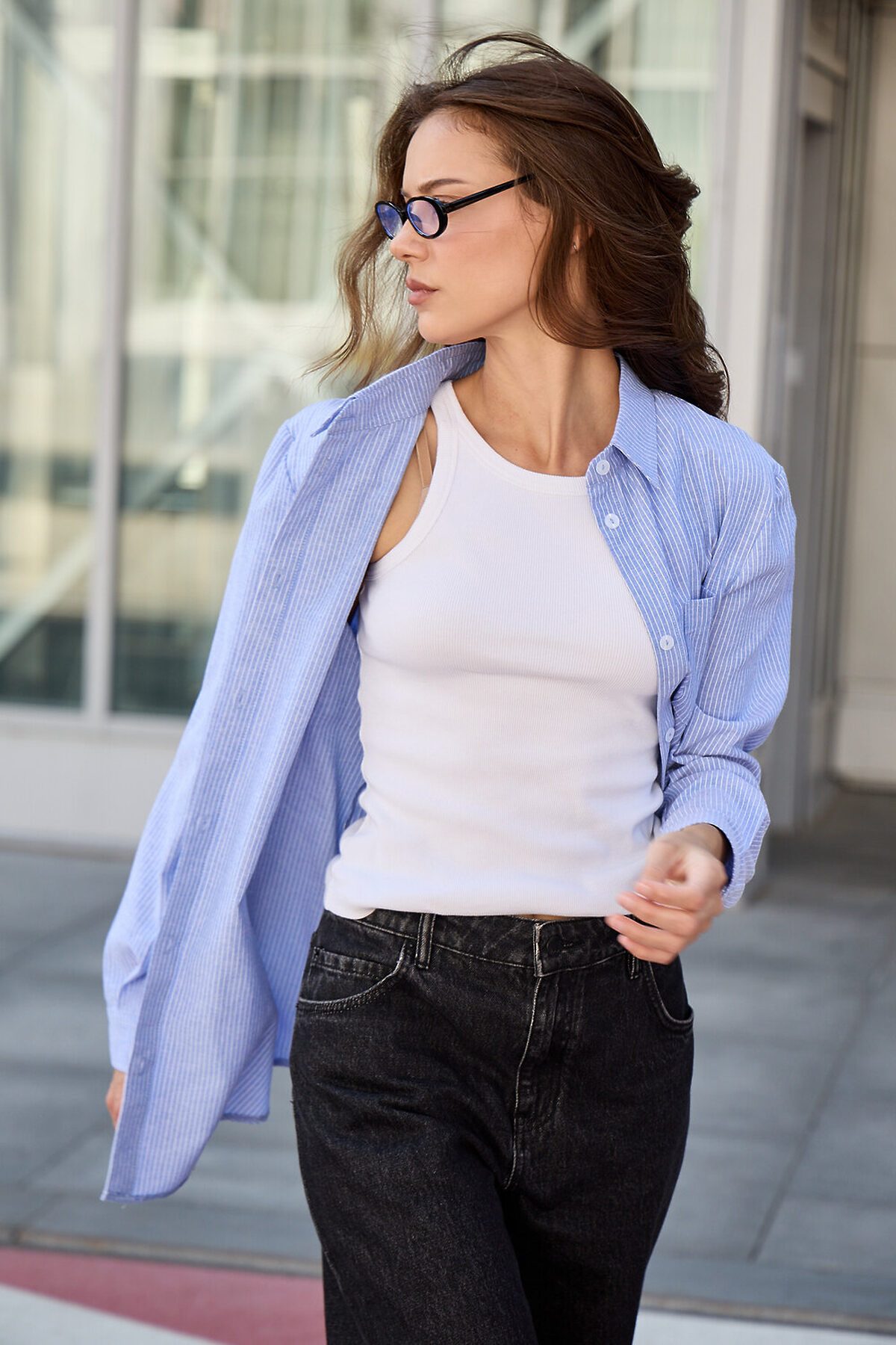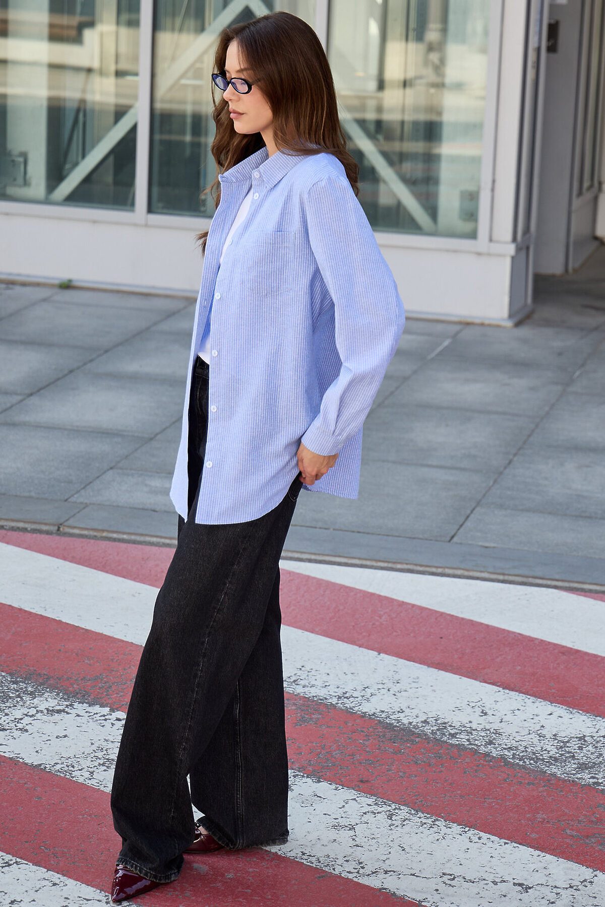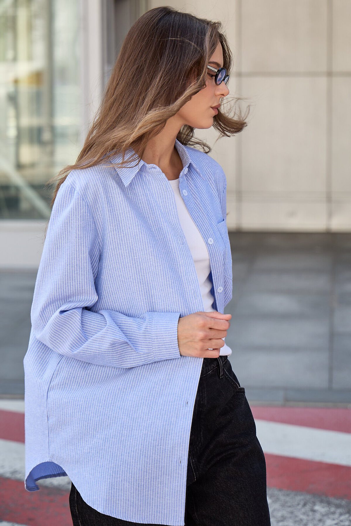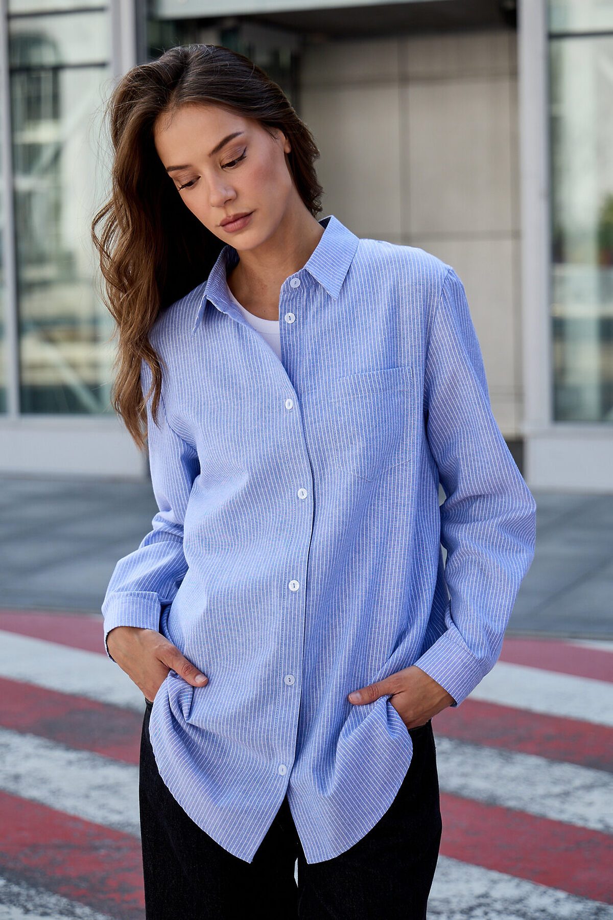 Рубашка оверсайз в полоску хлопковая НАТАЛИ, синий