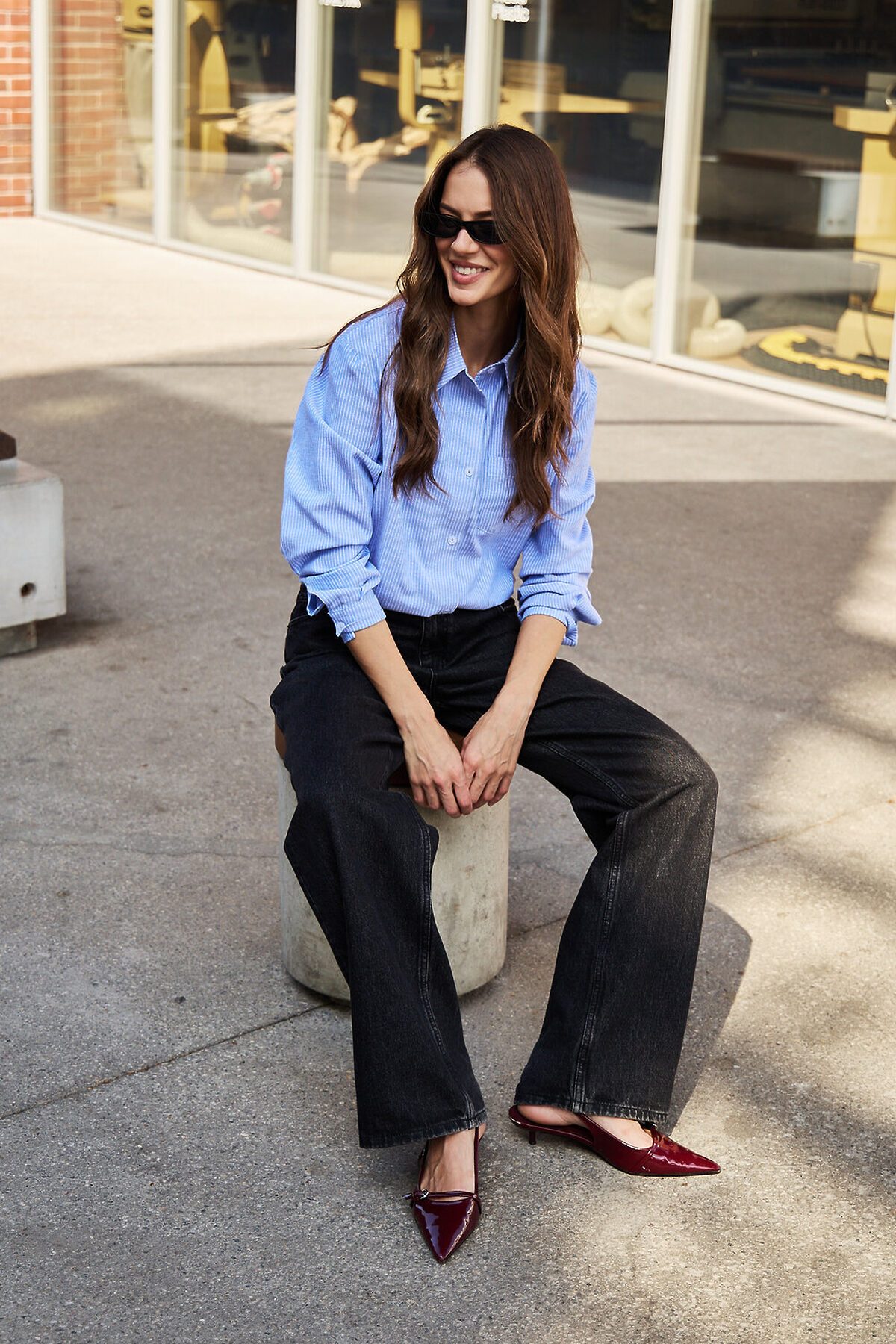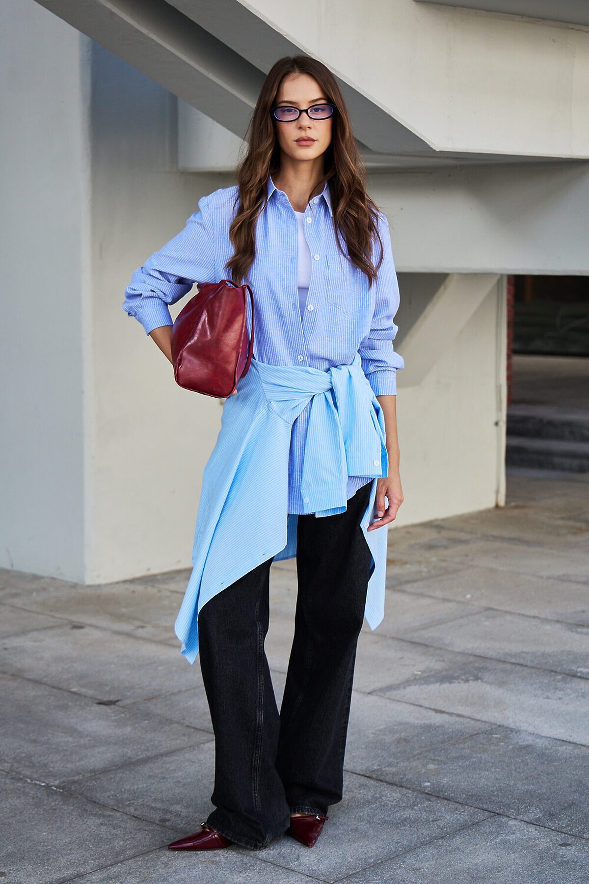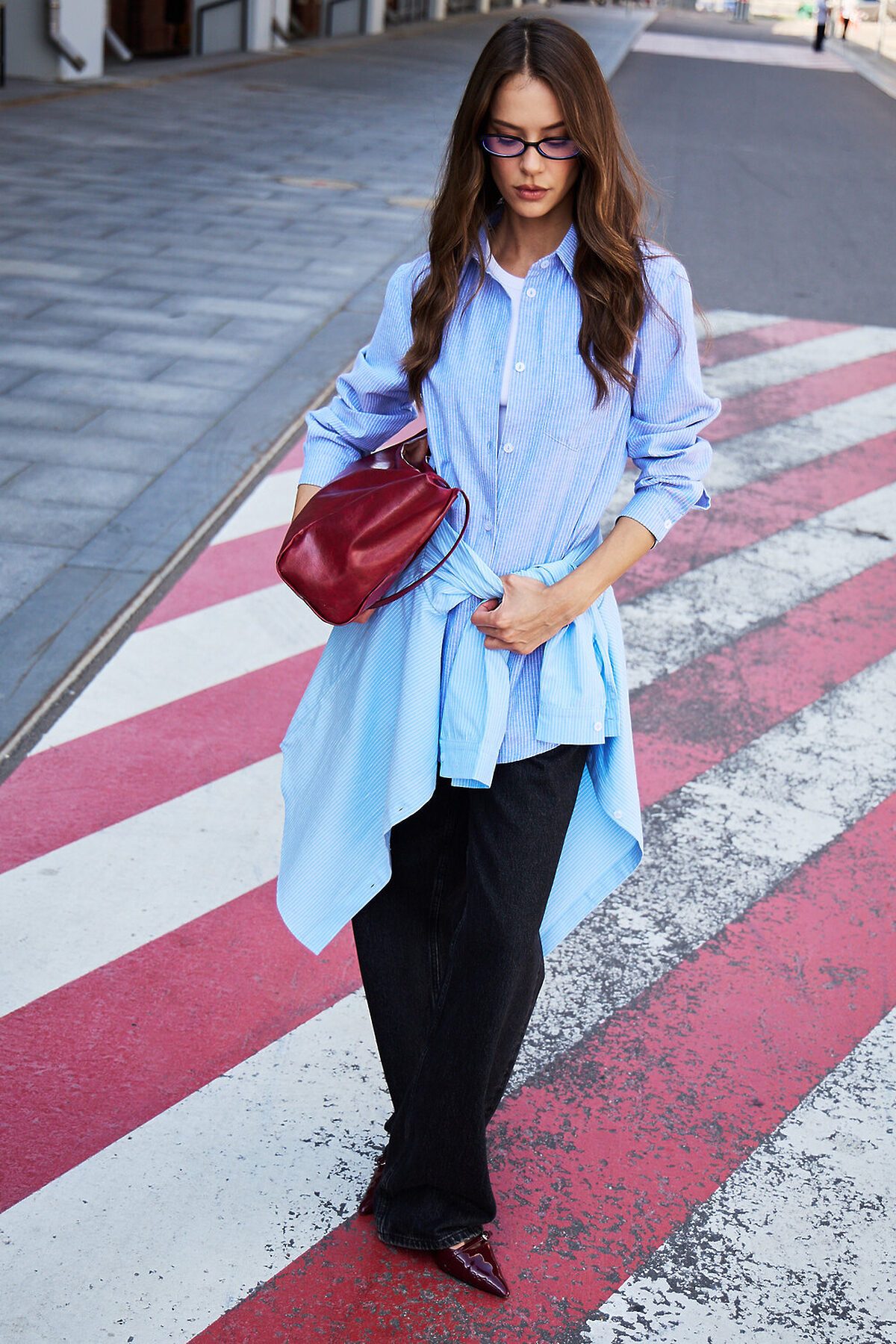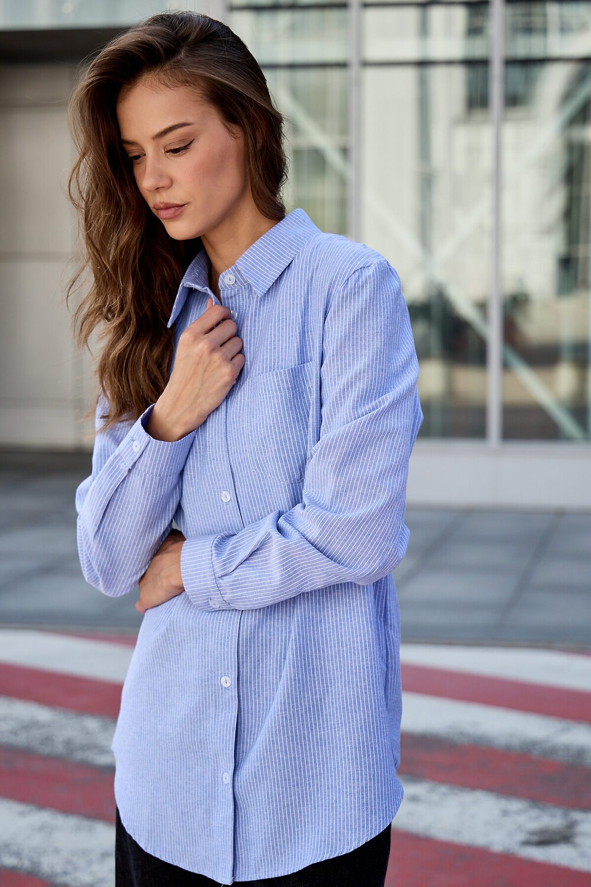 Ваш идеальный весенний образ начинается с нее: женская рубашка в полоску. Эта базовая модель из натурального хлопка настоящее воплощение комфорта и стиля. Созданная для вашего удобства: прямой рукав и классический воротник дарят ощущение легкости и свободы движений на протяжении всего дня. Безупречная универсальность: модная блузка с легкостью адаптируется к любому настроению и событию от расслабленных повседневных прогулок до строгих офисных будней. Изысканность в каждой детали: удлиненный силуэт, элегантный длинный рукав и широкий воротник придают этой полосатой рубашке особый шарм. Она станет вашим верным спутником на романтических свиданиях, обеспечит комфорт в школе и подчеркнет профессионализм в офисе. Легкость и дышащие свойства хлопка гарантируют непревзойденное ощущение свежести.
