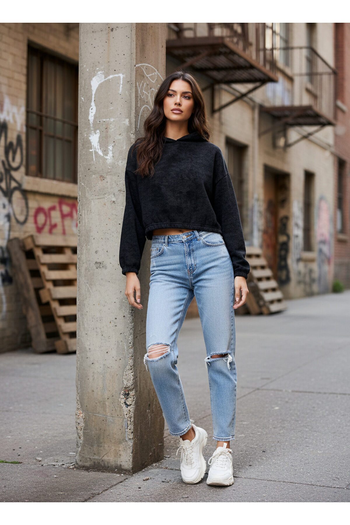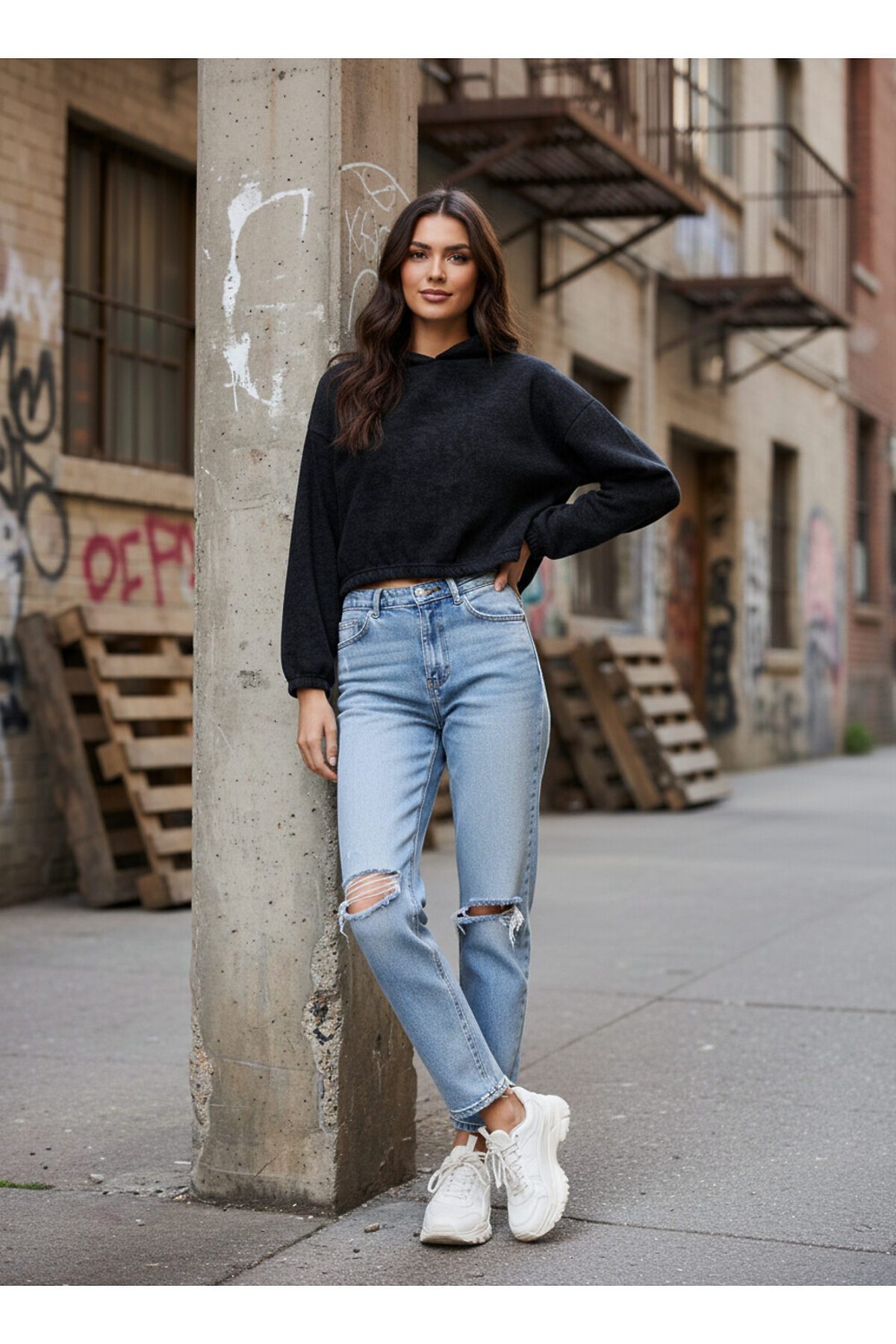 Худи женское укороченное варенка, силуэт оверсайз. Спущенное плечо.