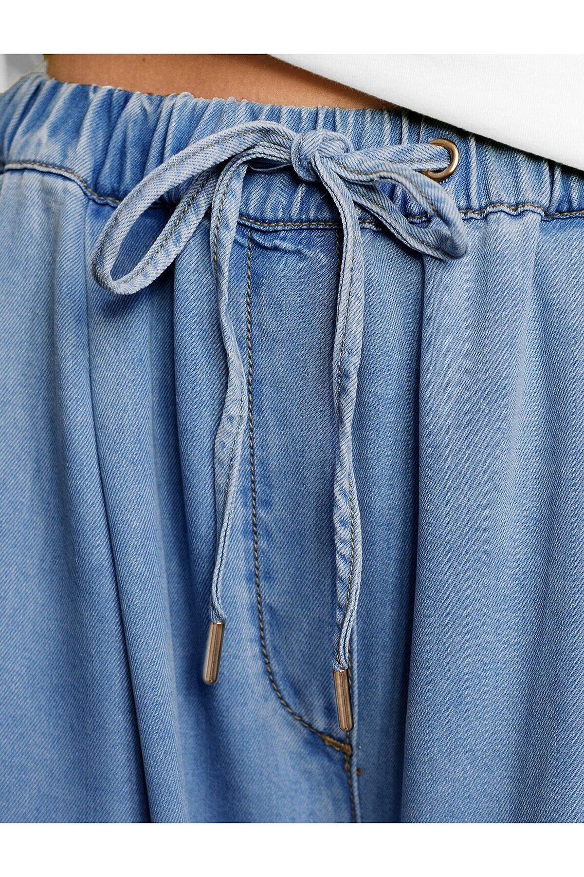 Брюки-палаццо с поясом на резинке из джинсового лиоцелла VILATTE, светло-синий