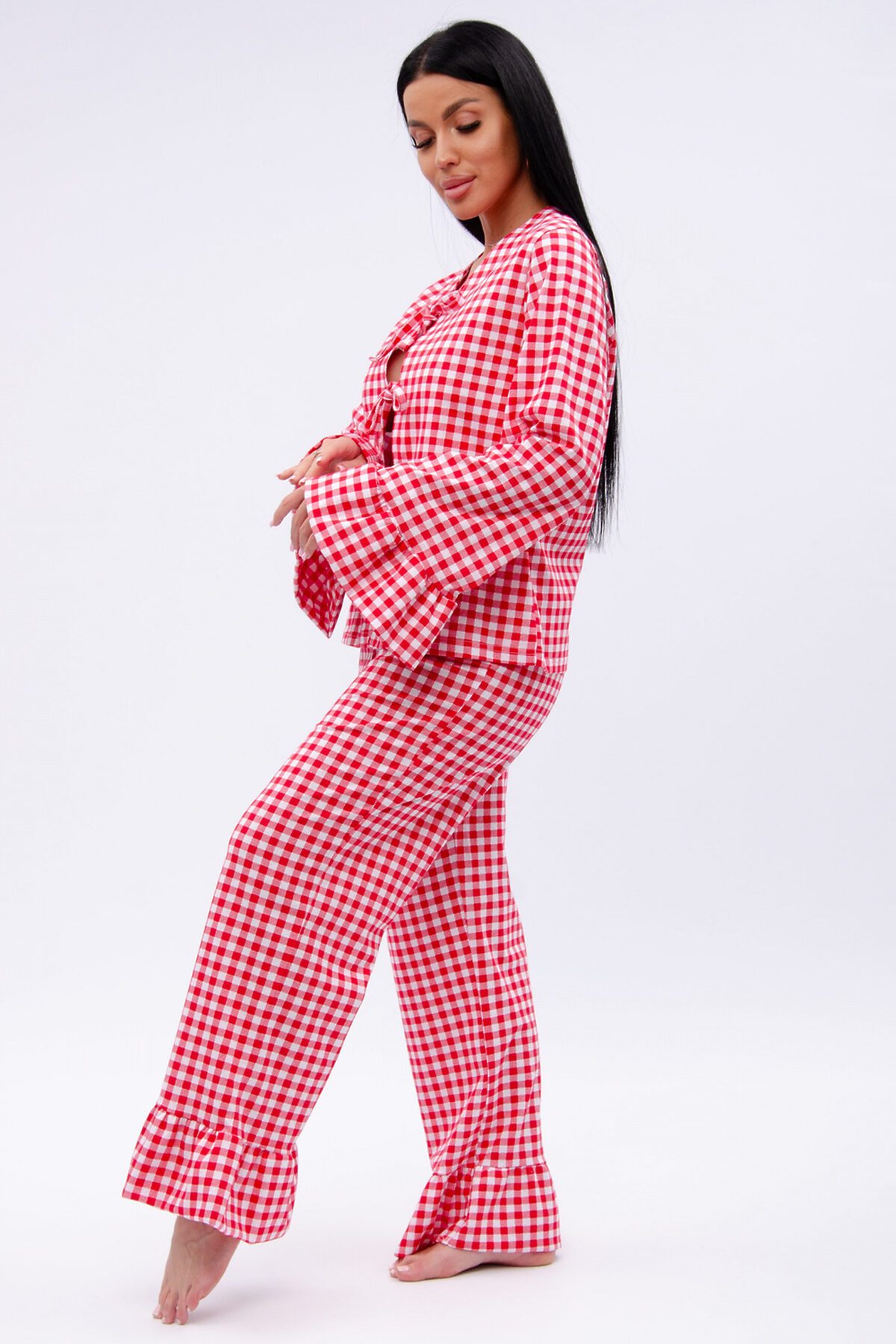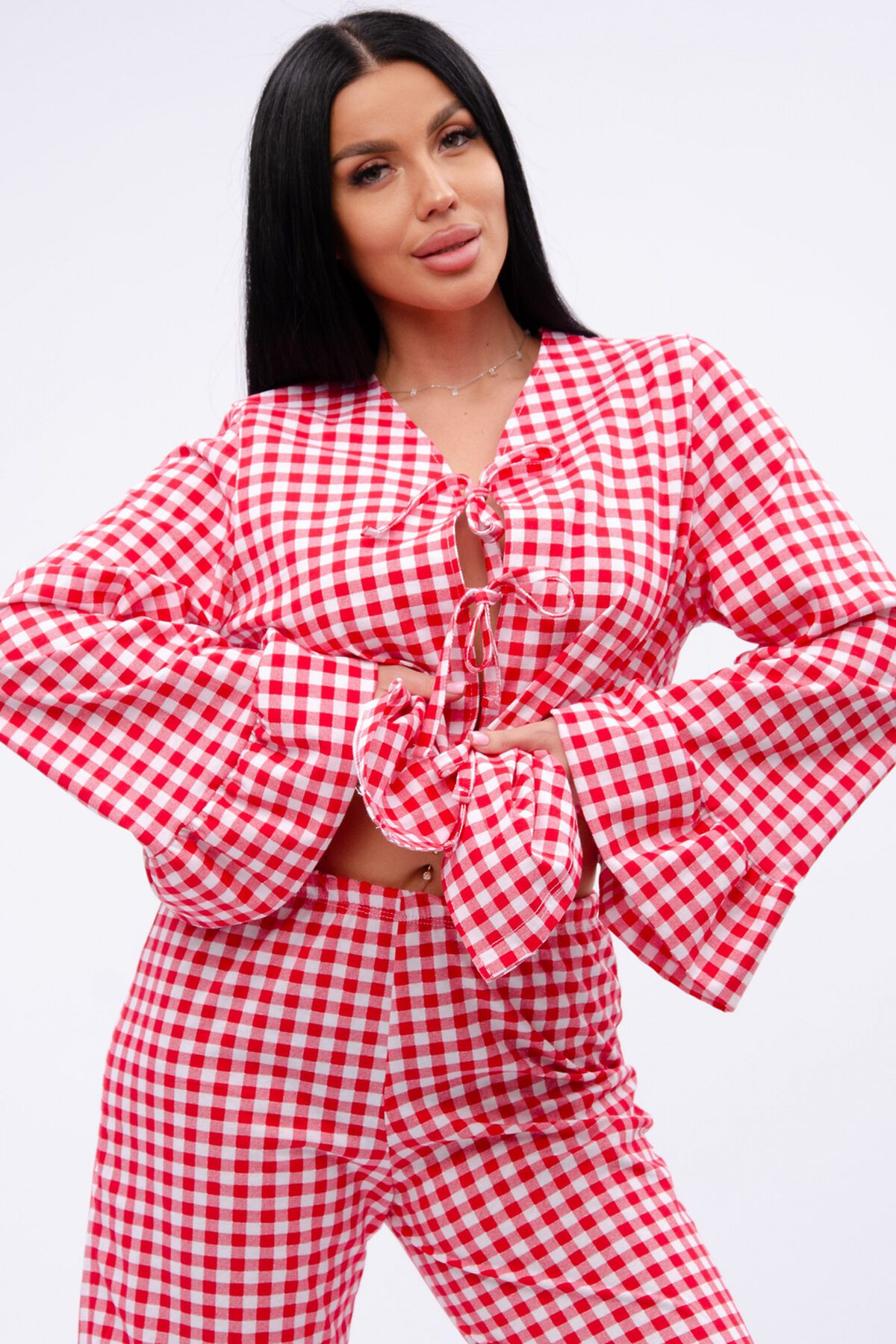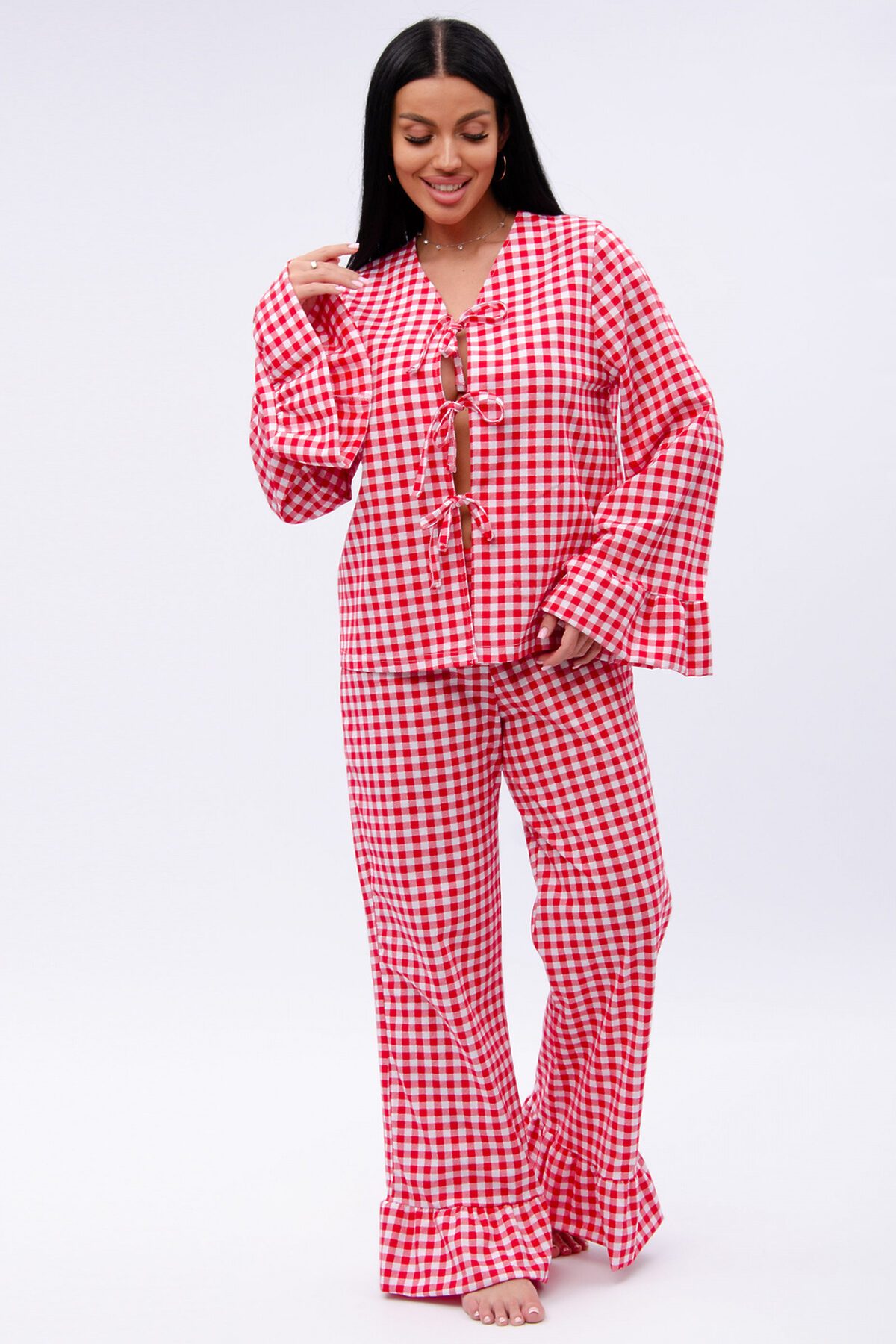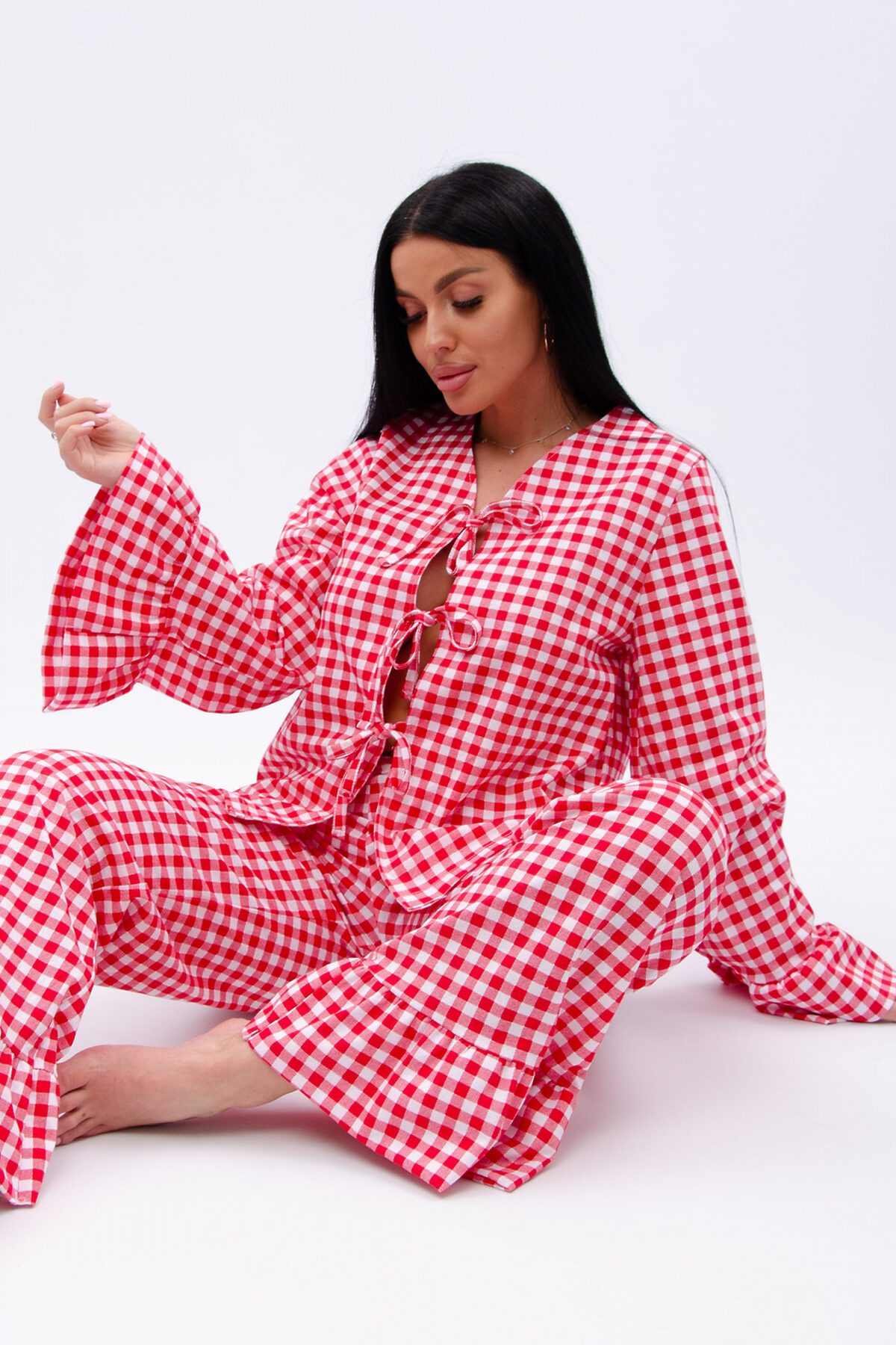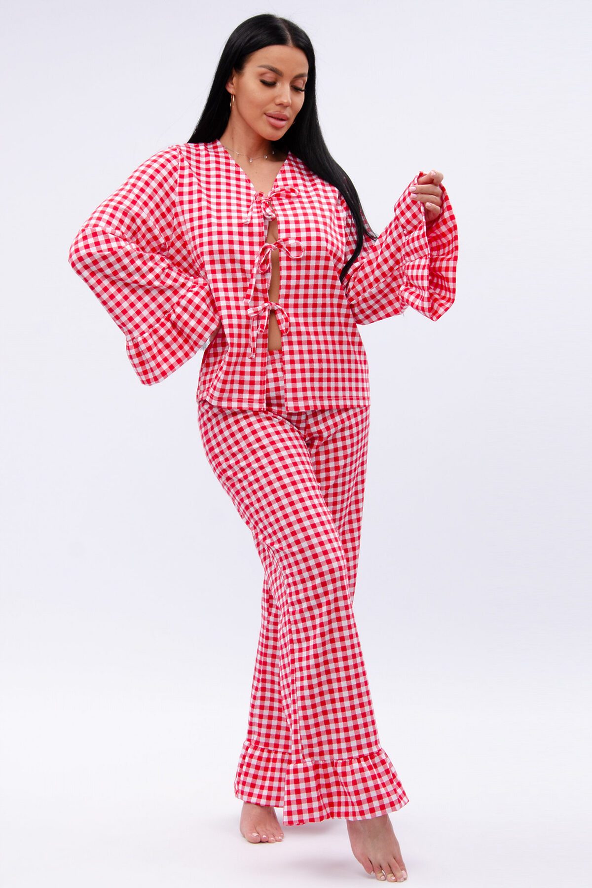 Создайте стильный и комфортный образ для уютных вечеров дома с этой красивой женской пижамой. Комплект состоит из рубашки с воланами и широкими брюками, выполненными из мягкого хлопка, что делает его подходящим выбором для приятного отдыха. Эта домашняя одежда не только удобна, но и обладает эстетической привлекательностью, добавляя нотку винтажной эстетики в гардероб. Пижама в клетку с завязками выглядит так, будто сошла с модных страниц Pinterest, и станет отличным выбором как для беременных женщин, так и для девушек ценящих стиль и удобство. Свободный покрой придает эффект оверсайз, позволяя вам чувствовать себя свободно и непринужденно, а красивые детали, такие как рюши и воланы, добавляют изюминку в ваш образ. Данная пижамка идеально подходит для фотосессий, благодаря своему милому и эстетичному дизайну. Вы сможете легко создать атмосферу уюта и красоты. Хлопковая ткань обеспечивает комфорт и легкость, а также хорошую воздухопроницаемость. Вы можете смело носить этот комплект в любое время года, чувствуя себя комфортно и стильно. Базовая клетчатая модель станет основой вашего домашнего гардероба, легко комбинируясь с другими вещами. Наслаждайтесь атмосферой уюта и стиля с этим пижамным набором, который идеально подойдет для всех, кто хочет выглядеть модно и чувствовать себя уютно в любое время суток. Погрузитесь в мир комфорта и винтажной эстетики с этой милой пижамкой, которая сделает вечера незабываемыми.