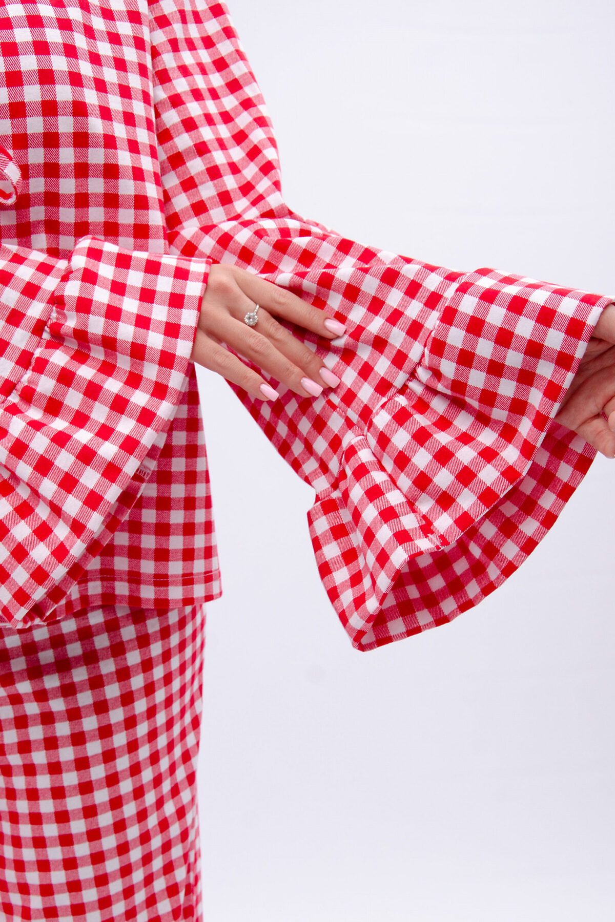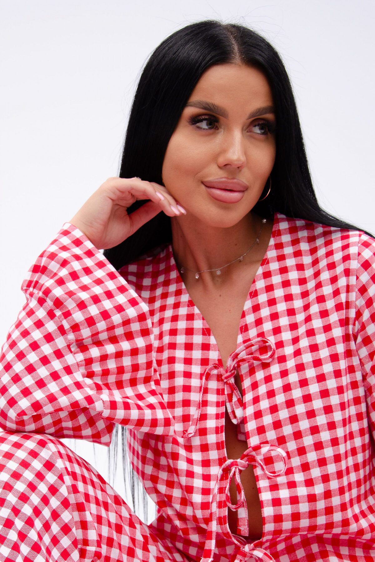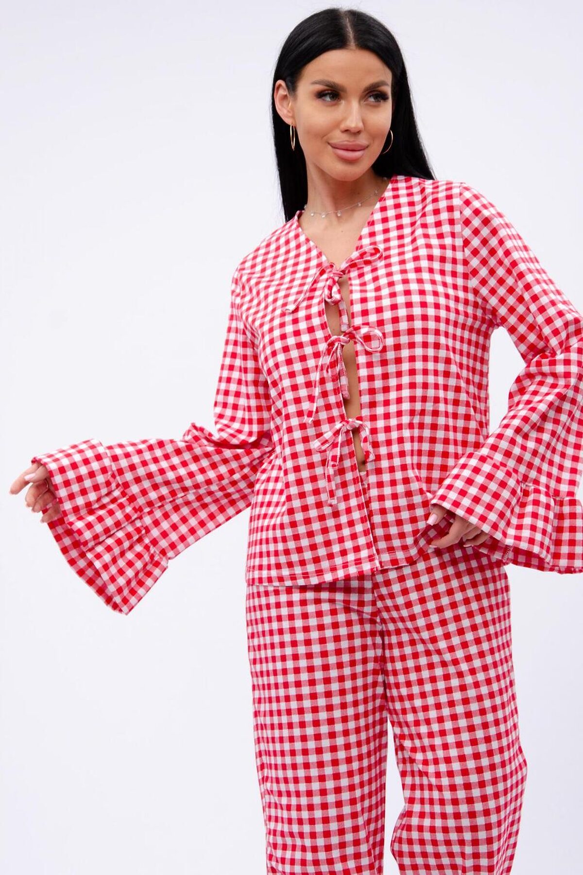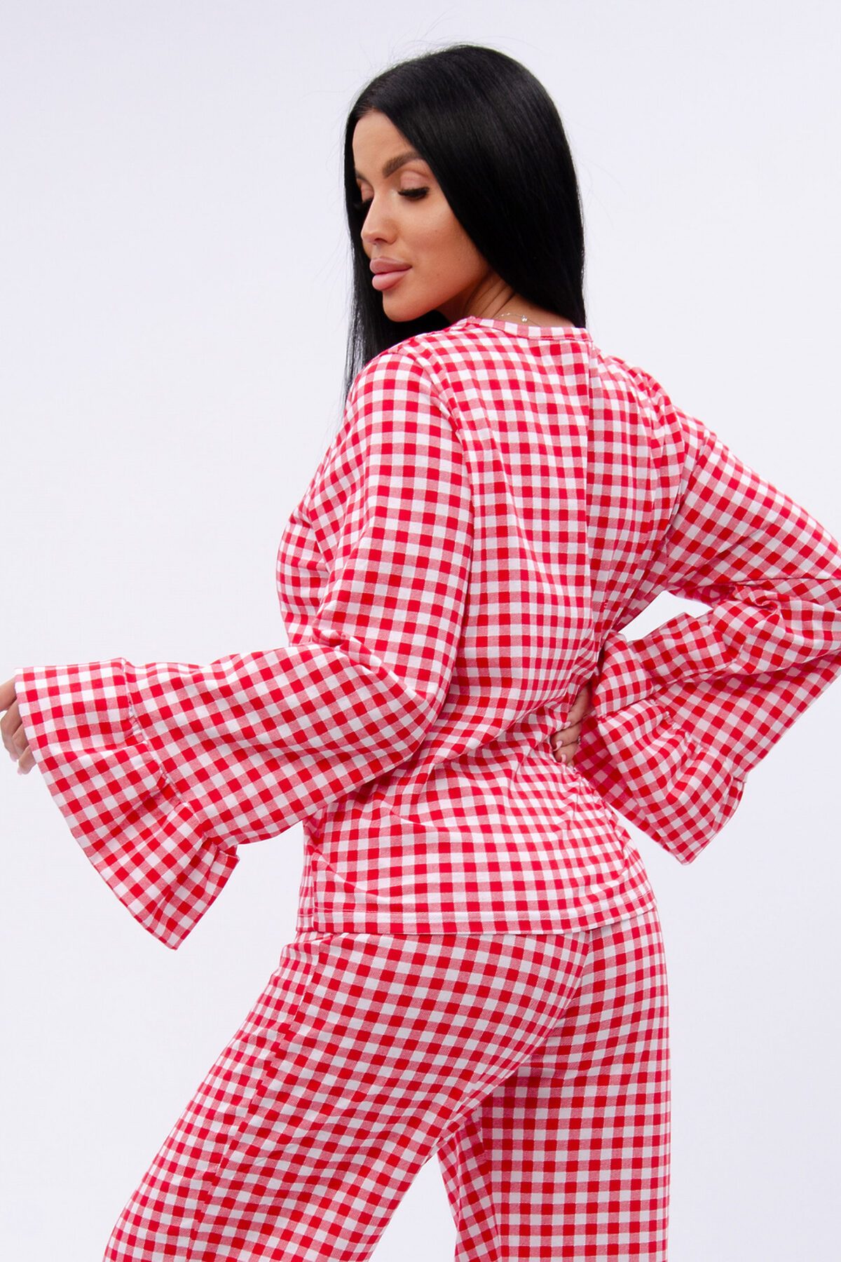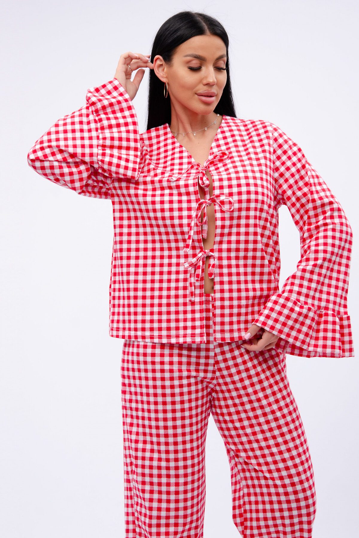 Создайте стильный и комфортный образ для уютных вечеров дома с этой красивой женской пижамой. Комплект состоит из рубашки с воланами и широкими брюками, выполненными из мягкого хлопка, что делает его подходящим выбором для приятного отдыха. Эта домашняя одежда не только удобна, но и обладает эстетической привлекательностью, добавляя нотку винтажной эстетики в гардероб. Пижама в клетку с завязками выглядит так, будто сошла с модных страниц Pinterest, и станет отличным выбором как для беременных женщин, так и для девушек ценящих стиль и удобство. Свободный покрой придает эффект оверсайз, позволяя вам чувствовать себя свободно и непринужденно, а красивые детали, такие как рюши и воланы, добавляют изюминку в ваш образ. Данная пижамка идеально подходит для фотосессий, благодаря своему милому и эстетичному дизайну. Вы сможете легко создать атмосферу уюта и красоты. Хлопковая ткань обеспечивает комфорт и легкость, а также хорошую воздухопроницаемость. Вы можете смело носить этот комплект в любое время года, чувствуя себя комфортно и стильно. Базовая клетчатая модель станет основой вашего домашнего гардероба, легко комбинируясь с другими вещами. Наслаждайтесь атмосферой уюта и стиля с этим пижамным набором, который идеально подойдет для всех, кто хочет выглядеть модно и чувствовать себя уютно в любое время суток. Погрузитесь в мир комфорта и винтажной эстетики с этой милой пижамкой, которая сделает вечера незабываемыми.