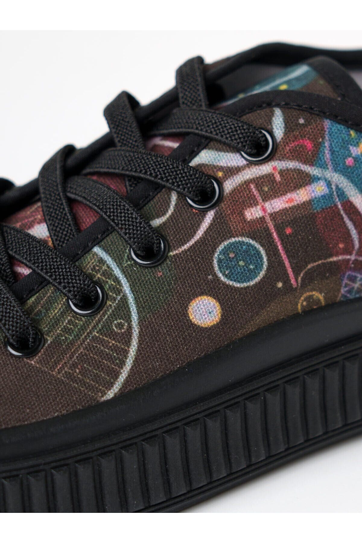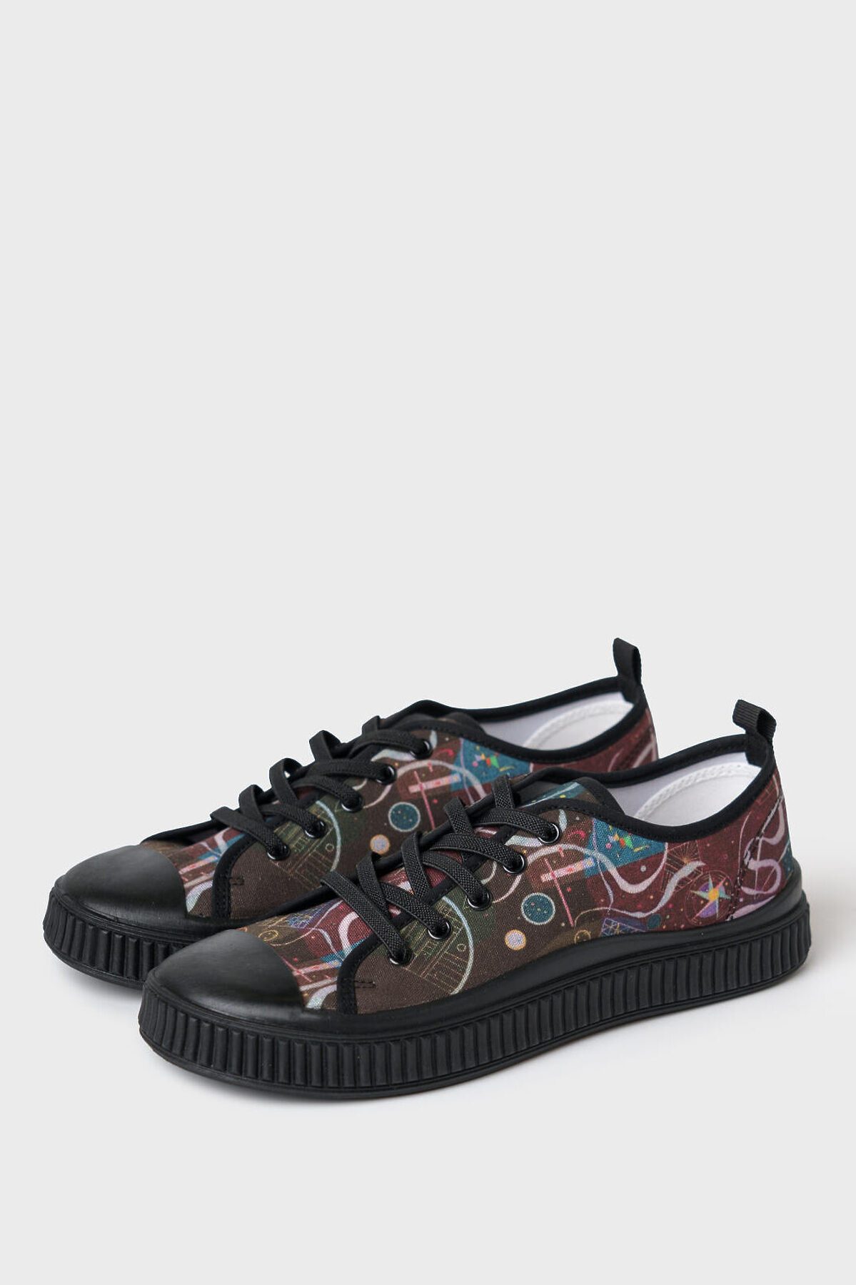 Текстильные кеды для девочки подростка из коллаборации с Третьяковской галереей. Принт - фрагмент картины Василия Кандинского, Движение, 1935. Резиновые шнурки удобны при обувании. Кеды имеют текстильную подкладку с высоким содержанием хлопка 90%. Съемная хлопковая стелька. Подошва выполнена из легкого и гибкого ПВХ и имеет защиту носочной части.