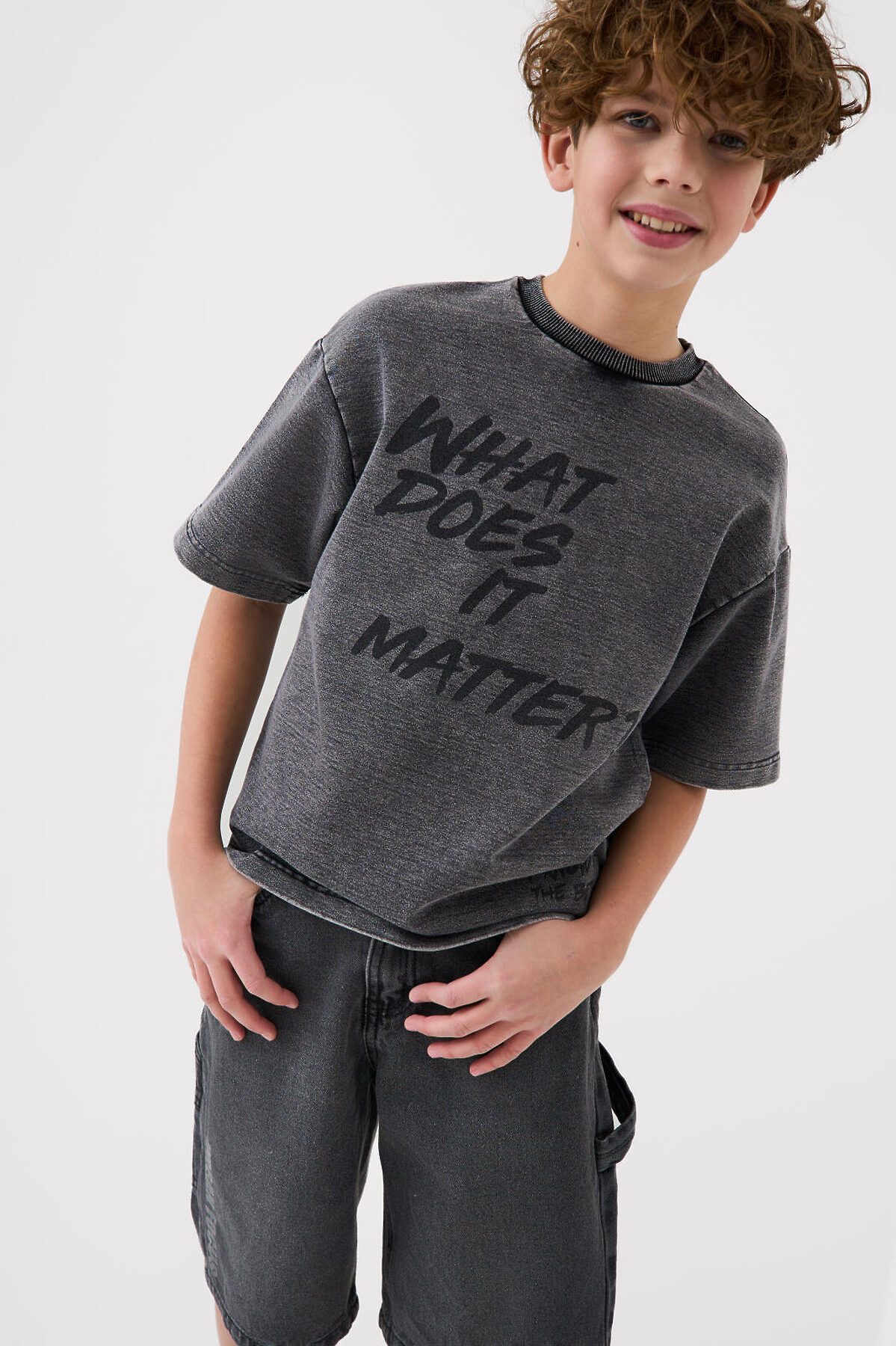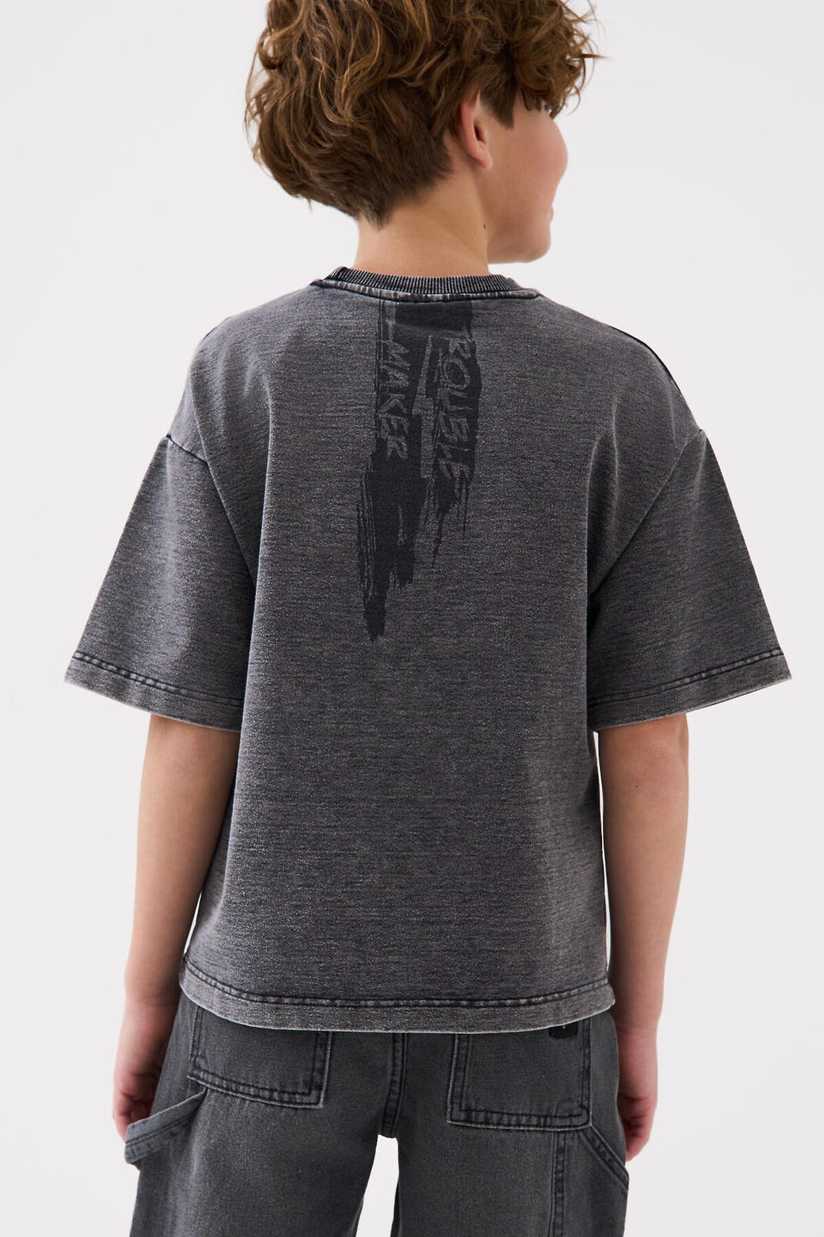 Футболка оверсайз для мальчика подростка. Модель выполнена из эластичного хлопкового трикотажа джерси. Спереди и по спинке расположен крупный принт. Горловина круглая, обработана эластичным рибом.