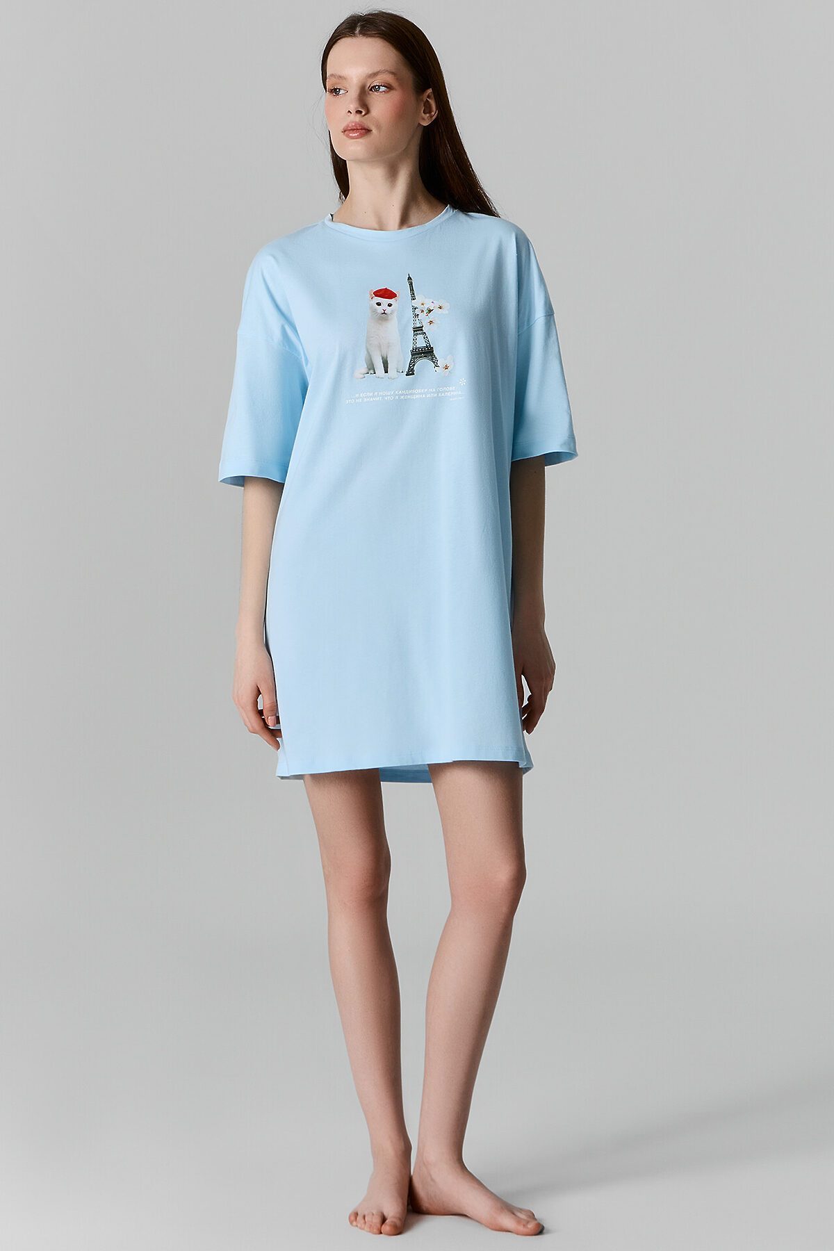 Очаровательная женская туника станет идеальным дополнением ваших домашних образов. Она прекрасно сидит по фигуре и не стесняет движений, обеспечивая максимальный комфорт. Короткие рукава со спущенной линией плеча и круглая горловина придают модели легкость. Изделие выполнено из мягкого и дышащего материала, который не сковывает движений и обеспечивает ощущение свободы. Деликатные швы абсолютно не чувствуются на коже, что добавляет дополнительное удобство. Эта туника идеально подходит для занятий домашними делами, отдыха и сна. В линейке представлены интересные базовые цвета, а широкий размерный ряд позволяет каждой женщине найти подходящий вариант. Рекомендуем!