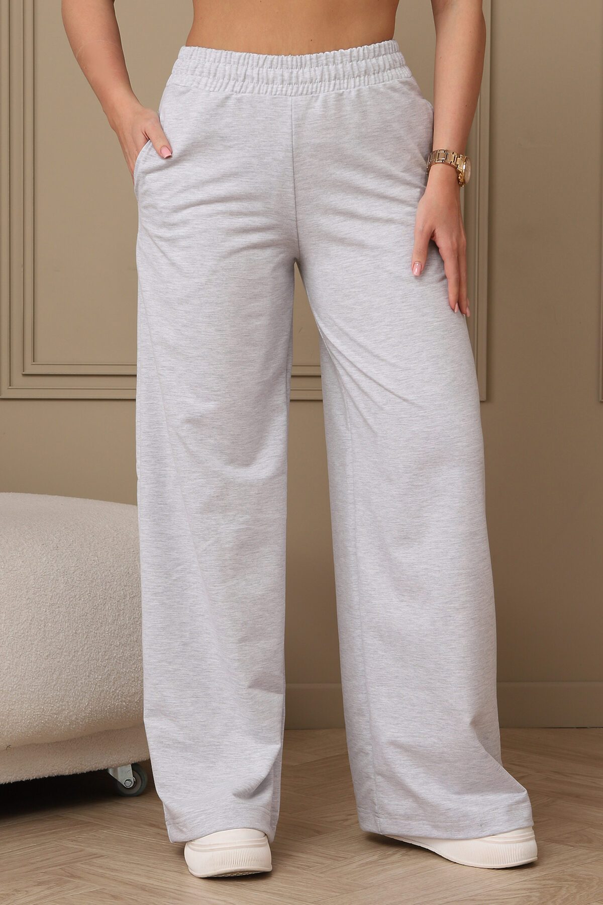 Широкие трикотажные брюки палаццо на резинке, идеальное сочетание комфорта и стиля. Брюки подходят для любого случая - от офиса до прогулок. Классический крой и однотонный цвет легко сочетаются с любым верхом. Высокая посадка подчеркивает талию и создает стройный силуэт. Свободный крой брюк палаццо обеспечивает максимальный комфорт и свободу движений. Ткань приятная к телу, хорошо тянется и не мнется. Сочетайте брюки палаццо с блузками, топами, футболками и свитерами.