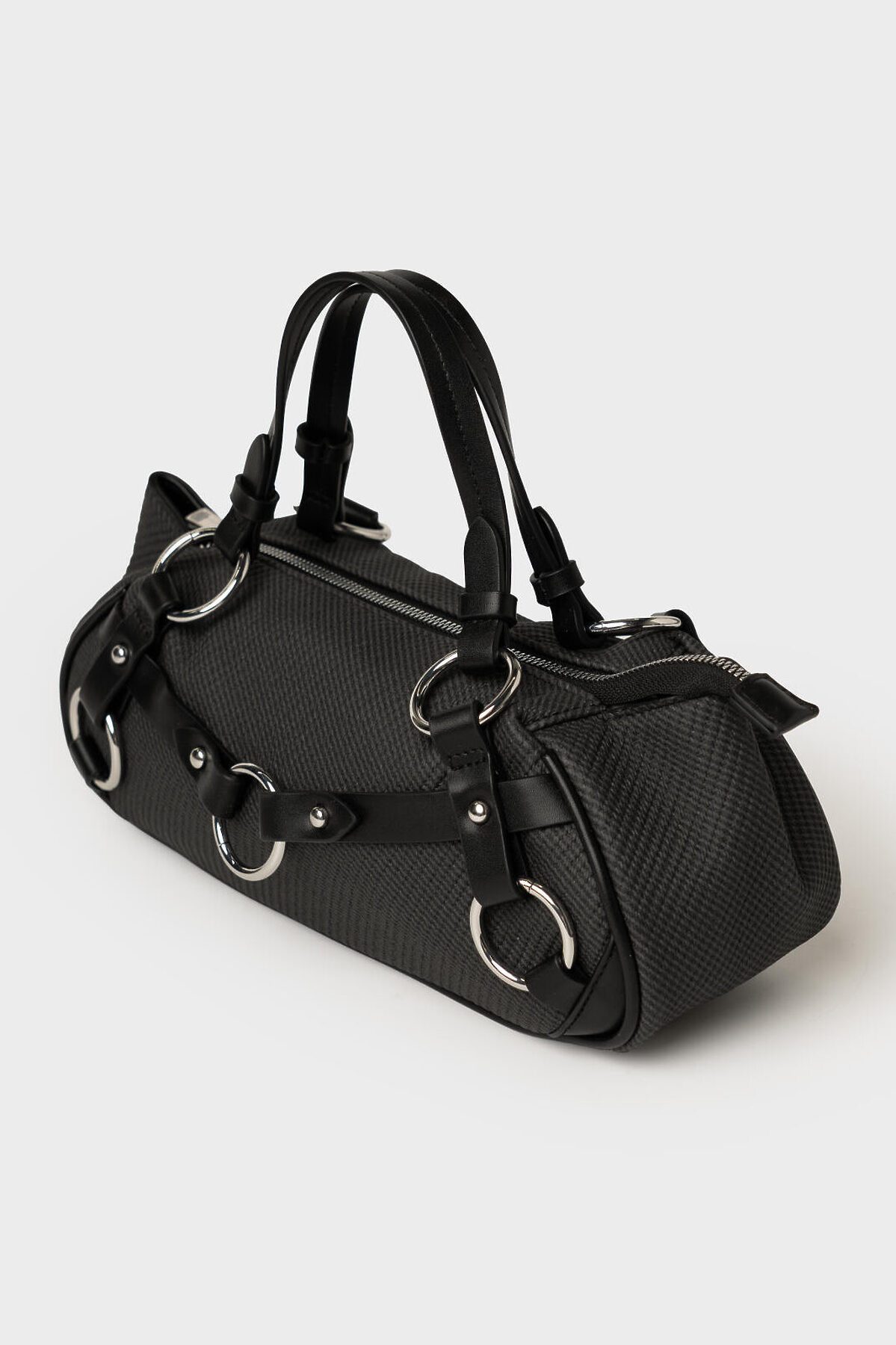 Трендовая сумка вытянутой формы для девочки-подростка. Сумка выполнена из фактурной искусственной кожи и отделана ремнями с металлической фурнитурой. Сумка имеет одно отделение на молнии. Внутри два кармана: на молнии и без. Сумку можно носить на плече на коротких ручках или использовать длинный регулируемый плечевой ремень. Параметры сумки: высота - 12 см, ширина - 30 см, глубина - 11 см. В подарок идет брендированный пыльник