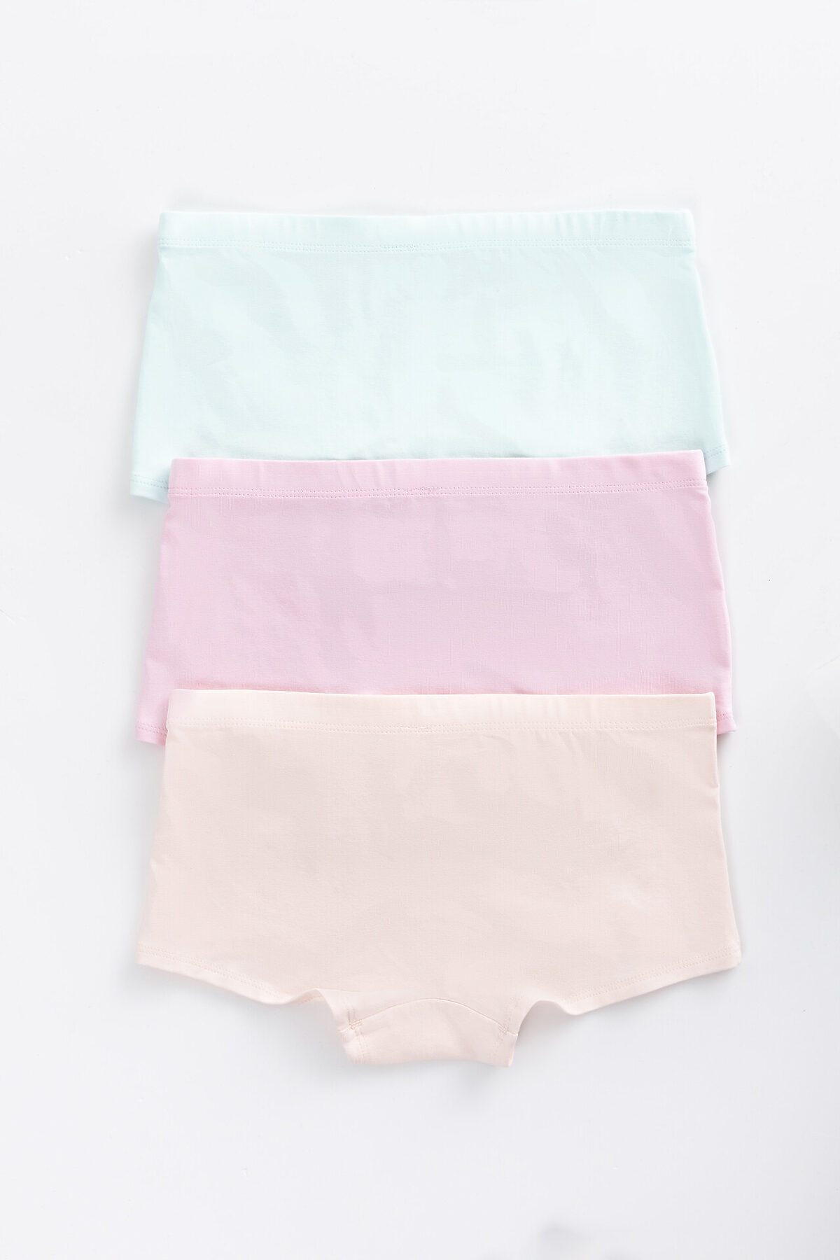 Трусы для девочек «шорты-боксеры» изготовлены из двух половинок с притачной ластовицей. Верхний срез трусов обработан швом в подгибку на 2х игольной плоскошовной машине с внутренней эластичной тесьмой 20мм, 20RV. Нижние срезы трусов обработаны на 2х игольной плоскошовной машине.