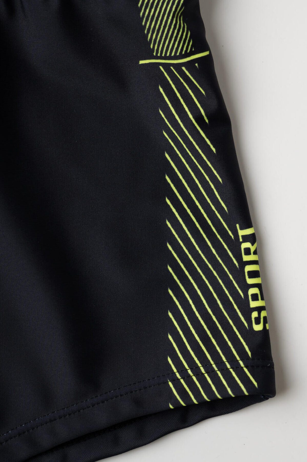 Плавки-шорты короткие, прилегающего силуэта для мальчика подростка. Изготовлены из эластичного трикотажа, с подкладкой для большего комфорта. Ткань устойчива к солнцу и солёной воде, благодаря UF-защите сохраняет насыщенность цвета и структуру волокон. В поясе — удобная резинка и регулируемый шнурок. Спереди — яркий принт.