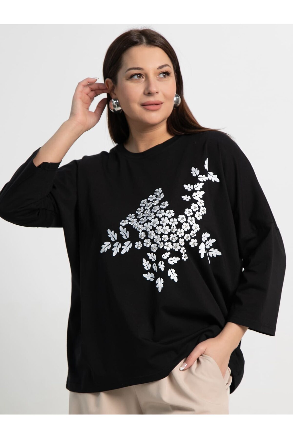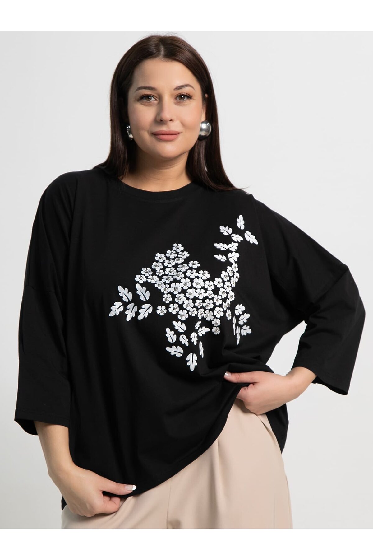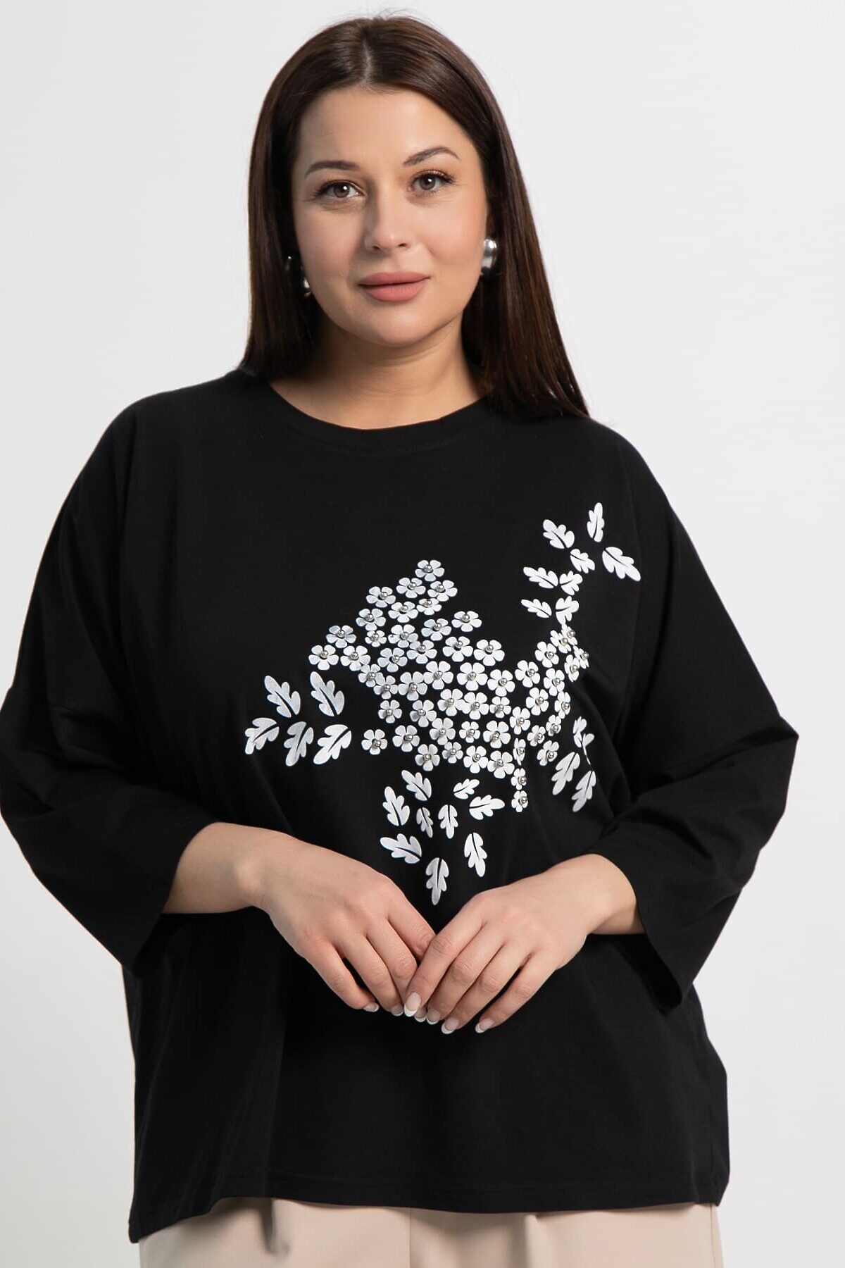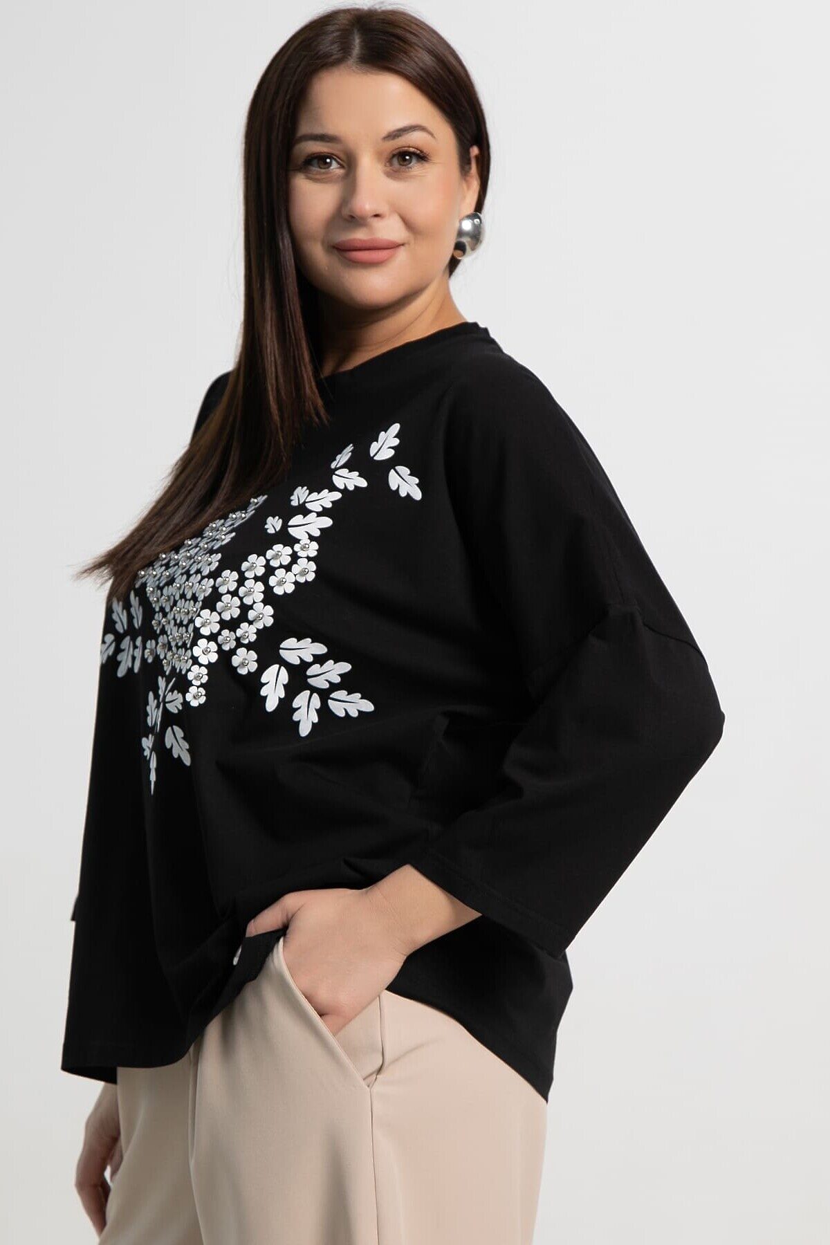 Летняя блуза, выполненная из мягкого и приятного к телу трикотажа, станет вашим фаворитом в летнем гардеробе. Свободный силуэт обеспечивает комфорт и легкость движений, а изысканный декор добавляет нотку шарма. Классическая округлая горловина, аккуратно окантованная обтачкой. Плечо спущено, рукав длиной 3/4. Эта блуза идеально подойдет для создания стильных повседневных и расслабленных образов. Носите ее с джинсами, шортами или легкими брюками, чтобы подчеркнуть свою индивидуальность и насладиться комфортом в летние дни.