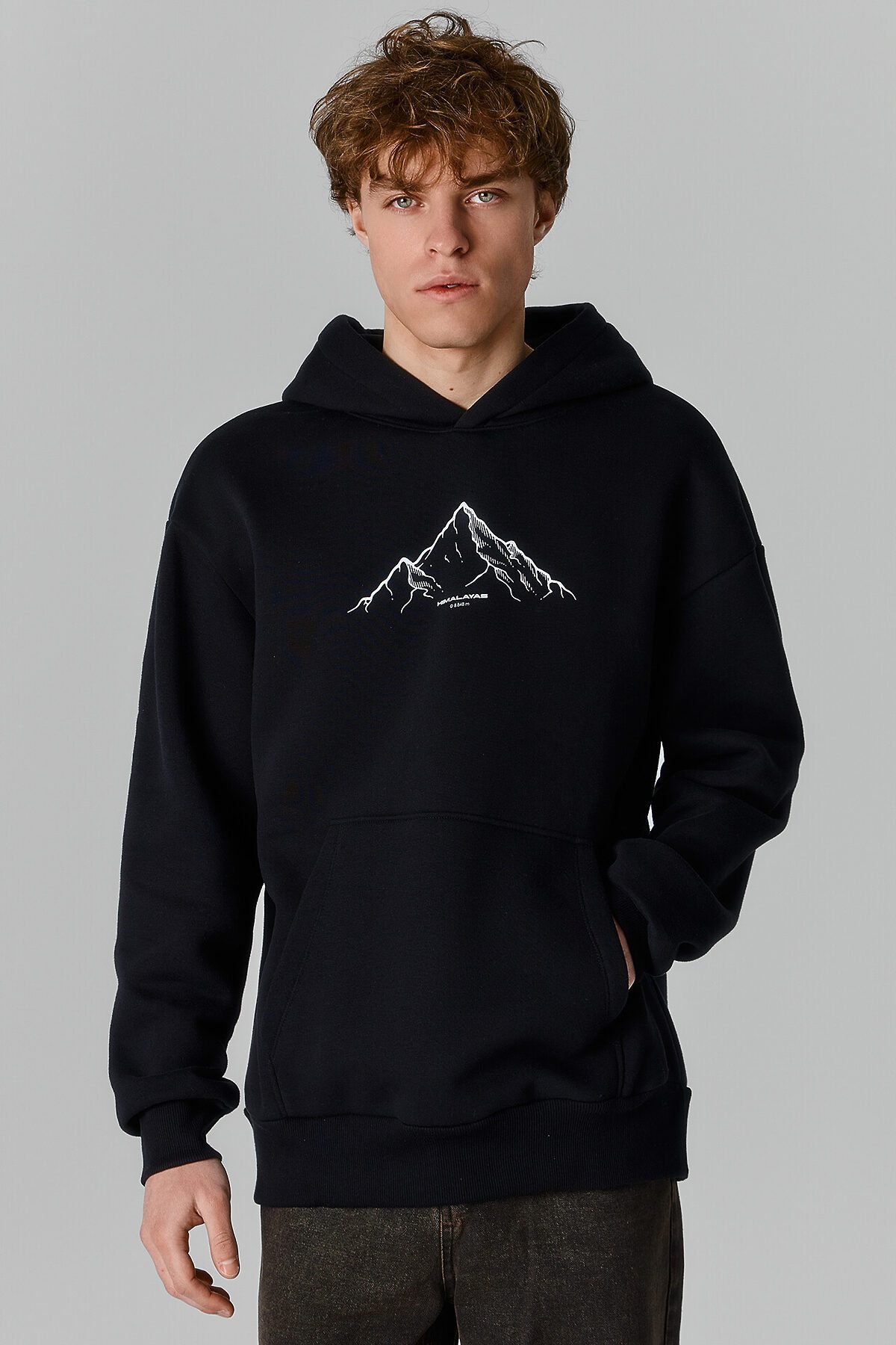 Мужское худи свободного кроя – стильная и практичная вещь для повседневной носки. Мужское худи с капюшоном выполнено из плотного трикотажного футера с мягким подчесом, который отлично сохраняет тепло. Свободный силуэт со спущенным плечом и удлиненной спинкой обеспечивает комфорт в движении, а эластичные манжеты и пояс из рибаны помогают добиться идеальной посадки.