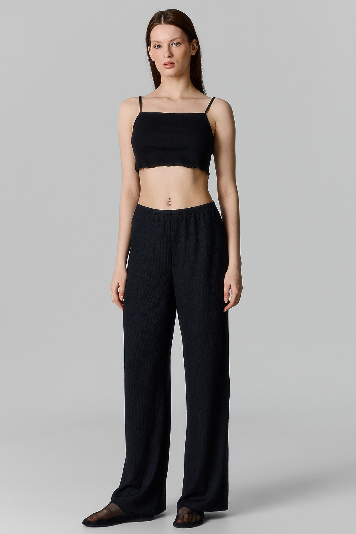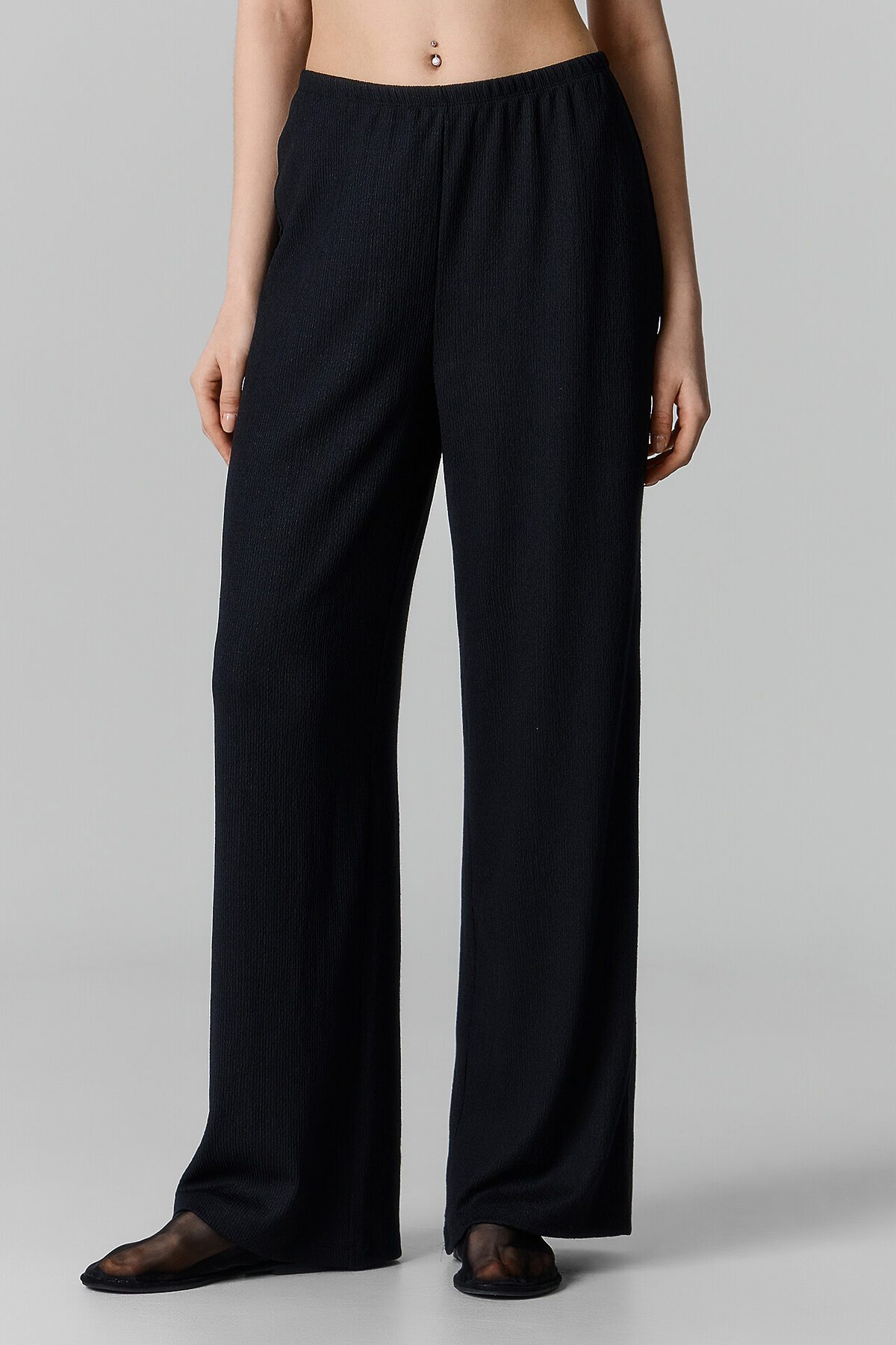 Эти женские прямые брюки — безупречное сочетание комфорта и элегантности! Свободный силуэт и средняя посадка обеспечивают удобную посадку, а эластичная талия адаптируется к фигуре, гарантируя максимальное удобство. Благодаря фактурному материалу с эластичными искусственными волокнами модель хорошо тянется, оставаясь легкой и приятной на ощупь. Нижний срез аккуратно обработан швом вподгибку, что повышает долговечность изделия. Этот стильный вариант идеально подходит для создания универсальных образов. Дополните брюки подходящим топом из этой же коллекции — и получите гармоничный и продуманный комплект, который подчеркнет ваш стиль и индивидуальность! Прекрасный выбор для тех, кто ценит удобство и актуальный дизайн.