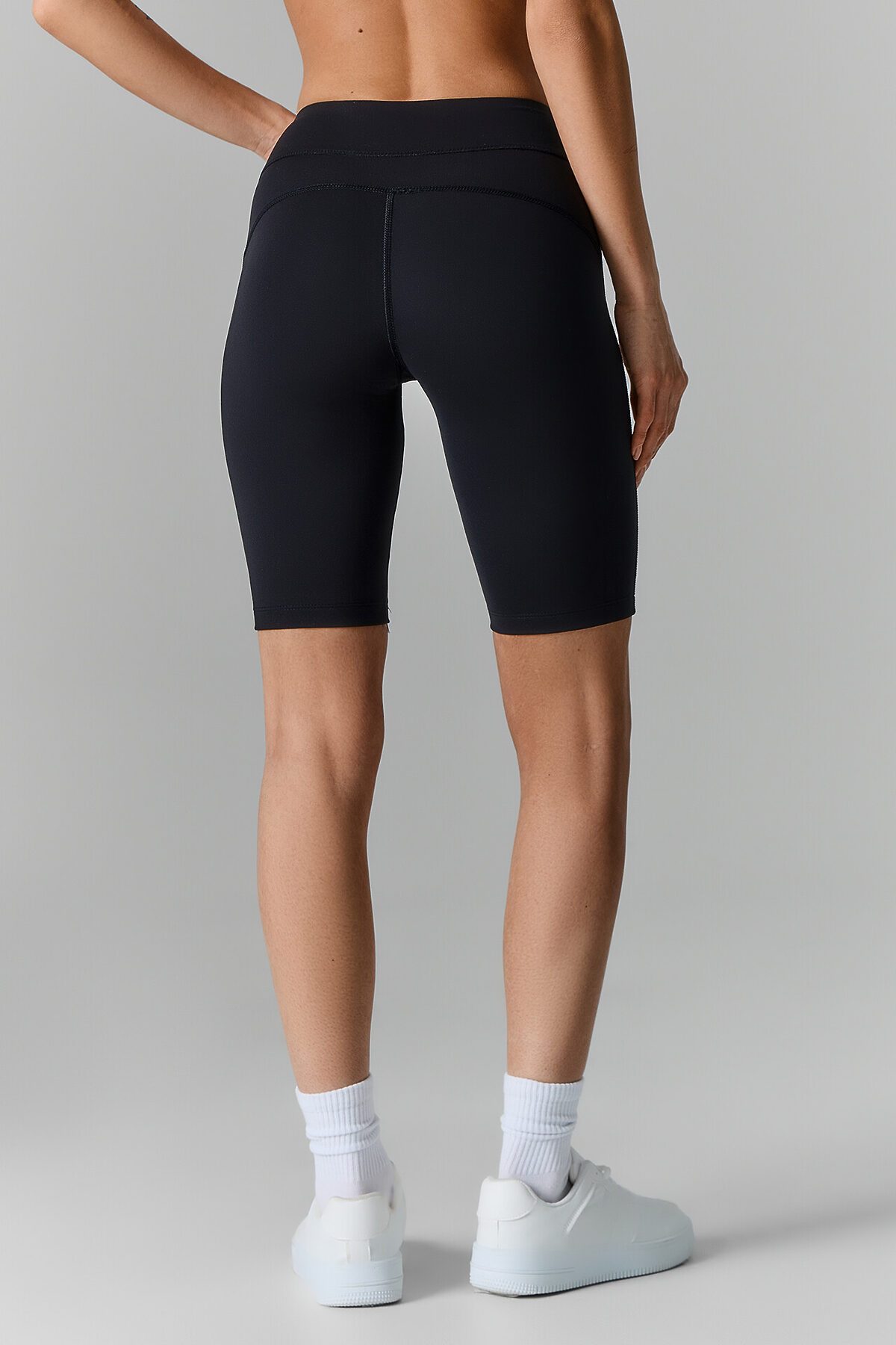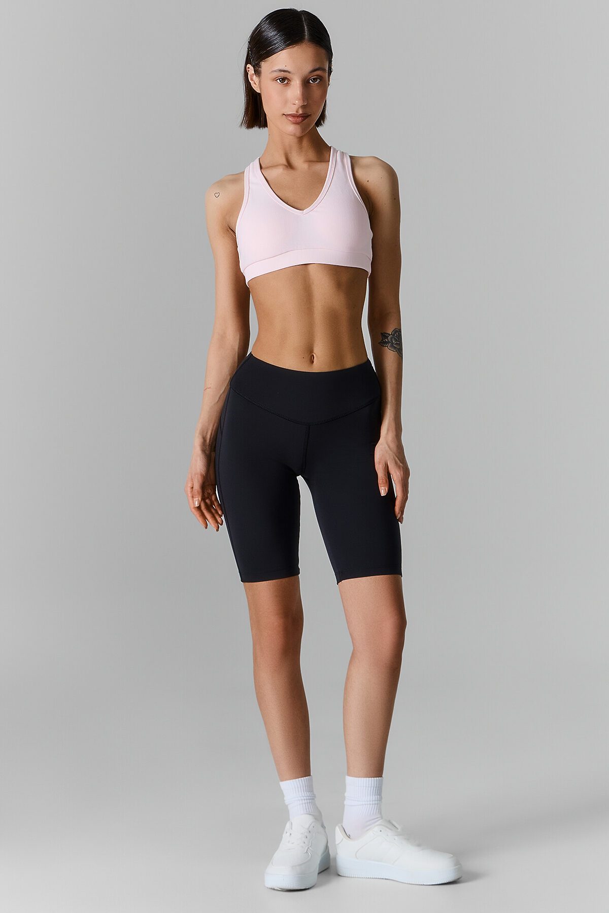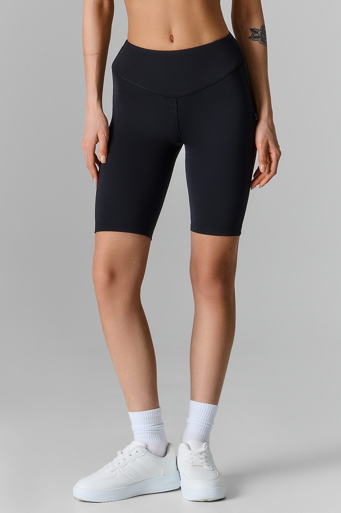 Шорты женские прилегающего силуэта. Пояс отрезной из основного полотна, с эластичной тесьмой внутри 10RV. По попе кокетка. Длина чуть выше колена.