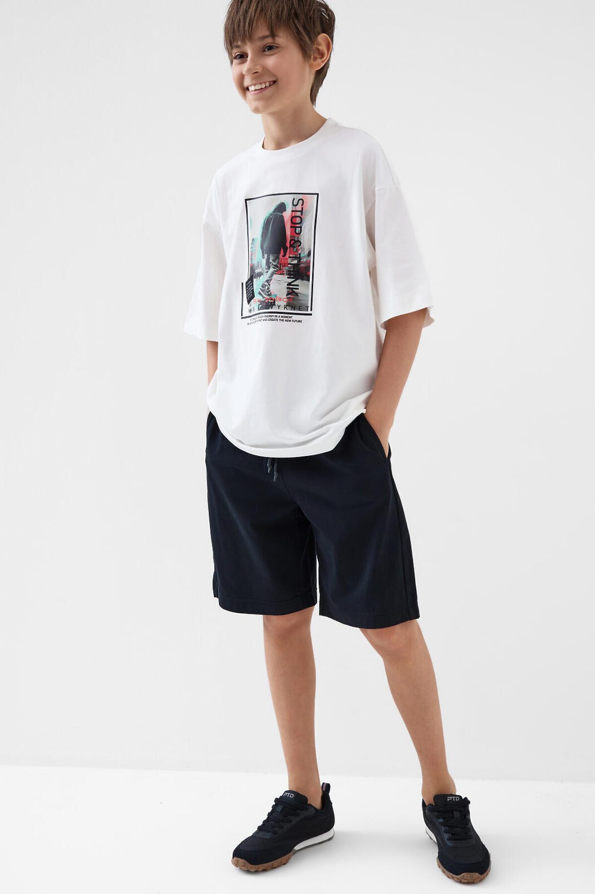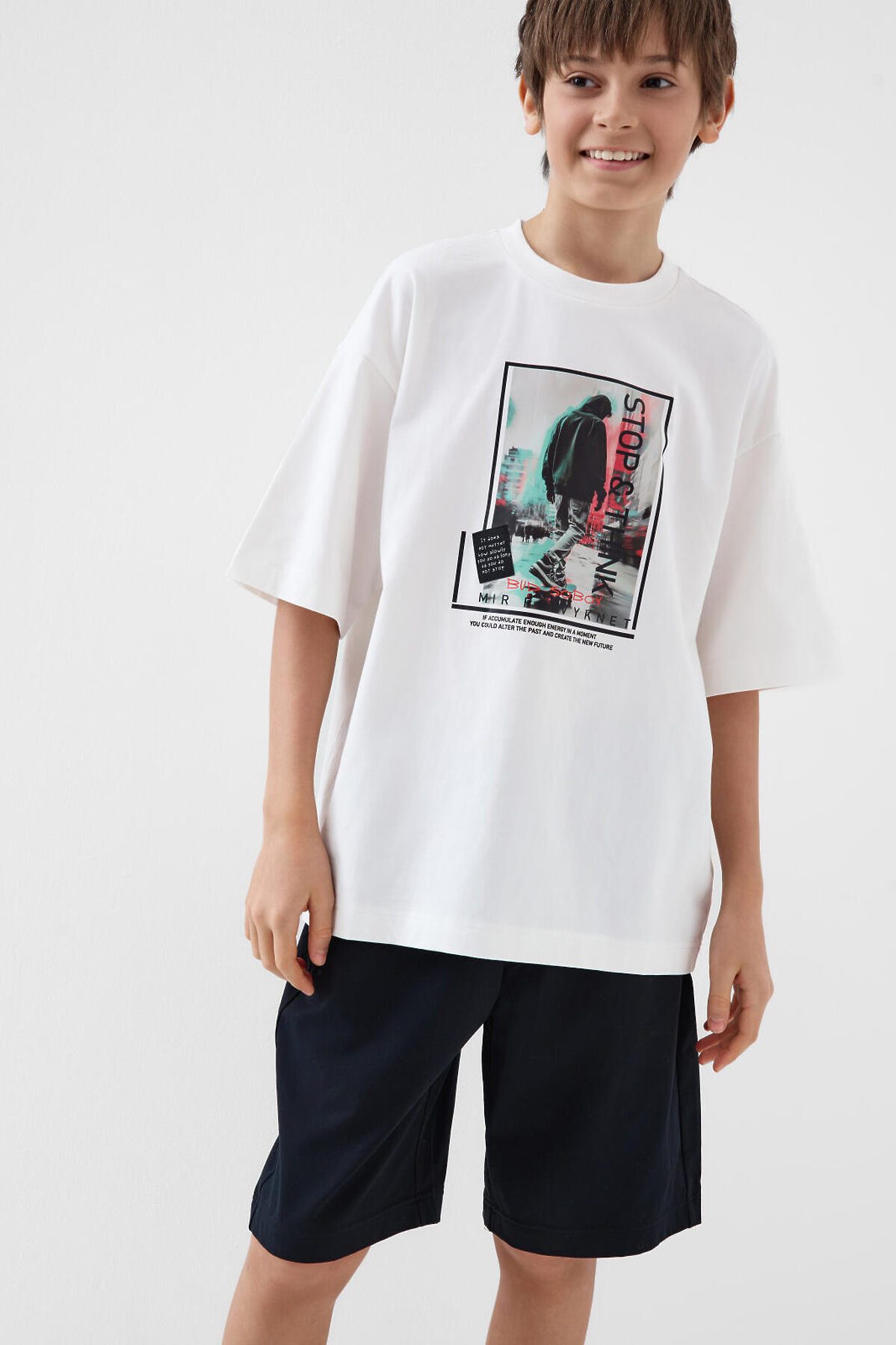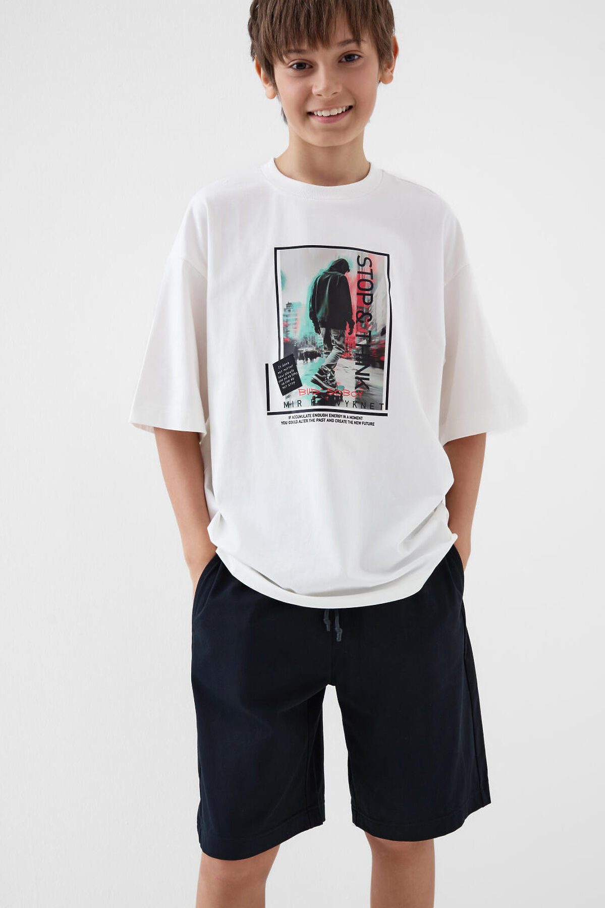 Трикотажный комплект состоит из оверсайз футболки и удлинённых шорт. Футболка свободного кроя с принтом. Шорты на резинке со шнурком. Боковые карманы. Комплект выполнен из мягкого трикотажа джерси с высоким содержание хлопка, подходит для активного отдыха и повседневной носки.
