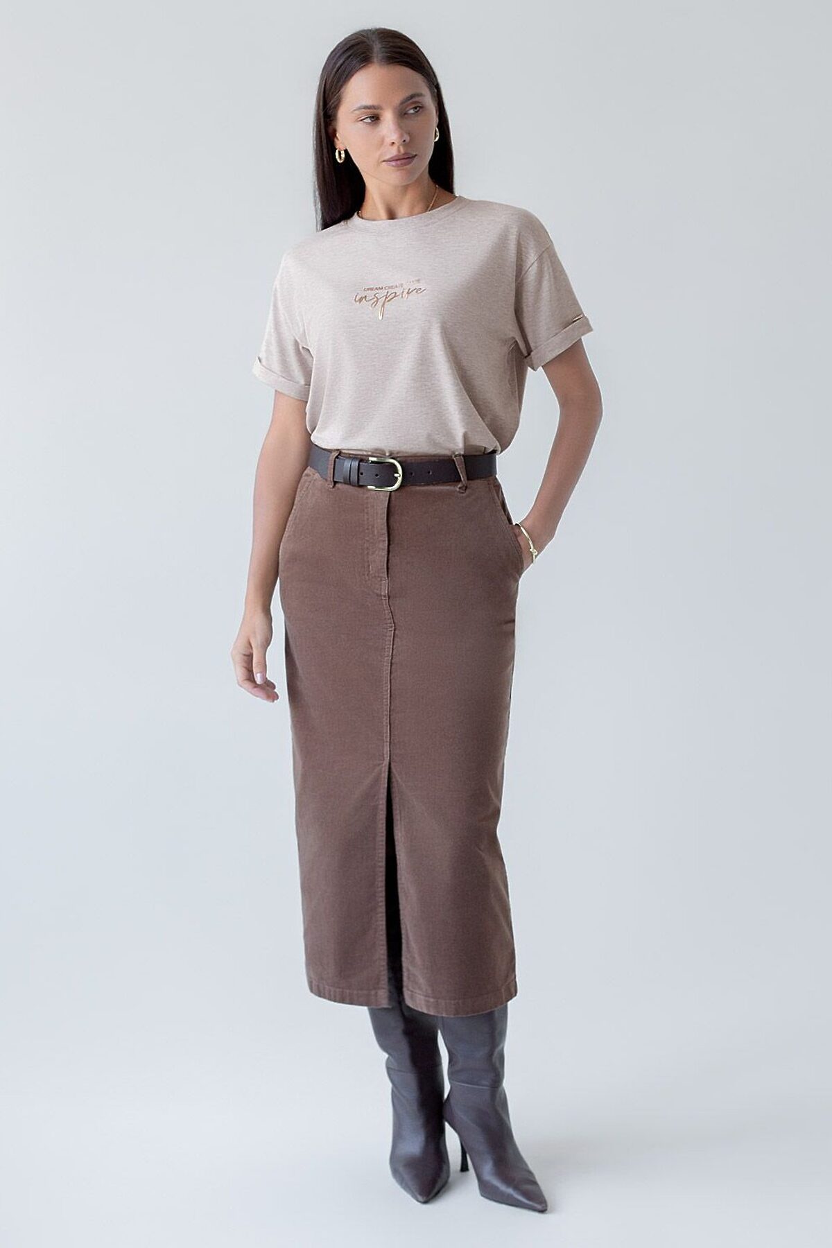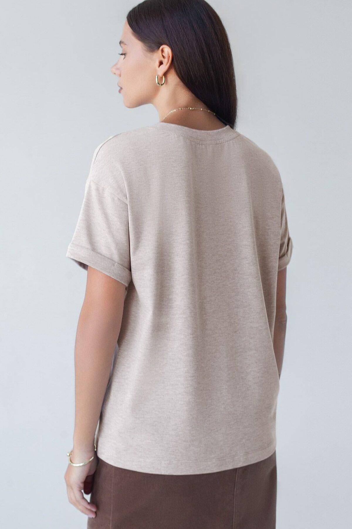 Футболка из премиального хлопка с авторским принтом VILATTE, кофейный меланж_inspire