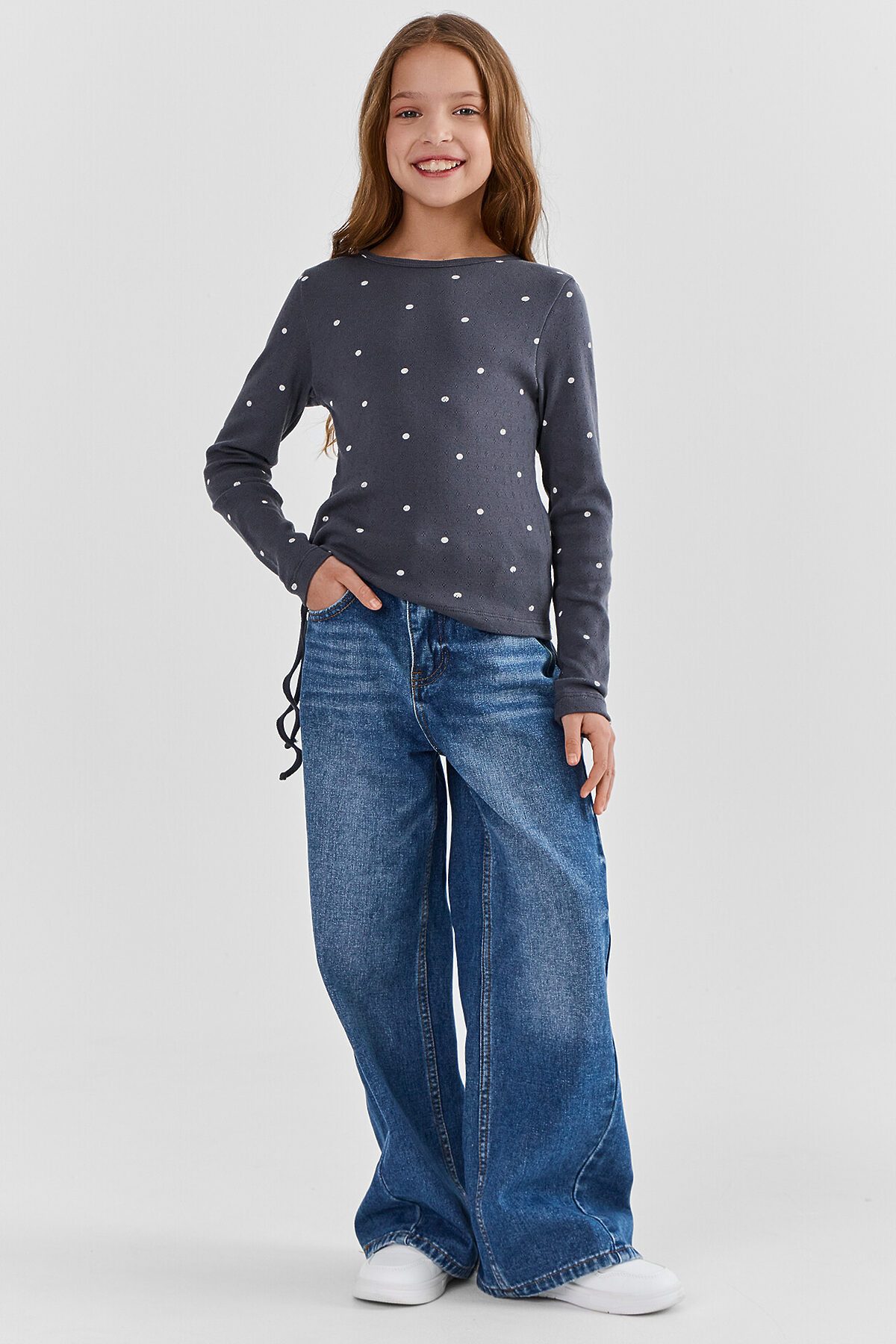 Джемпер для девочек MARK FORMELLE, горошек на графитовом