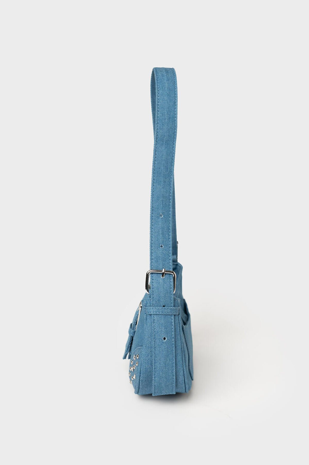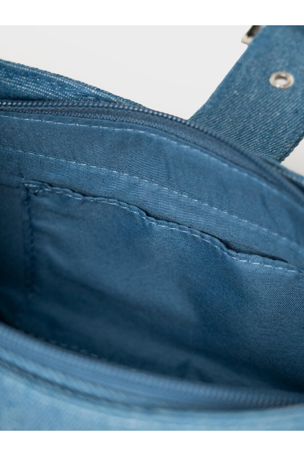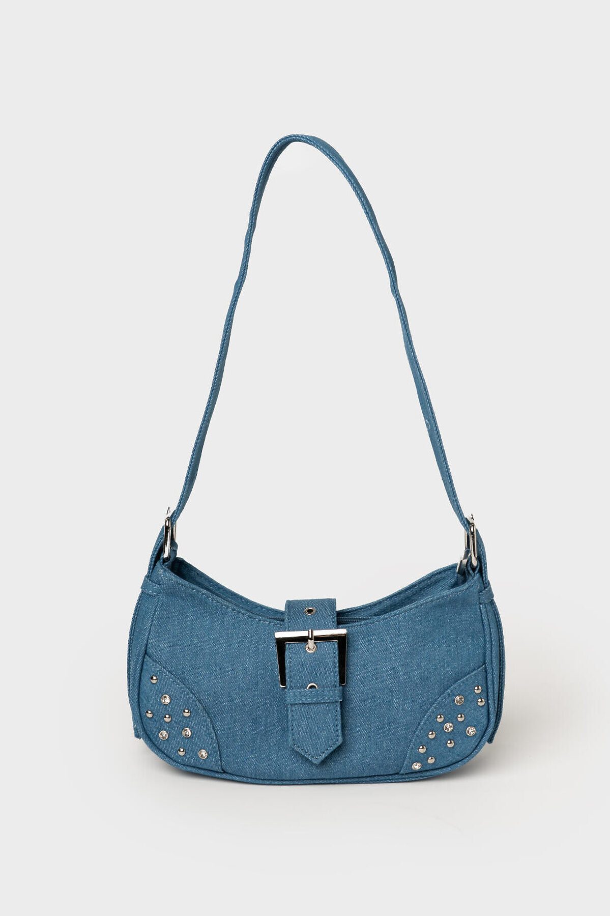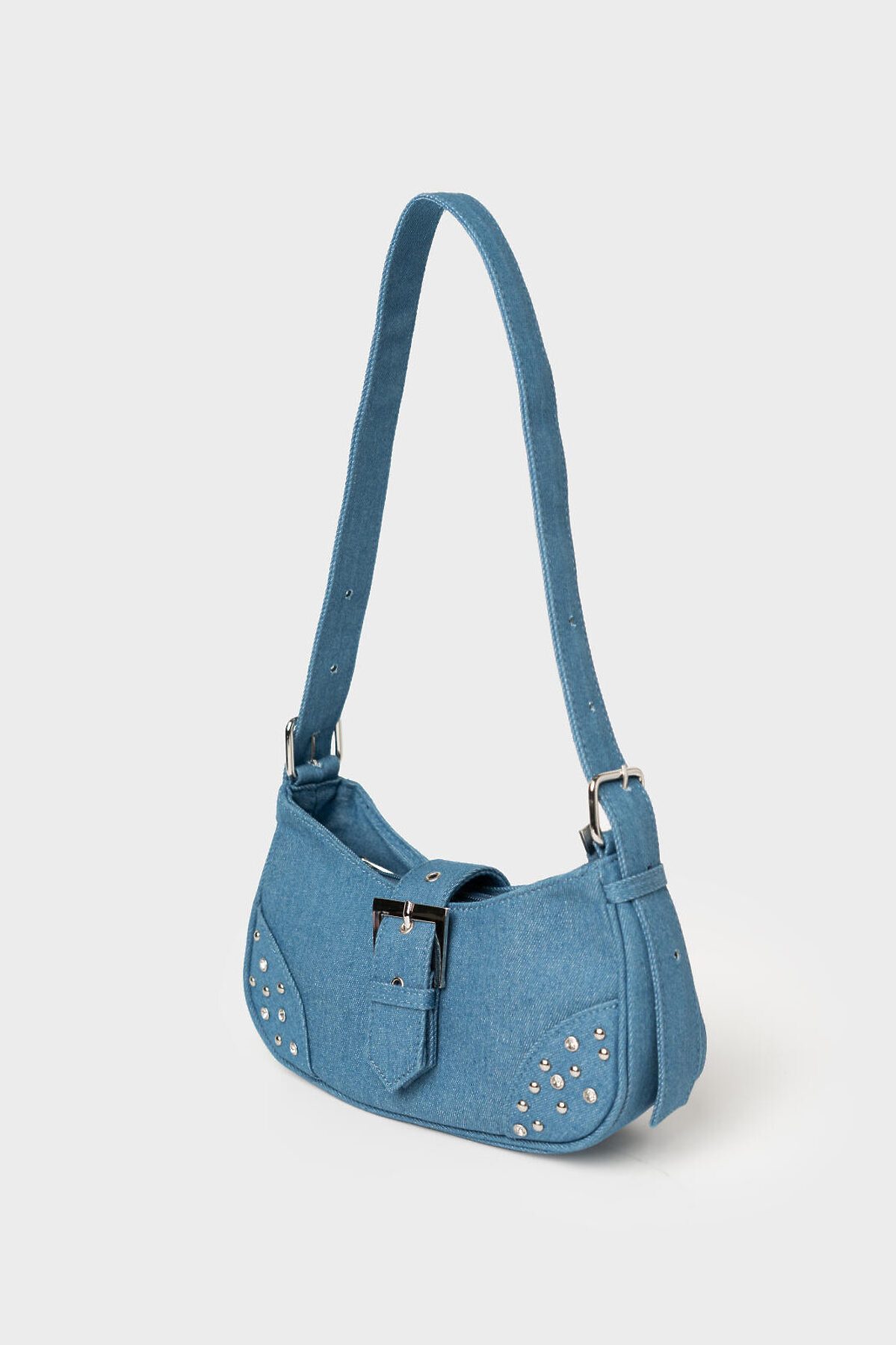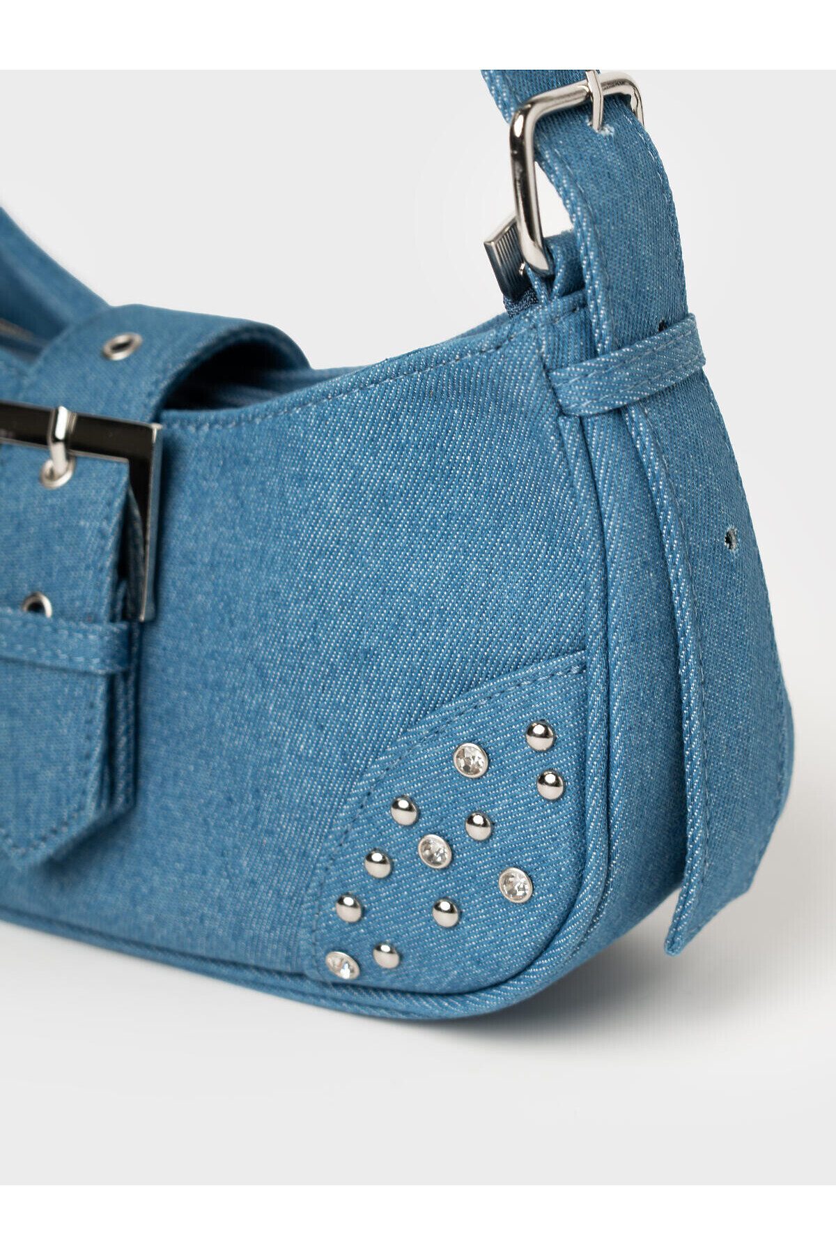 Сумка из джинсы с ремнем на плечо. Ремень регулируется по длине. Сумка декорирована стразами. Идеально сочетается с сандалиями типа биркеншток из коллекции из этого же материала. Основное отделение на молнии, внутри есть карман для телефона. Параметры сумки: высота - 12 см, ширина -27 см, глубина - 7 см