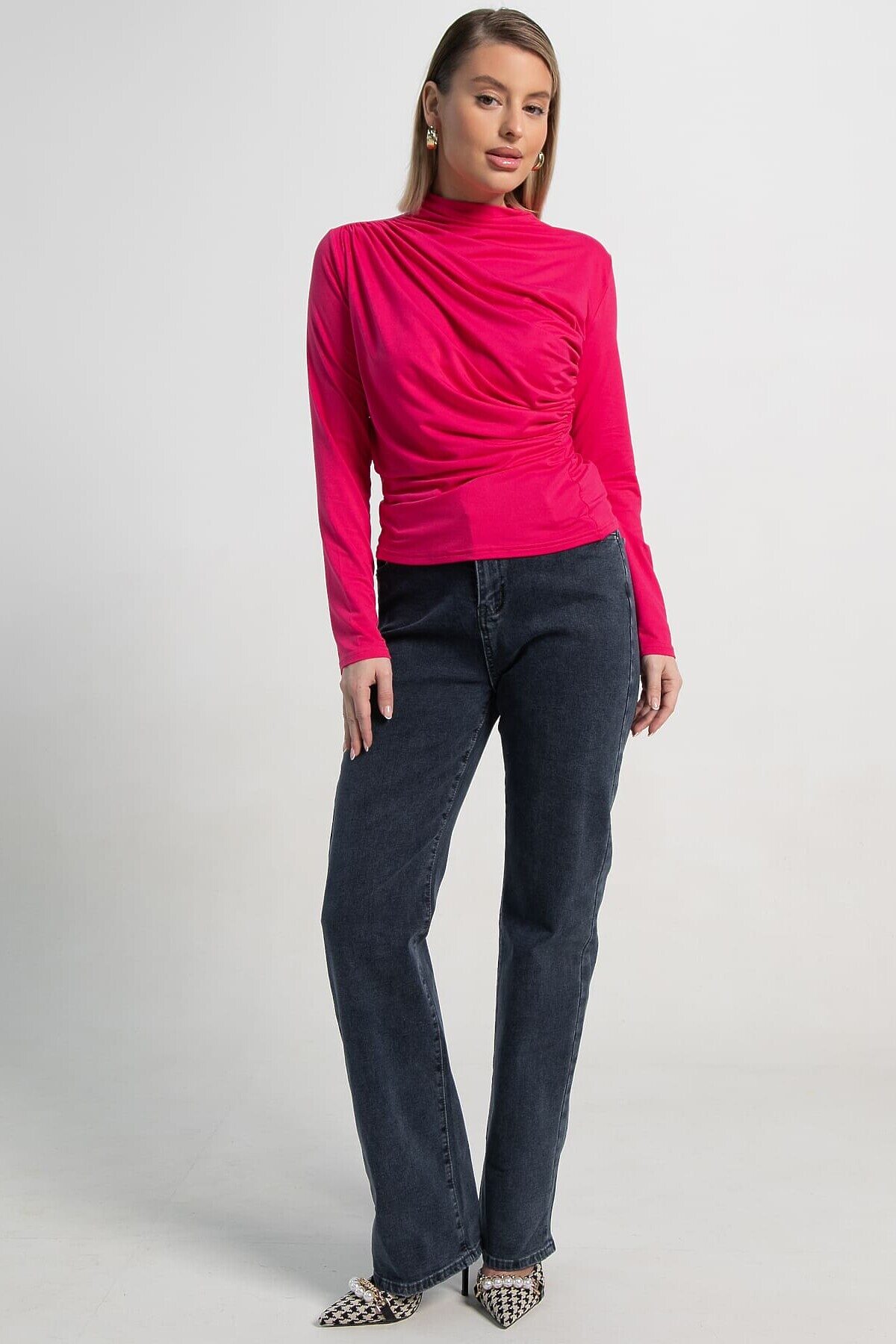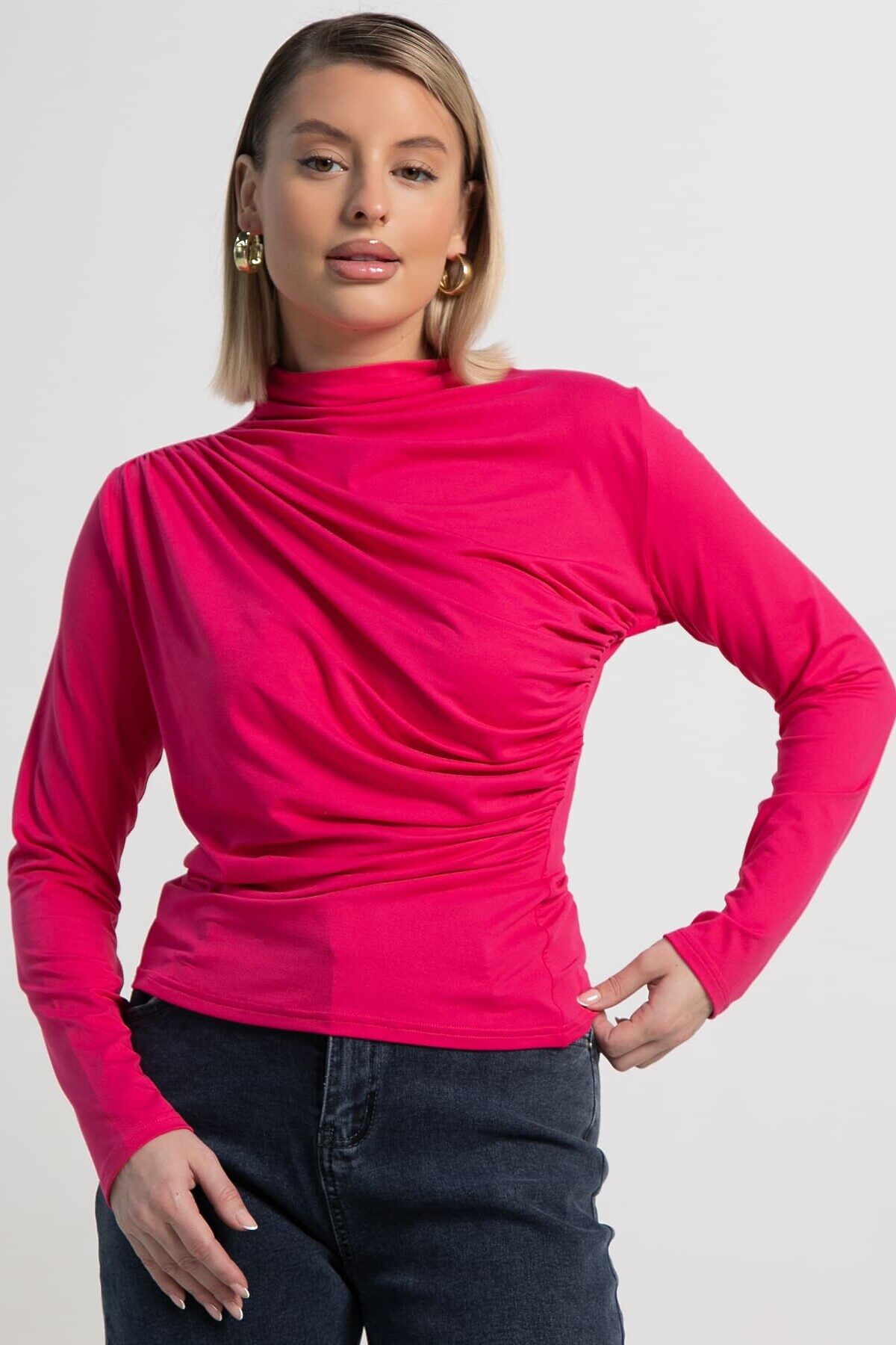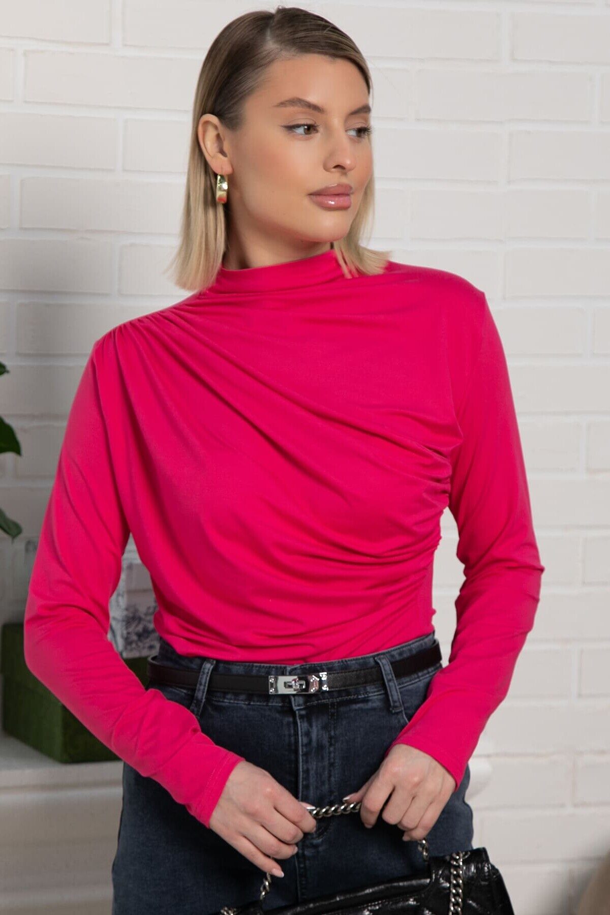Изысканный лонгслив с драпировкой в малиновой расцветке — это то, что нужно уверенным в себе девушкам, которые хотят выделиться из толпы. Драпировка придаёт модели особый стиль и элегантность, добавляя интересные детали в ваш образ. Облегающий крой подчёркивает фигуру, создавая женственный силуэт. Этот лонгслив прекрасно подойдёт как для повседневных образов, так и для особых случаев. Стильный и модный лонгслив с драпировкой — ваш ключ к созданию запоминающихся и эффектных нарядов.