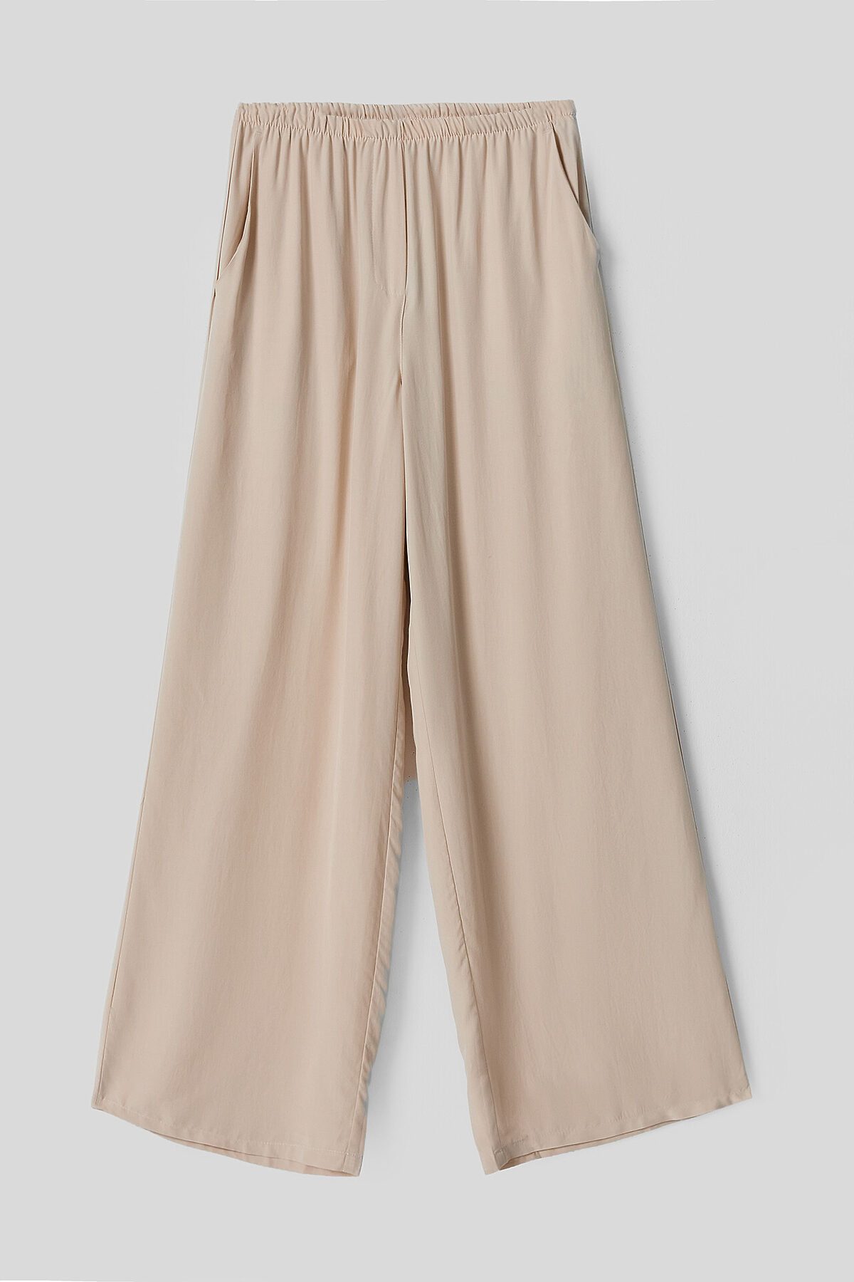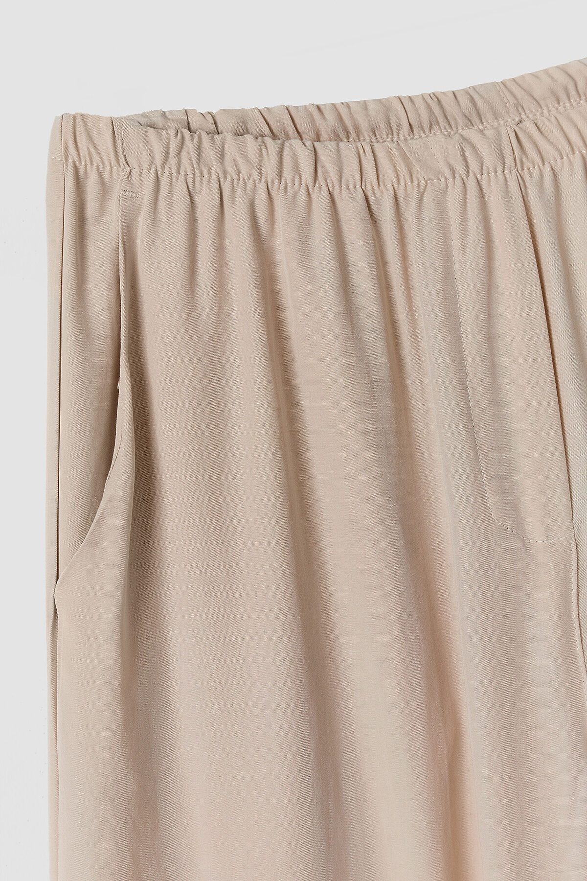 Брюки на базе (532431). Брюки прямые свободные. Посадка средняя. Пояс цельнокроеный с эластичной тесьмой внутри (внутр. 20мм 20RV). По центру пояса пробиты петли и вставлен шнур- бейка из основного полотна. На передних деталях карманы "хулиганы". Низ изделия застрочен швом в подгибку.