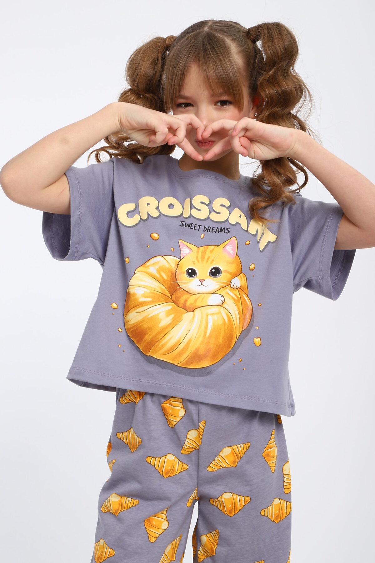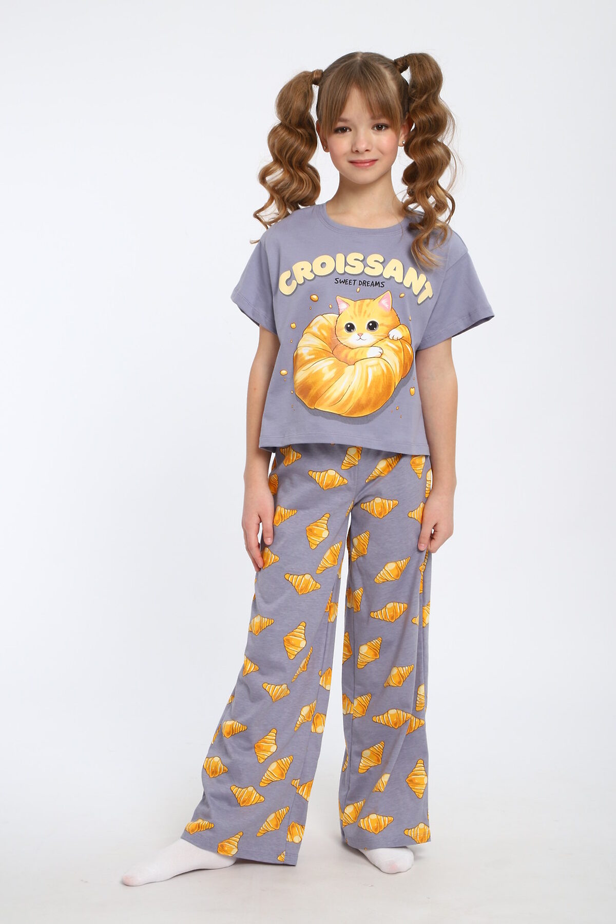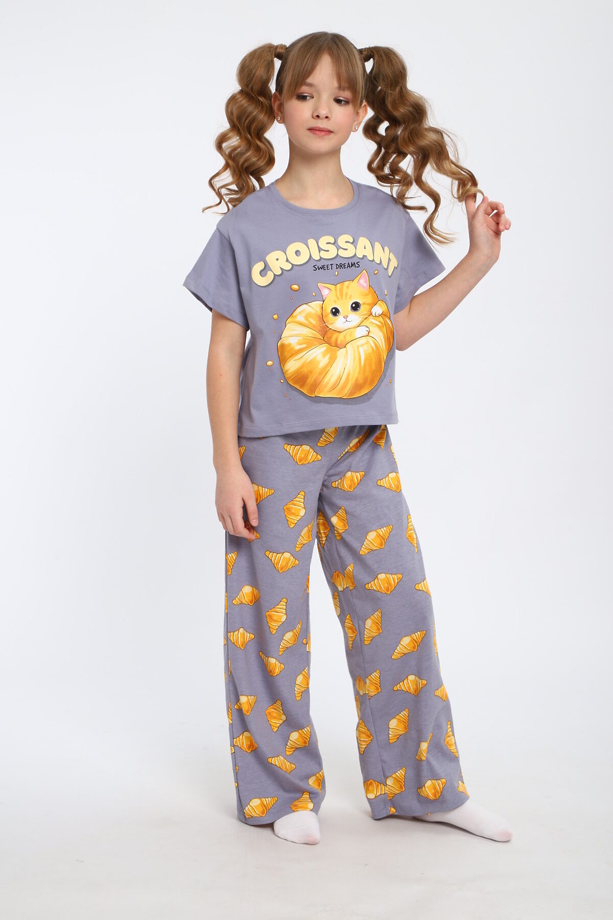 Пижама с брюками для девочки Котенок-круассан арт. ПД-015-084 НАТАЛИ, серый