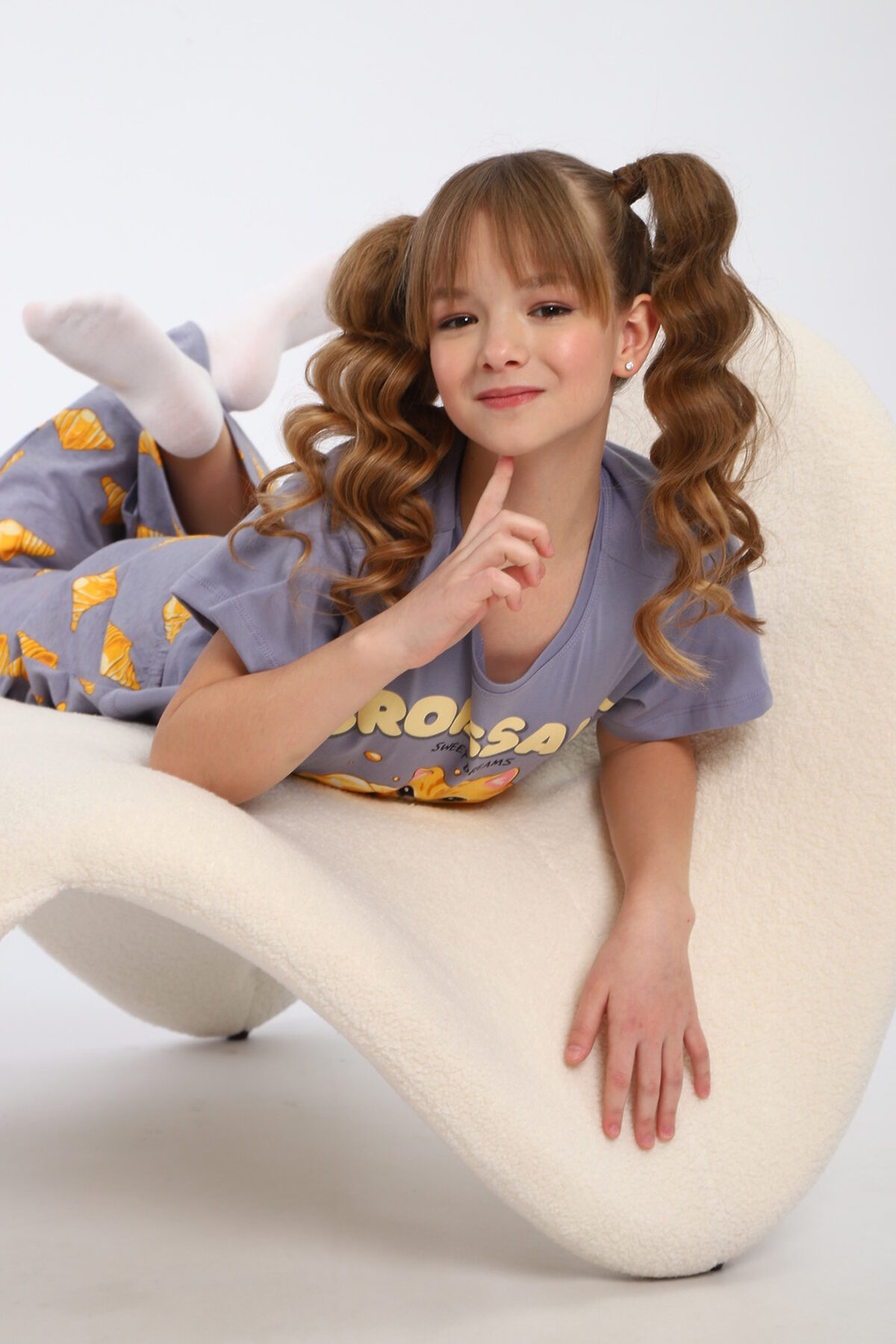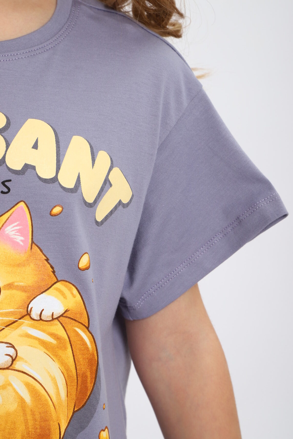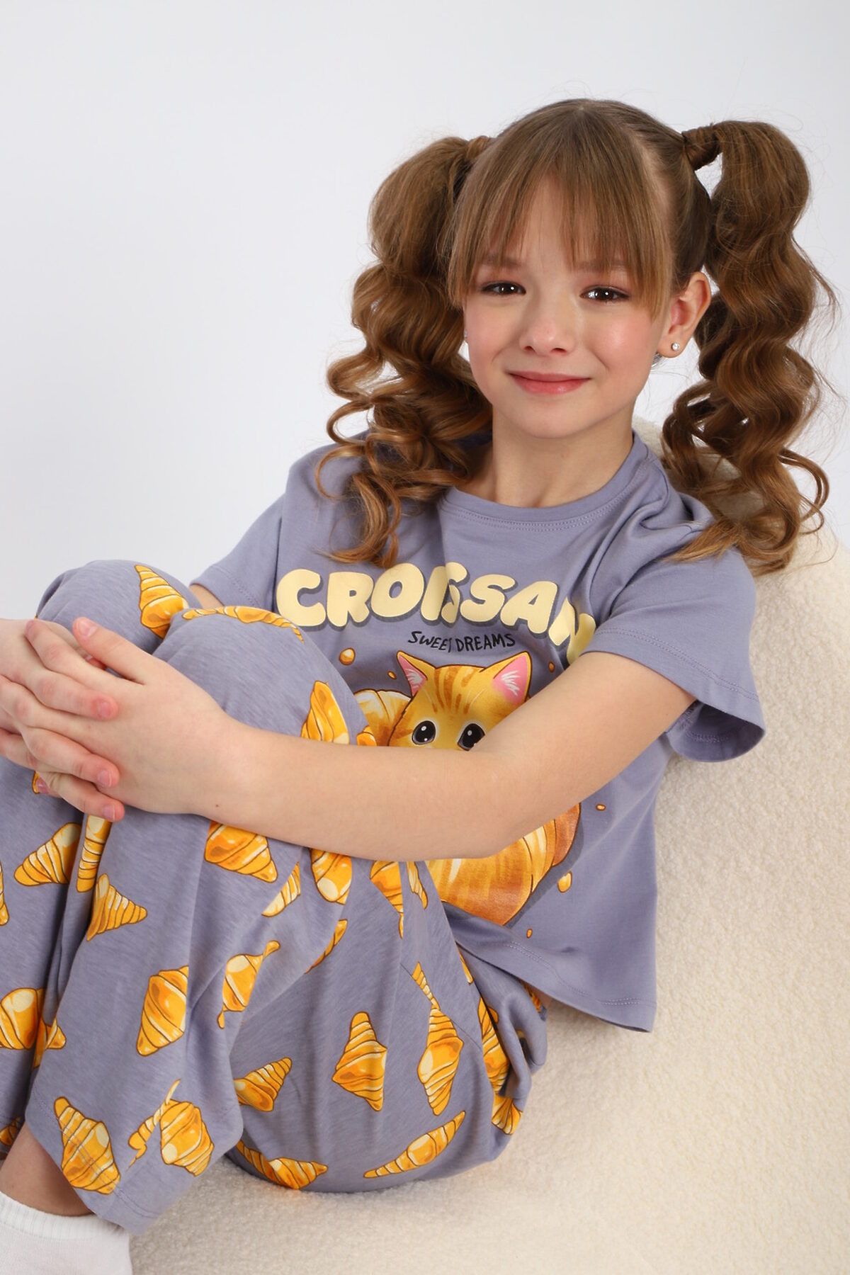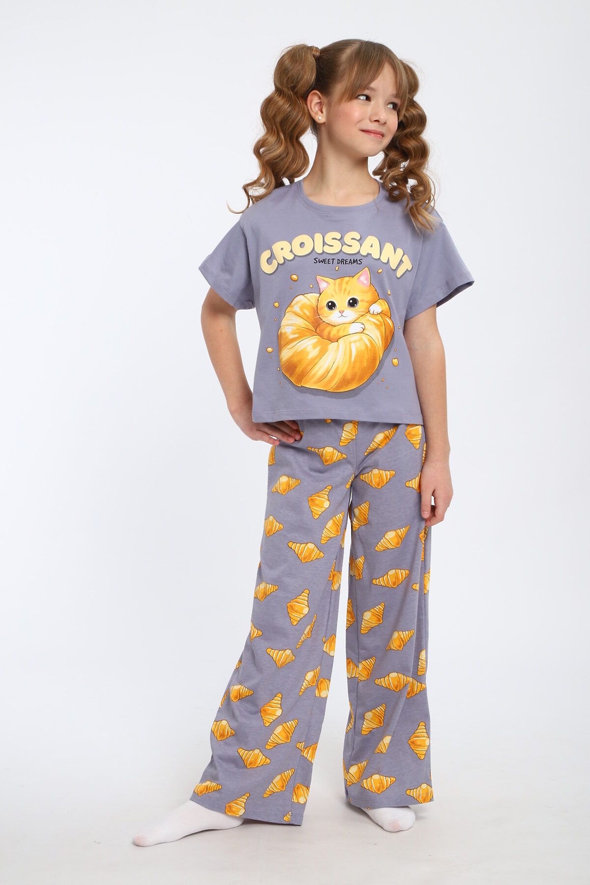 Пижама с брюками для девочки Котенок-круассан арт. ПД-015-084 НАТАЛИ, серый