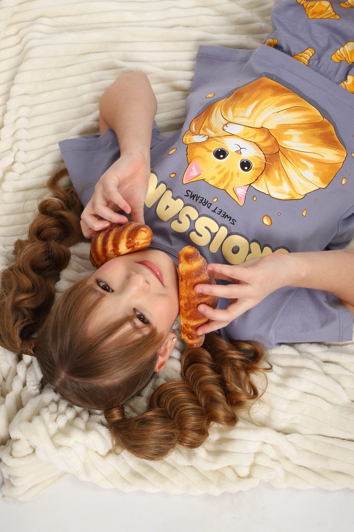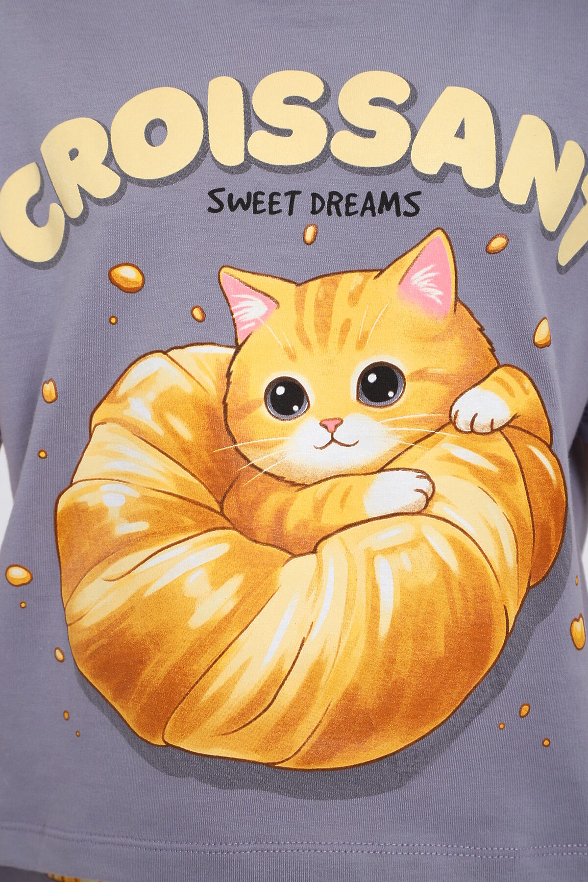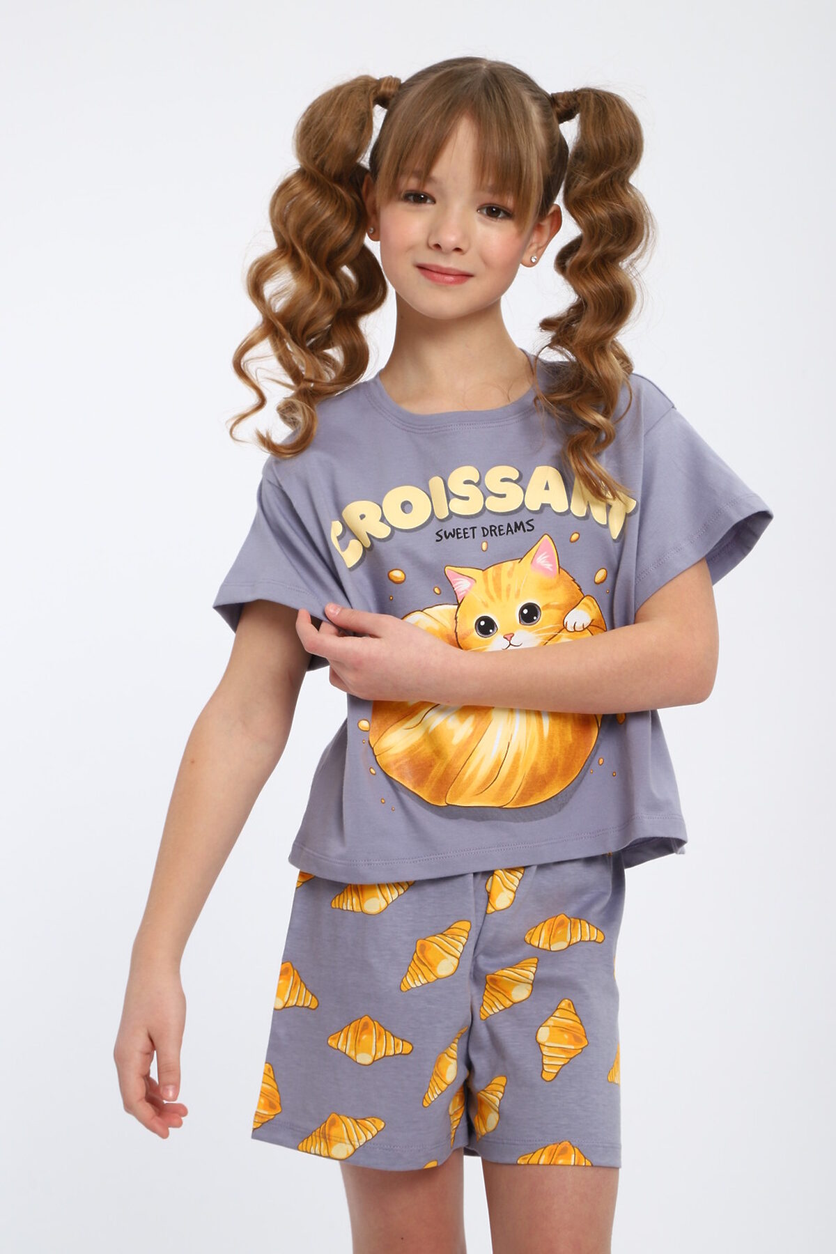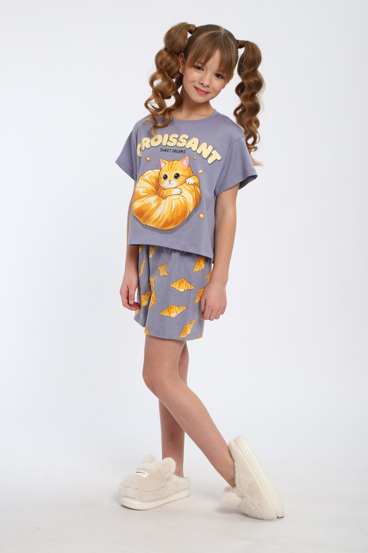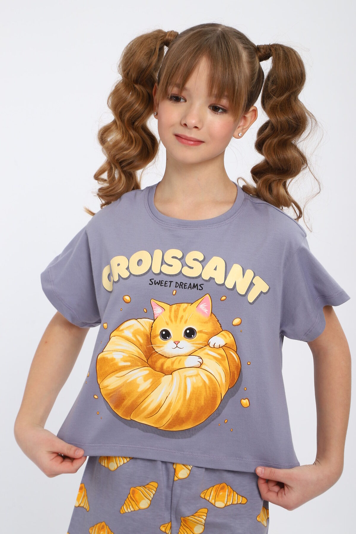 Пижама с шортами Круассаны арт. ПД-019-088 НАТАЛИ, серо-лиловый