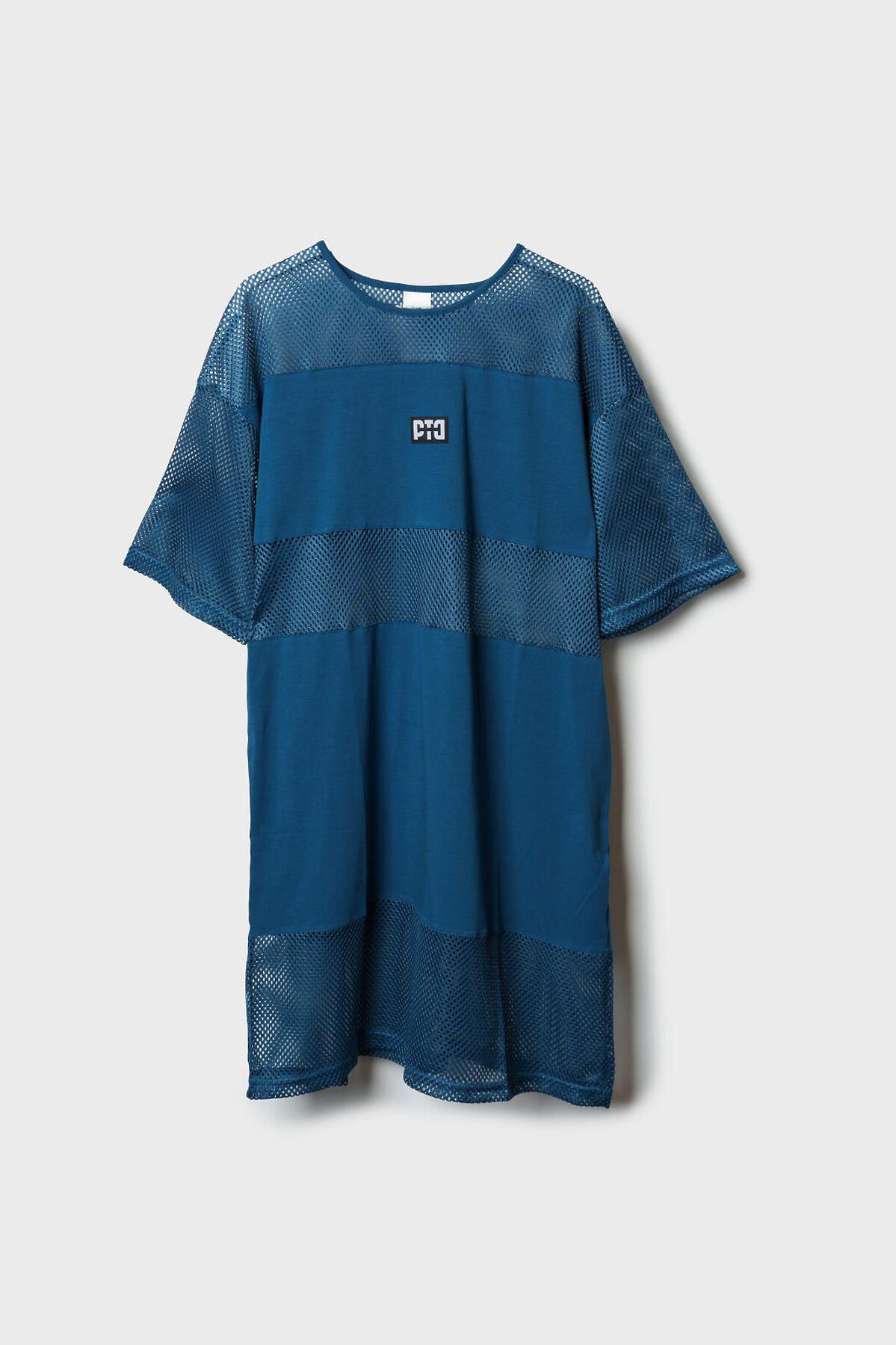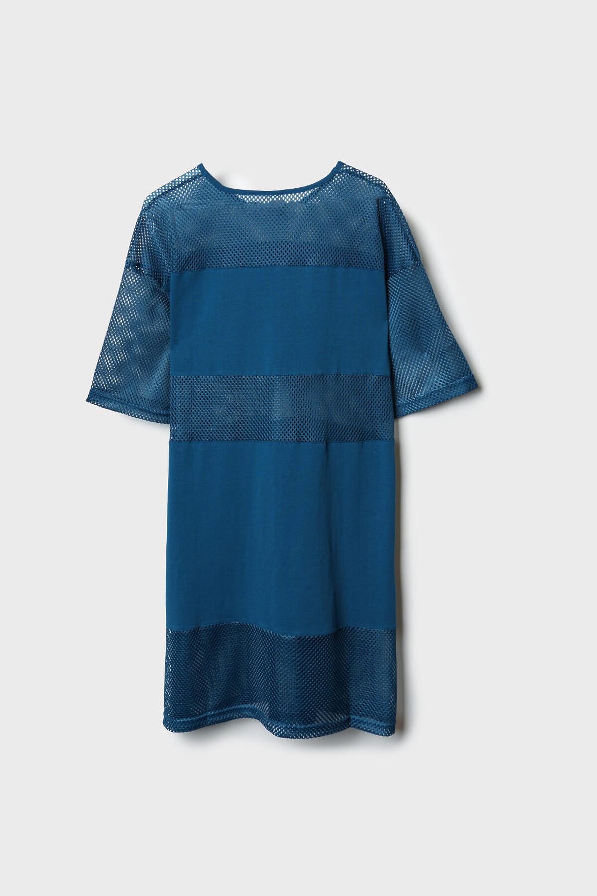 Пляжное женское оверсайз платье. Модель с длиной мини, выполнена из комбинации хлопкового трикотажа джерси и сетки.